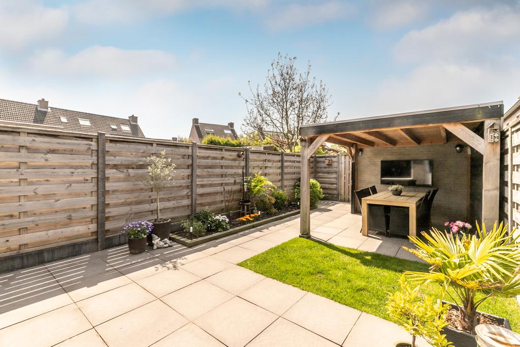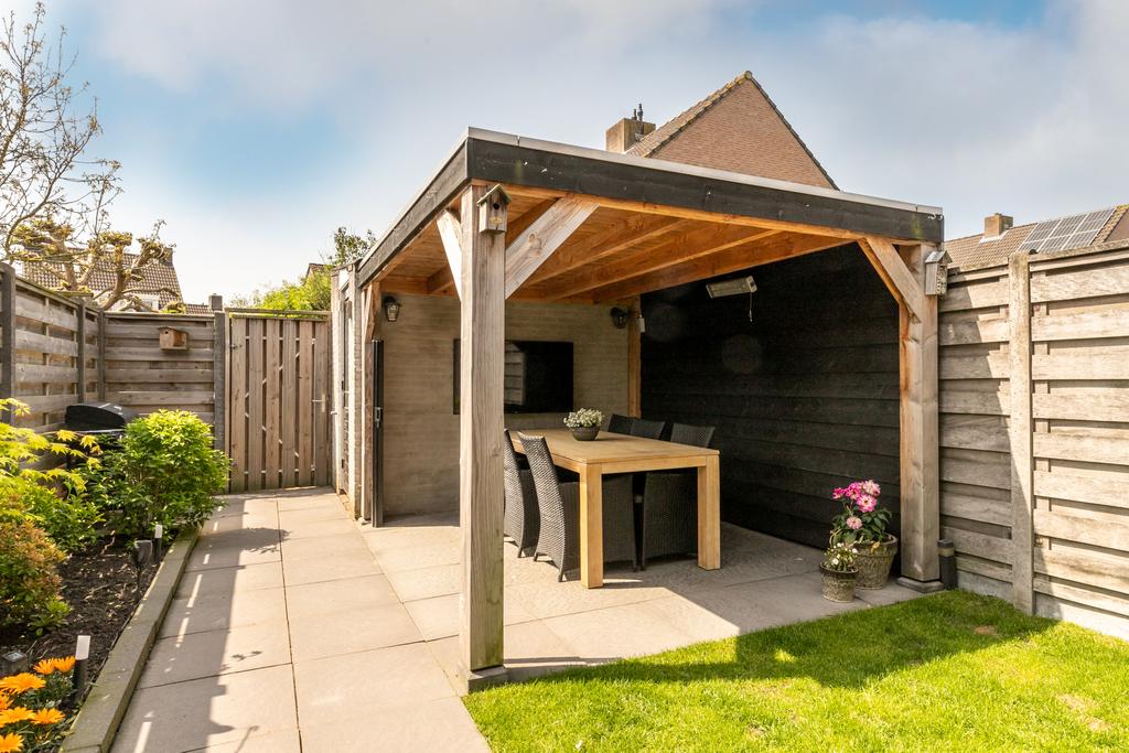 •Zeer zonnige tuin op het (zuid)westen met een stenen berging en een gezellige overkapping. Onder de overkapping is elektra en een tv aansluiting aanwezig.