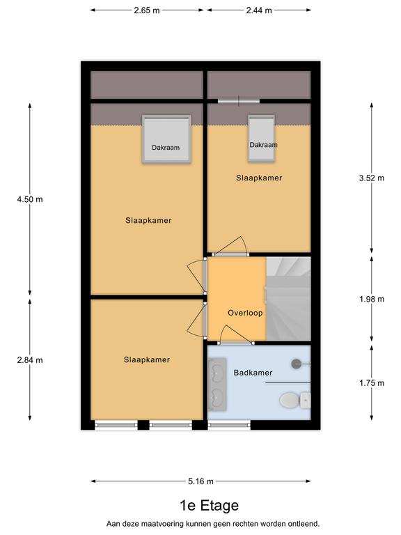 Woonoppervlak: 78m² (Omdat het dakraam op de 2e verdieping te klein is telt deze verdieping niet mee met het woonoppervlak. Anders zou het woonoppervlak 93m² bedragen).