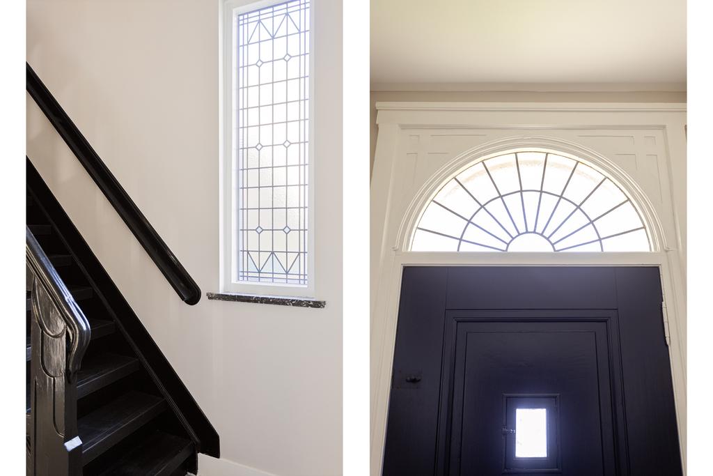 - Nieuwe hardhouten kozijnen door de gehele woning incl. HR++ glas (ook bij het glas in lood);