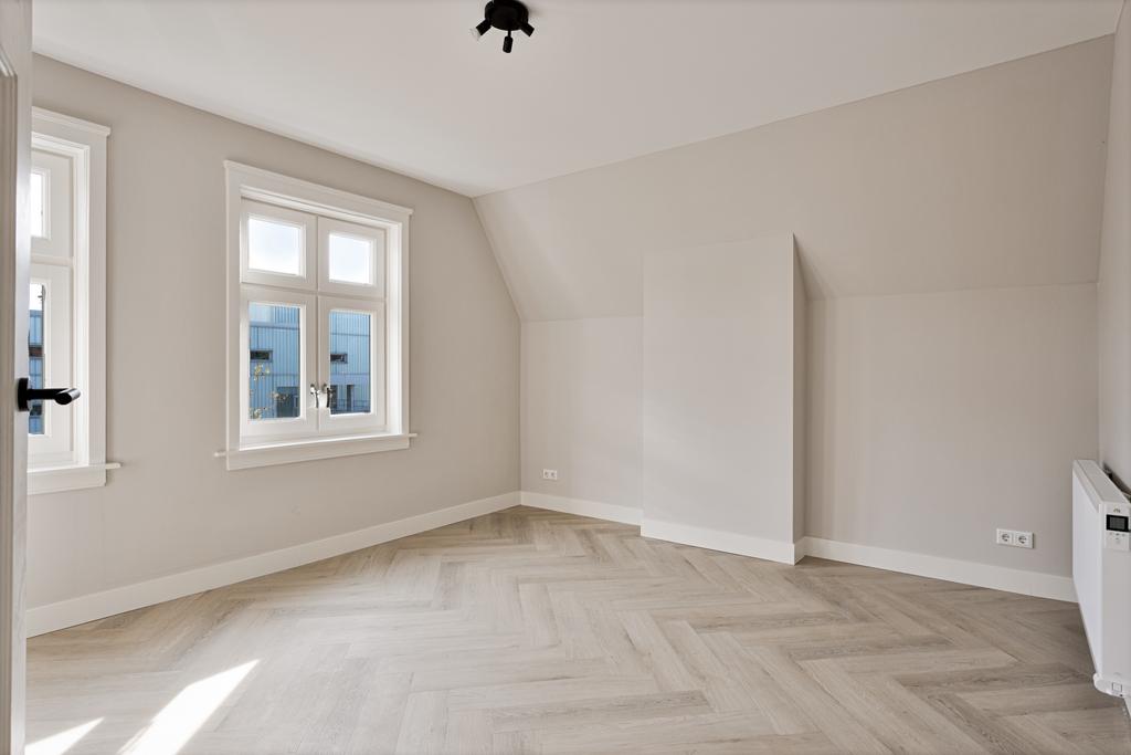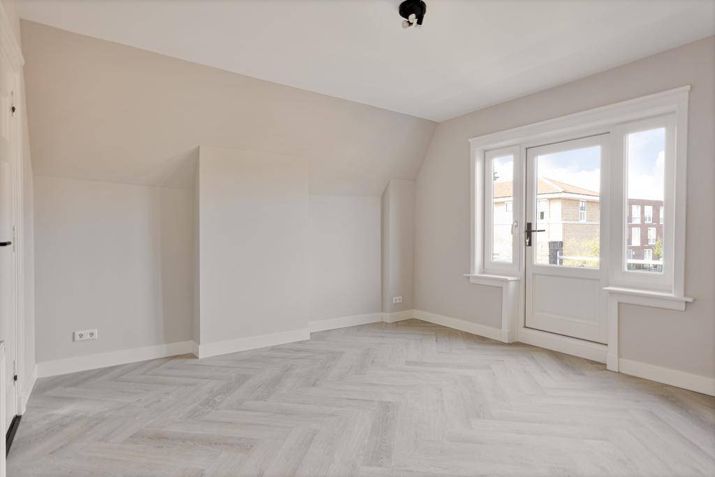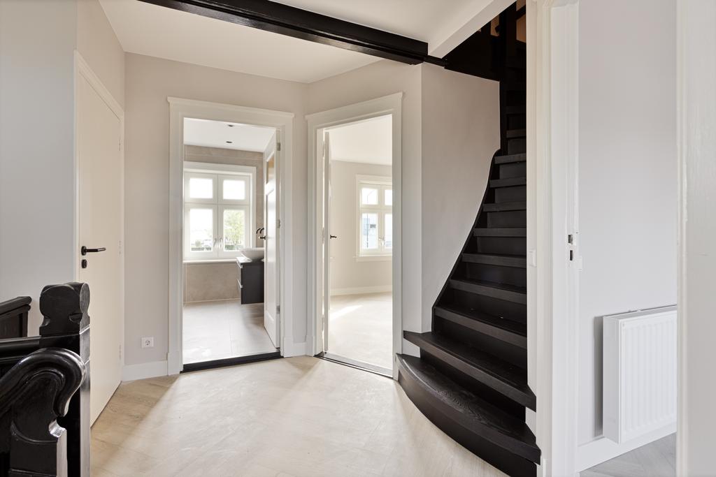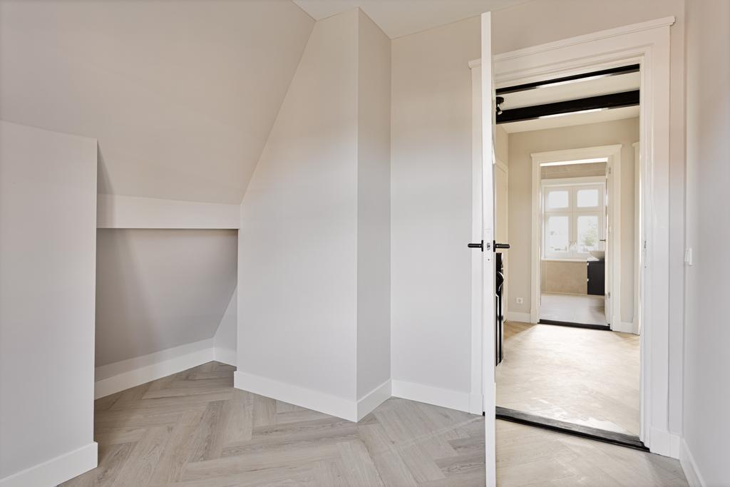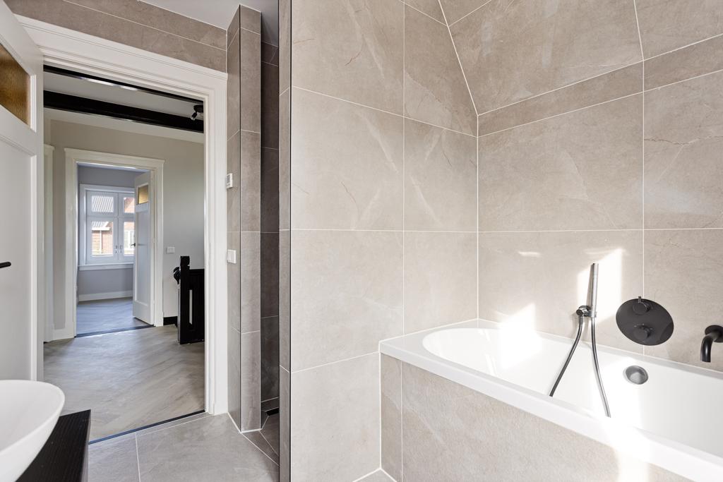 Ruime overloop met centraal de vaste trap naar de tweede verdieping. Een drietal ruime slaapkamers zijn aanwezig. Voor de grote kamer aan de achterzijde geldt dat deze de beschikking heeft over een eigen vaste inbouwkast. Deze kamer heeft ook toegang tot het balkon. Een ruim balkon over vrijwel de gehele breedte van het pand. Er is een separaat toilet toegankelijk vanaf de overloop en tevens de moderne badkamer. Glas-in-lood geeft de overloop die leuke jaren '30 sfeer. De badkamer is volledig nieuw en luxe uitgevoerd met een mooi dubbel wastafelmeubel met twee waskommen en luxe inbouw kranen, een fijn ligbad met ingebouwde kranen en een ruime inloopdouche. Er is een elektrische vloerverwarming voorzien.