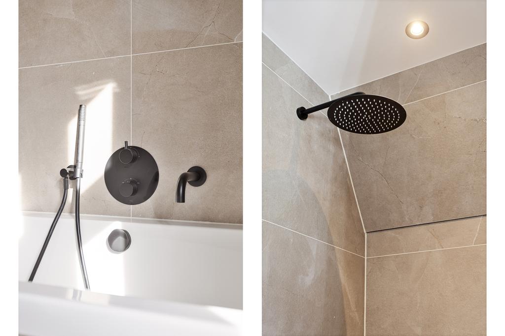 - Dubbele wastafel, wastafelmeubel, inloopdouche en ligbad