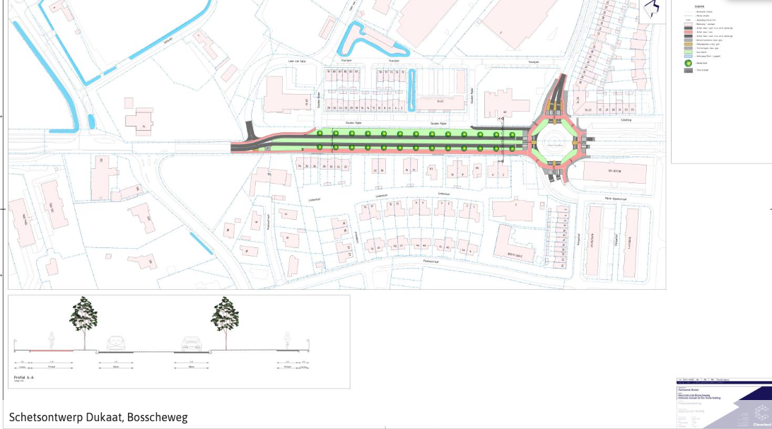 Als slotstuk van deze nieuwe omgeving wordt de Bosscheweg, gelegen voor de woning, volledig opnieuw ingericht met meer groen en gescheiden verkeer. Dit komt de veiligheid en de uitstraling ten goede.