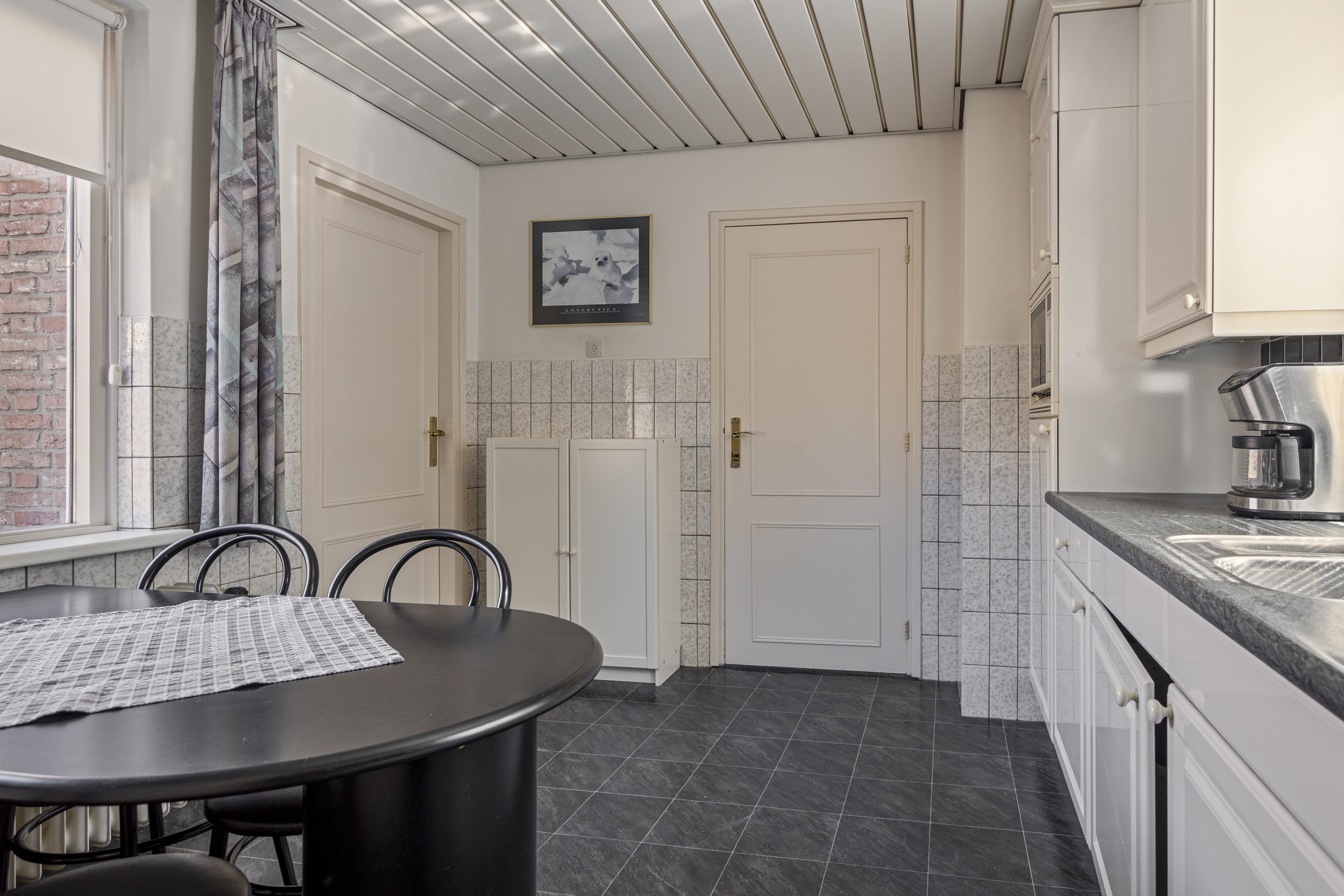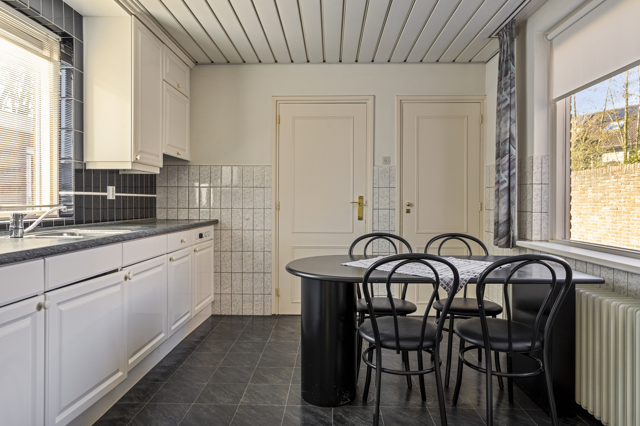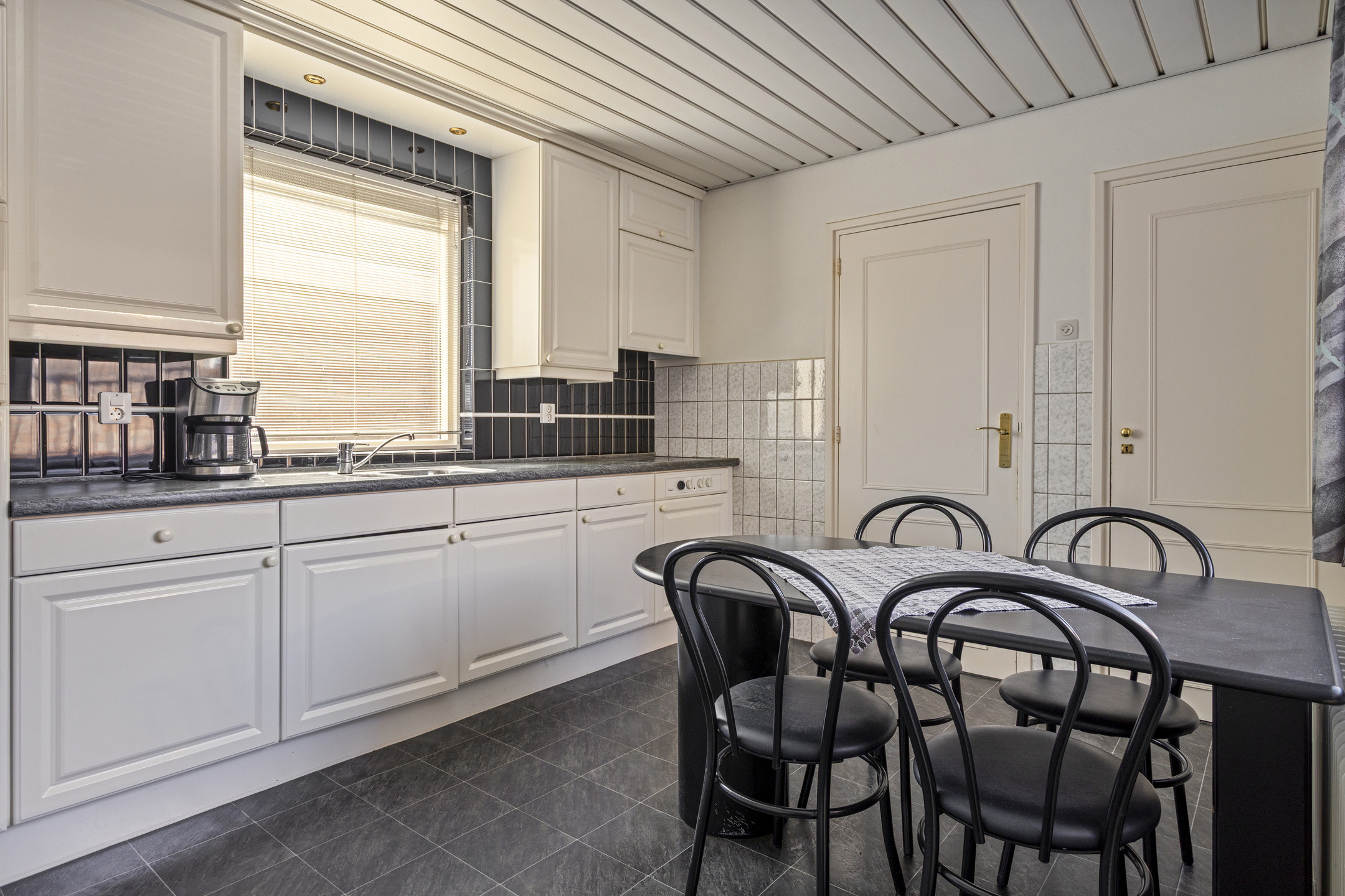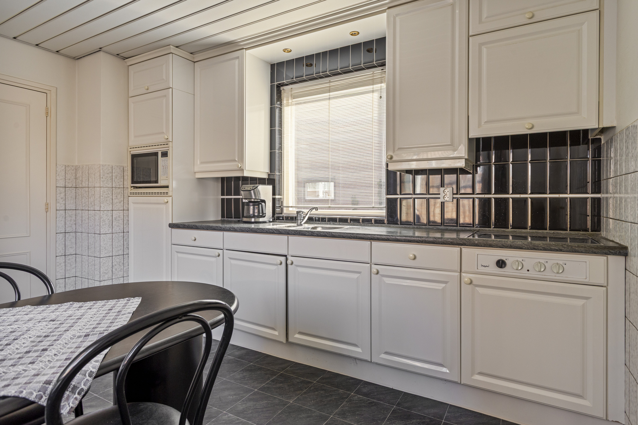 Bij binnenkomst stap je de entreehal binnen, die toegang biedt tot de woonkamer, het toilet, de meterkast, de trap naar de eerste verdieping en de keuken. De ruime woonkamer is licht en biedt genoeg ruimte voor een gezellige zithoek en eettafel. Door de L-vorm van de ruimte is er zelfs plek voor een bureau of kast. De sfeervolle open haard zorgt voor extra gezelligheid. De dichte keuken is groot genoeg om een eettafel te plaatsen en is voorzien van inbouwapparatuur zoals een magnetron, koelkast en elektrische kookplaat. Daarnaast is er een handige inbouwkast voor extra opbergruimte. Aan de achterzijde van de woning vind je een bijkeuken, ideaal voor de vriezer en extra opbergruimte.