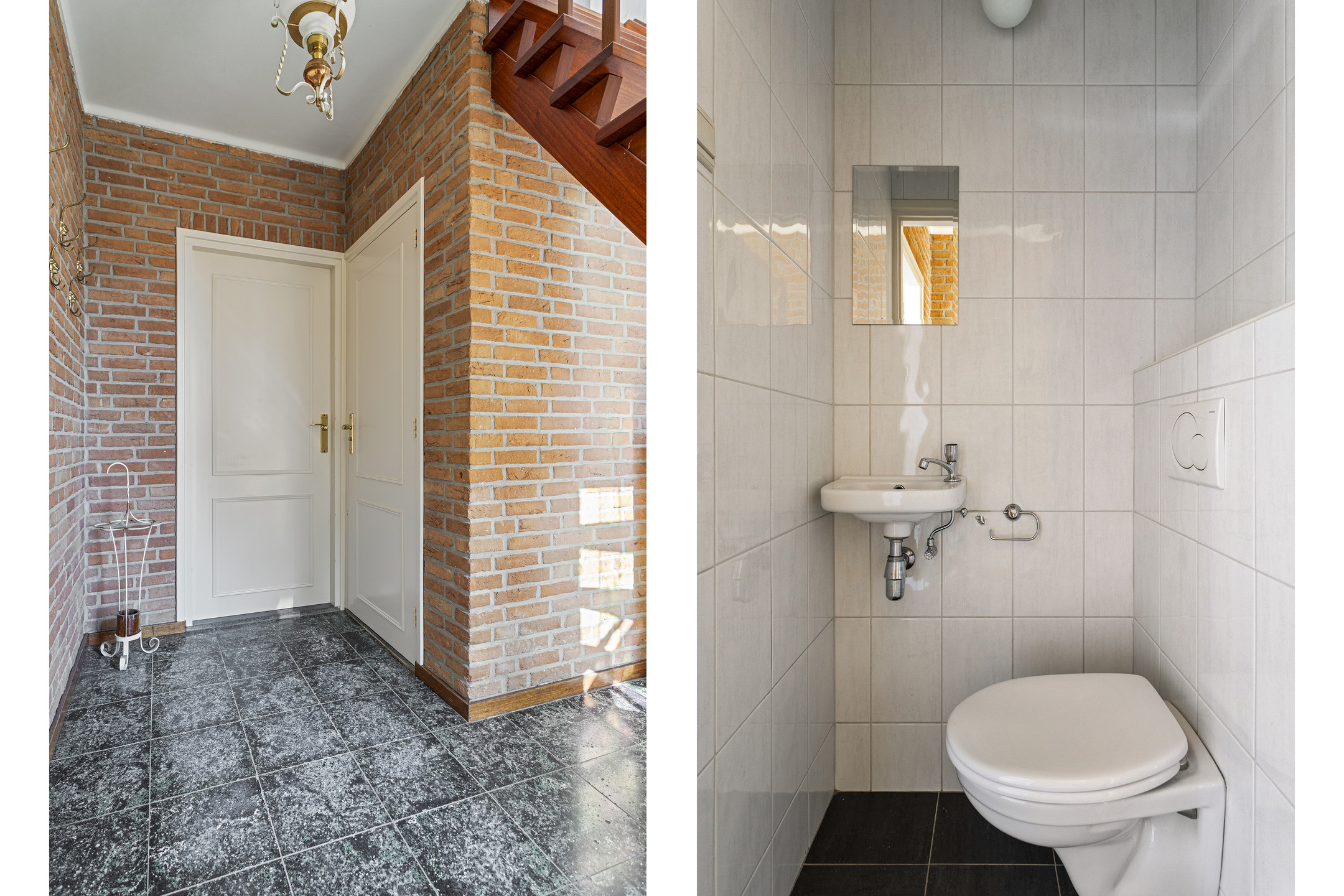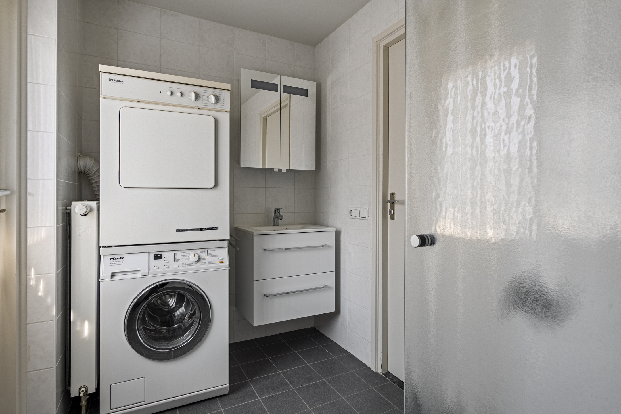 Op de eerste verdieping kom je op de overloop, die toegang biedt tot drie slaapkamers en de badkamer. De hoofdslaapkamer en de tweede slaapkamer zijn ruim, met voldoende plek voor een tweepersoonsbed en een kast. De derde slaapkamer is perfect voor een twijfelaar, maar ook ideaal als kantoorruimte. De badkamer is van alle gemakken voorzien, met een inloopdouche, toilet, wastafel met meubel en de opstelplaats voor de wasmachine en wasdroger. Via de badkamer heb je ook toegang tot het dakterras, een heerlijke plek om in de zomer van de zon te genieten.