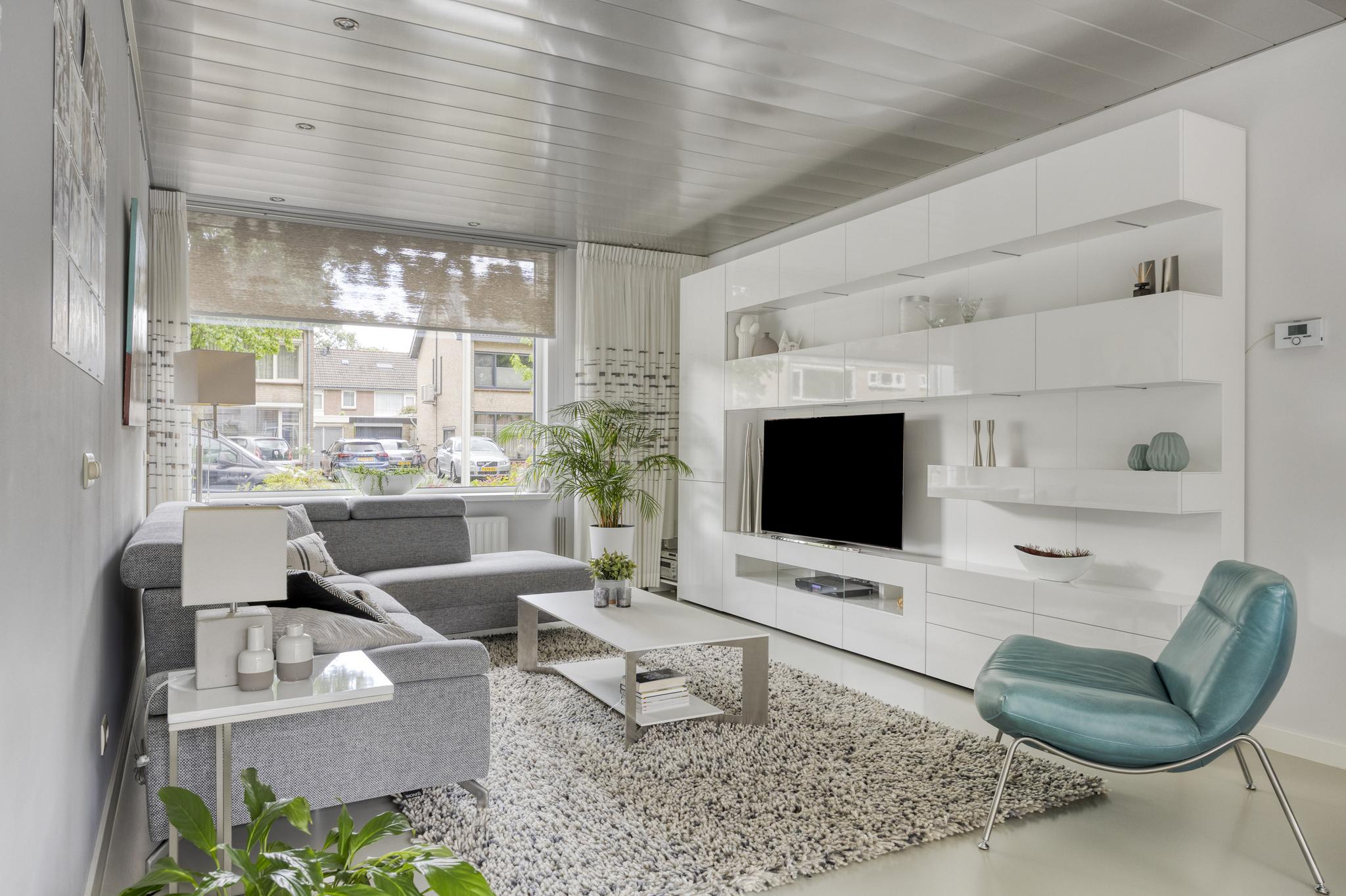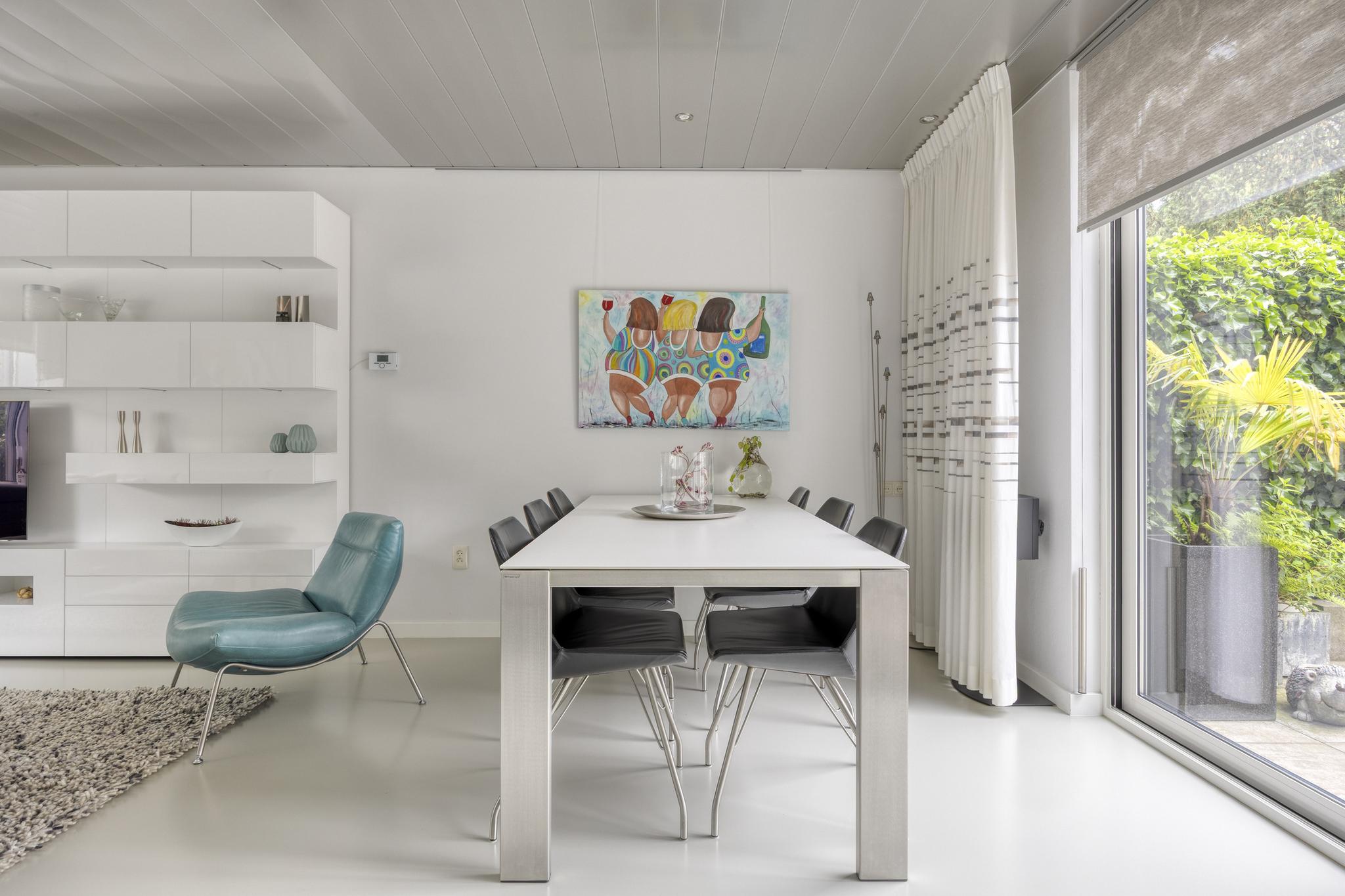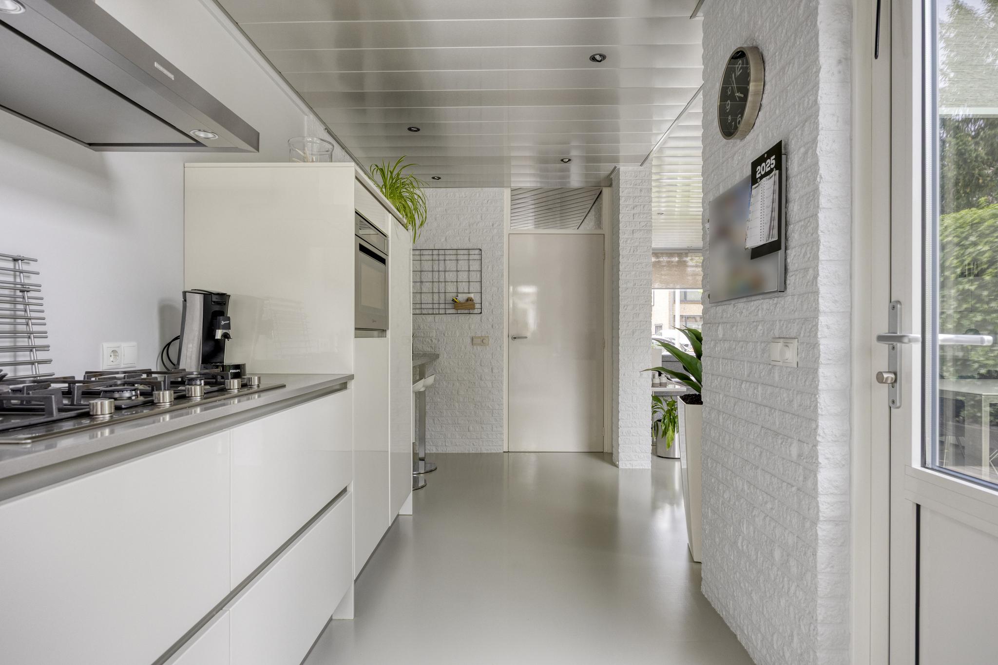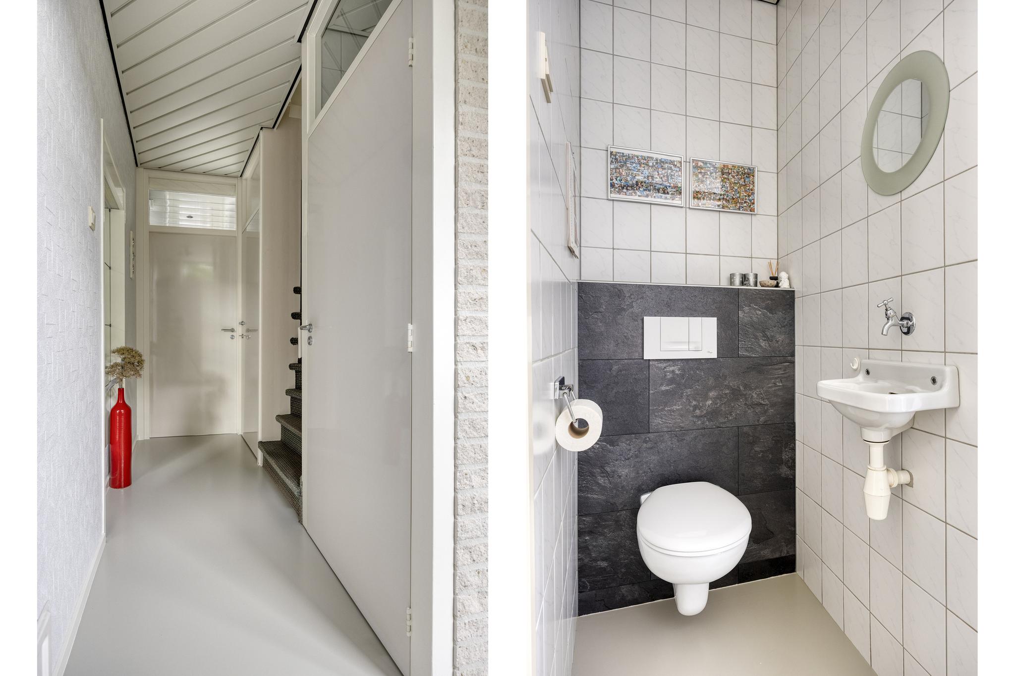 Bij binnenkomst via de ruime hal valt meteen de verrassend lichte woonkamer op, waar natuurlijk daglicht in overvloed binnenkomt. De mooie gietvloer gecombineerd met lichte kleurstellingen zorgt voor een moderne sfeer. Dankzij de stijlvolle inbouwspots is de ruimte ook ‘s avonds perfect verlicht en extra sfeervol. De woning biedt een gezellige zithoek aan de voorzijde, waar je heerlijk kunt ontspannen op een royale hoekbank of genieten van je favoriete televisieprogramma. Daarnaast is er volop plek voor een ruime eettafel met diverse stoelen, die dankzij de grote schuifpui direct verbonden is met de buitenruimte – ideaal voor warme zomerdagen of gezellige diners buiten. De keuken is modern en praktisch ingericht, voorzien van hoogwaardige inbouwapparatuur zoals een Quooker, combi-oven/magnetron, 5-pits gasfornuis, afzuigkap, vaatwasser en koelkast. Een charmant barretje aan het begin van de keuken nodigt uit om te genieten van een snel ontbijt of een kop koffie. Ook hier zorgt een tuindeur voor een directe verbinding met de tuin, wat zorgt voor een fijn binnen-buitengevoel. Daarnaast beschikt de begane grond over een handige berging onder de trap en een separaat toilet met fonteintje.