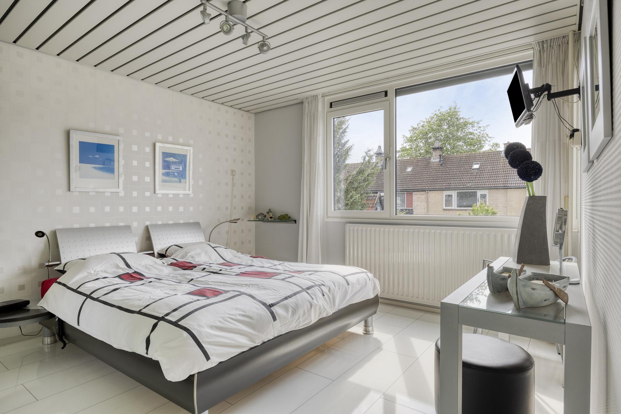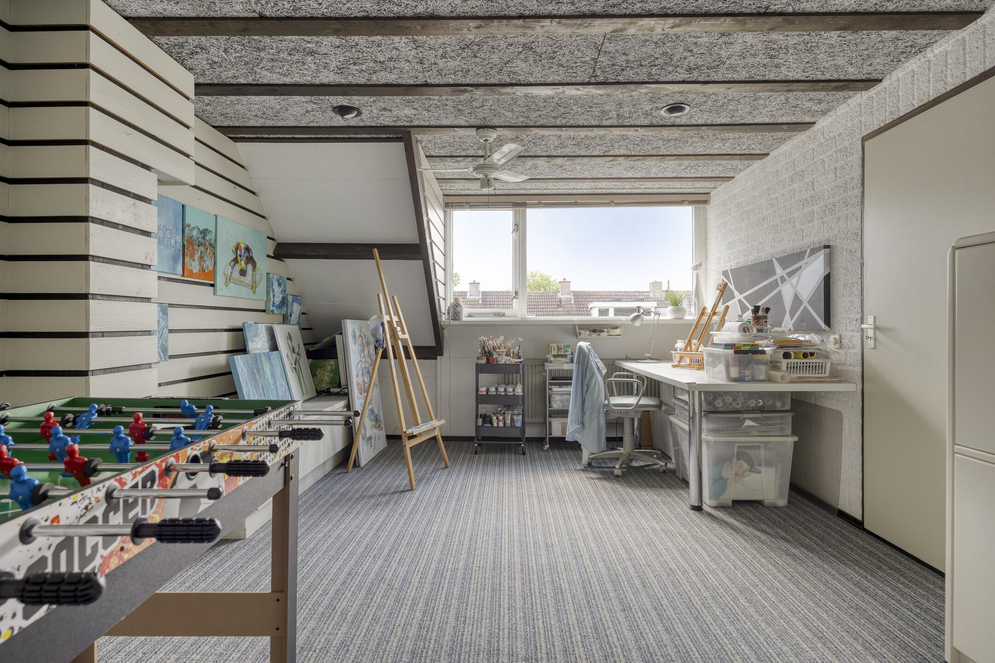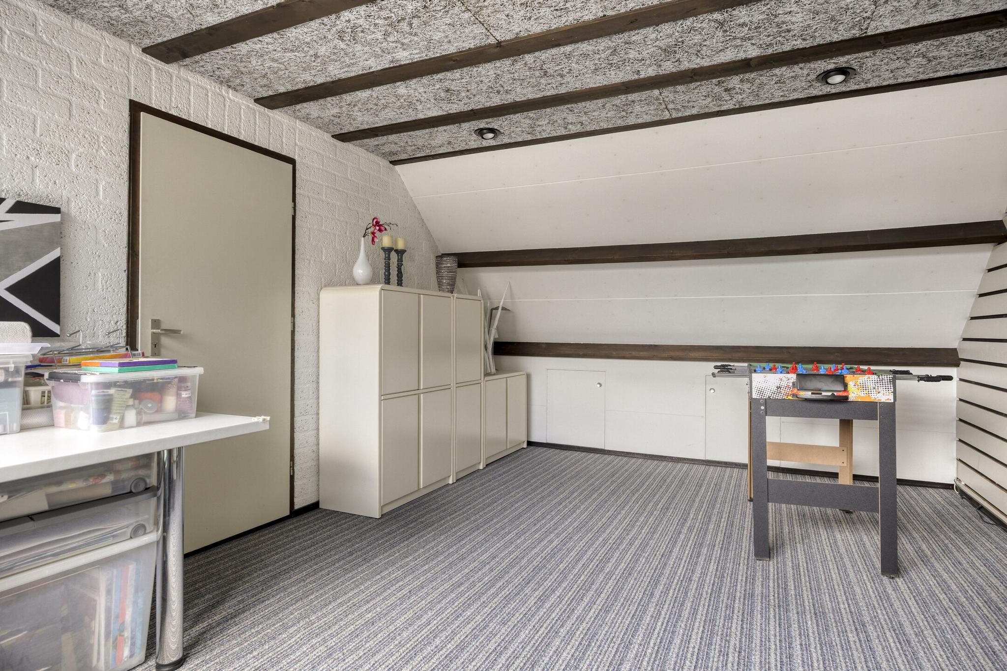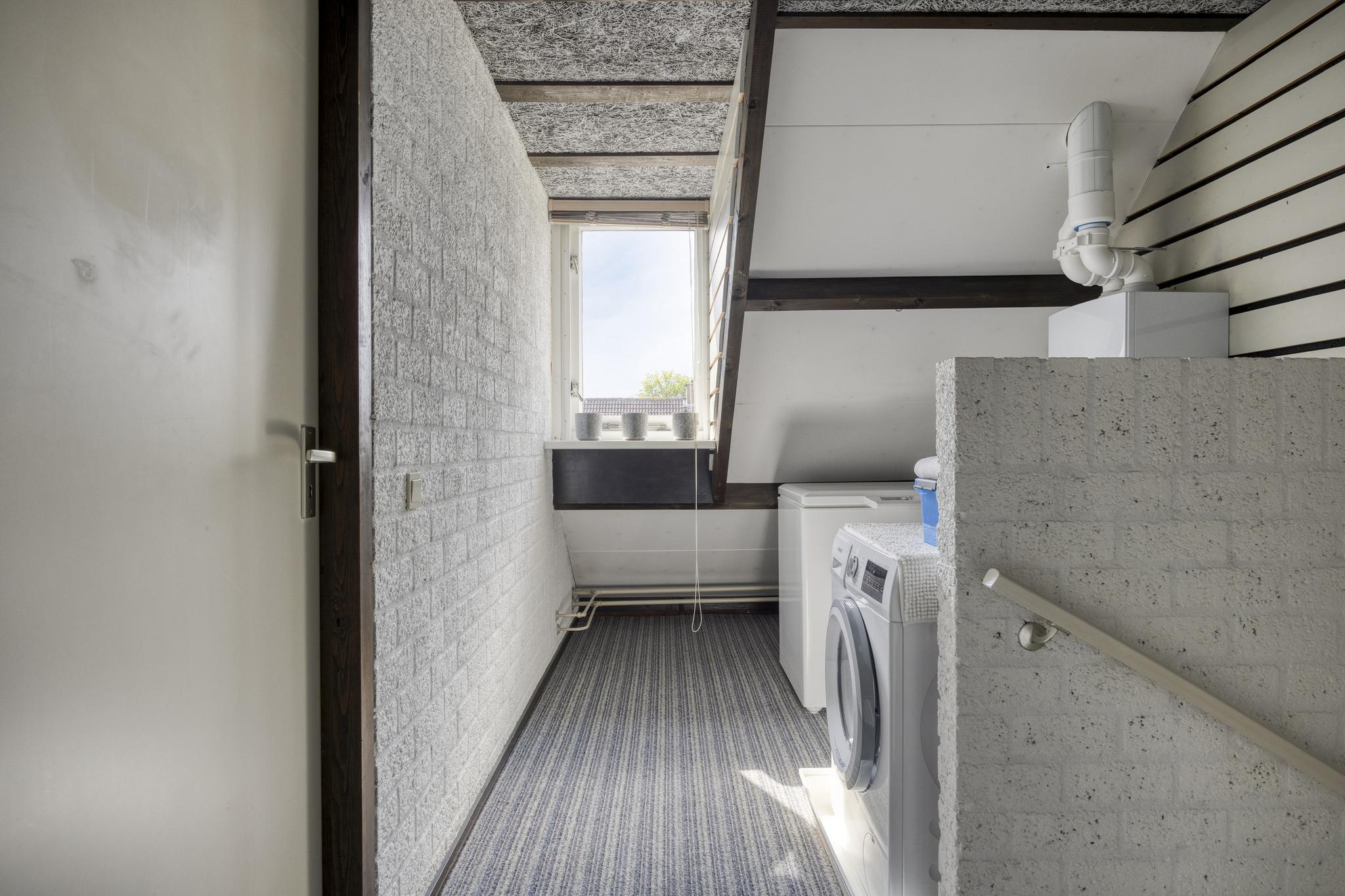 De tweede verdieping is via een vaste trap bereikbaar en biedt een royale slaapkamer, een ruime overloop en een praktische berging. Dankzij de brede dakkapel aan de achterzijde heeft de slaapkamer extra vierkante meters, waardoor er een zeer comfortabele ruimte ontstaat. Deze ruimte is ideaal als ruime slaapkamer, maar kan ook uitstekend worden gebruikt als sportruimte, hobbykamer of thuiskantoor. Op de ruime overloop is plek gecreëerd voor de wasmachine en droger, en hier bevindt zich tevens de CV-installatie (2023). Voor extra opbergruimte is er een afgesloten berging aanwezig, perfect om seizoensgebonden spullen, koffers en andere accessoires netjes uit het zicht op te bergen.