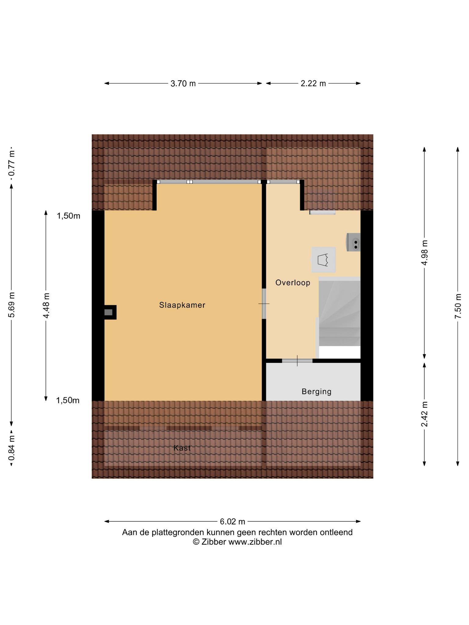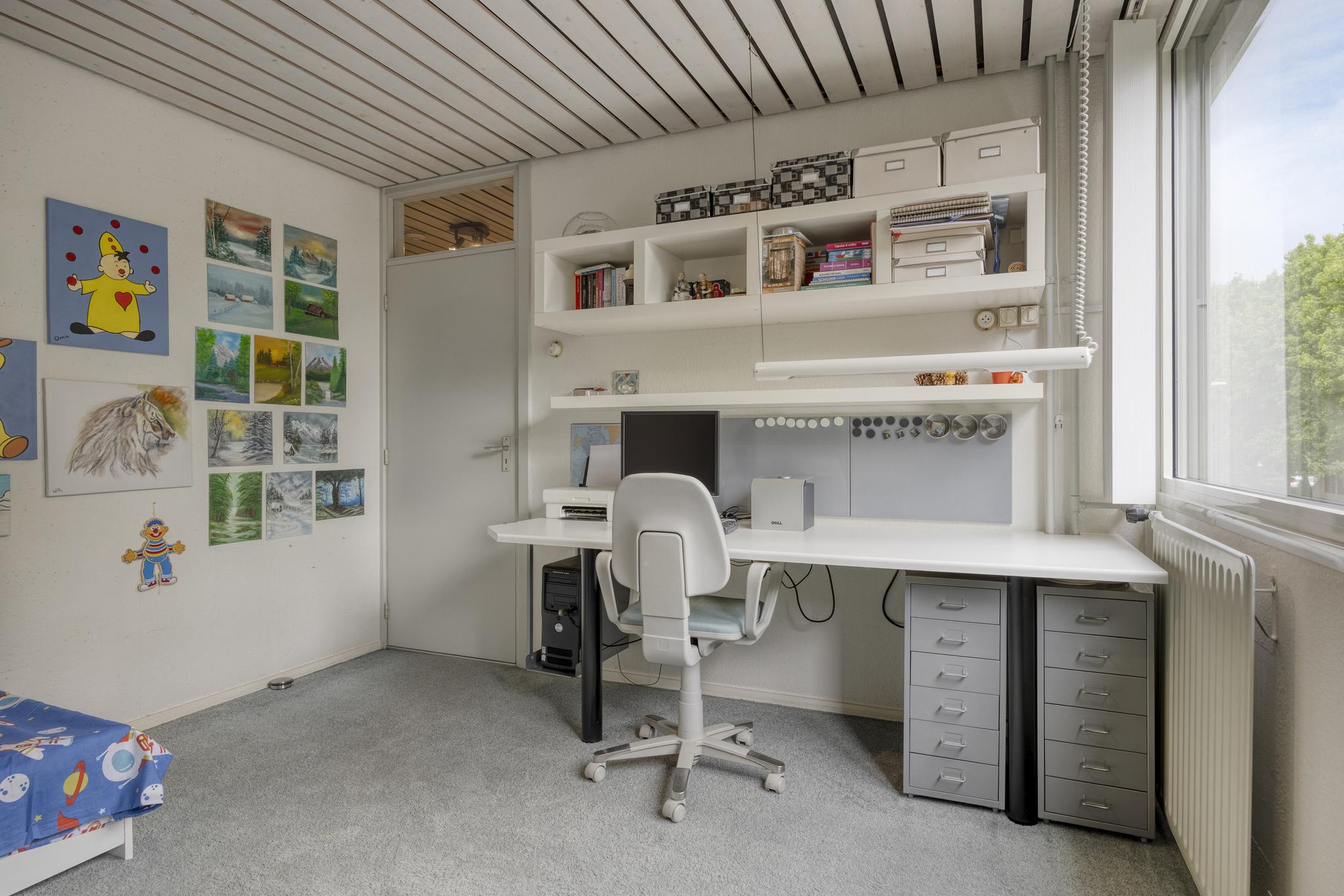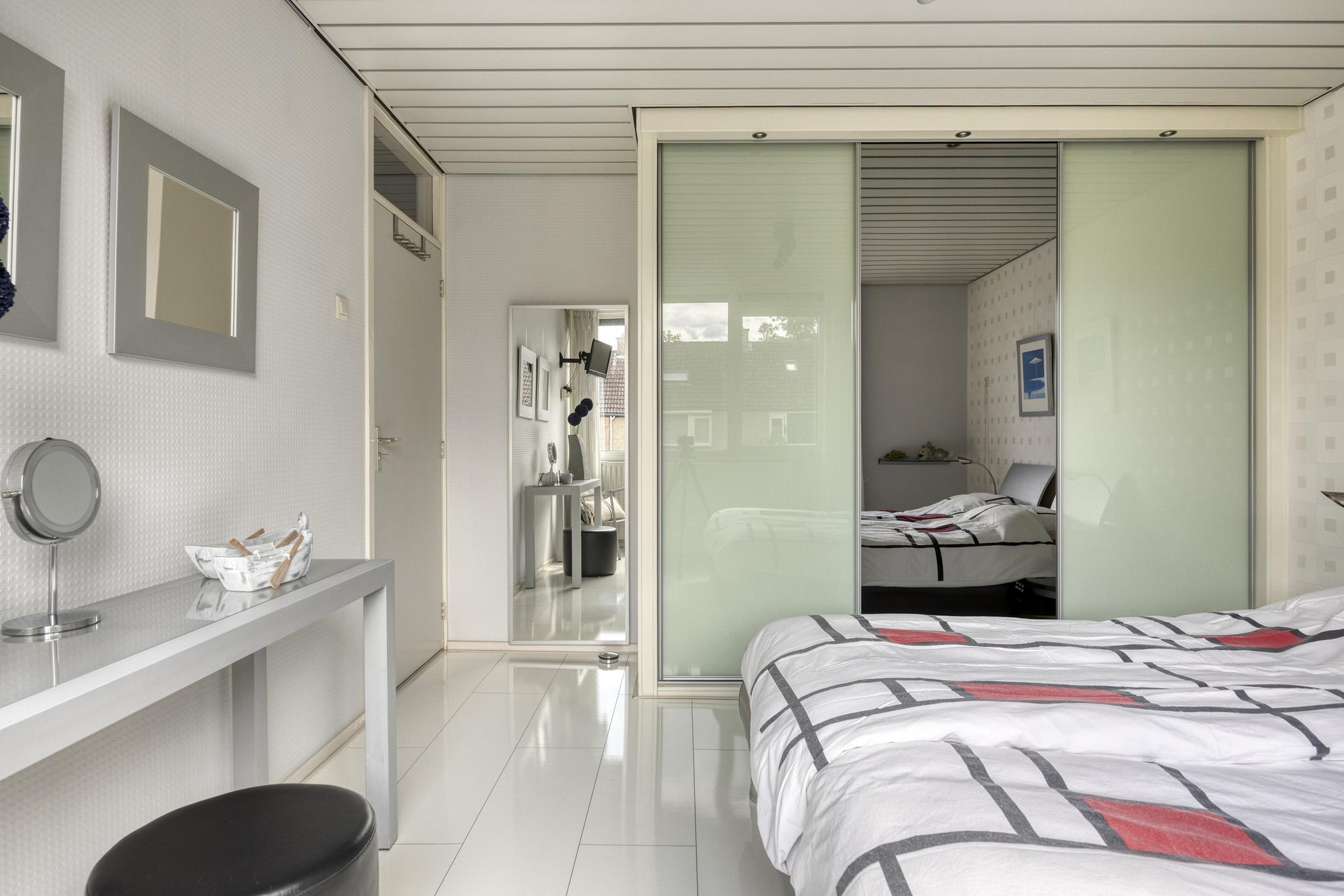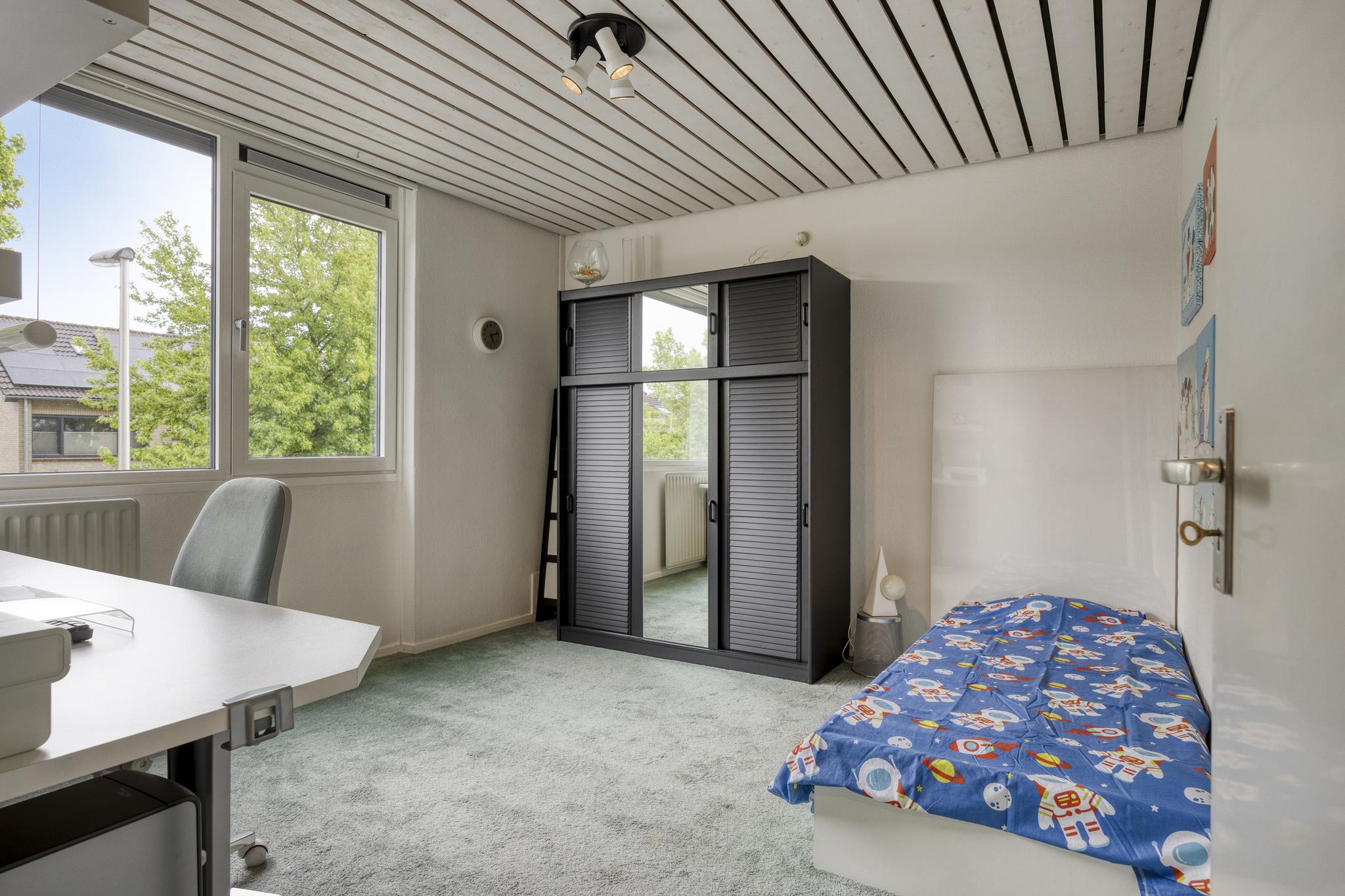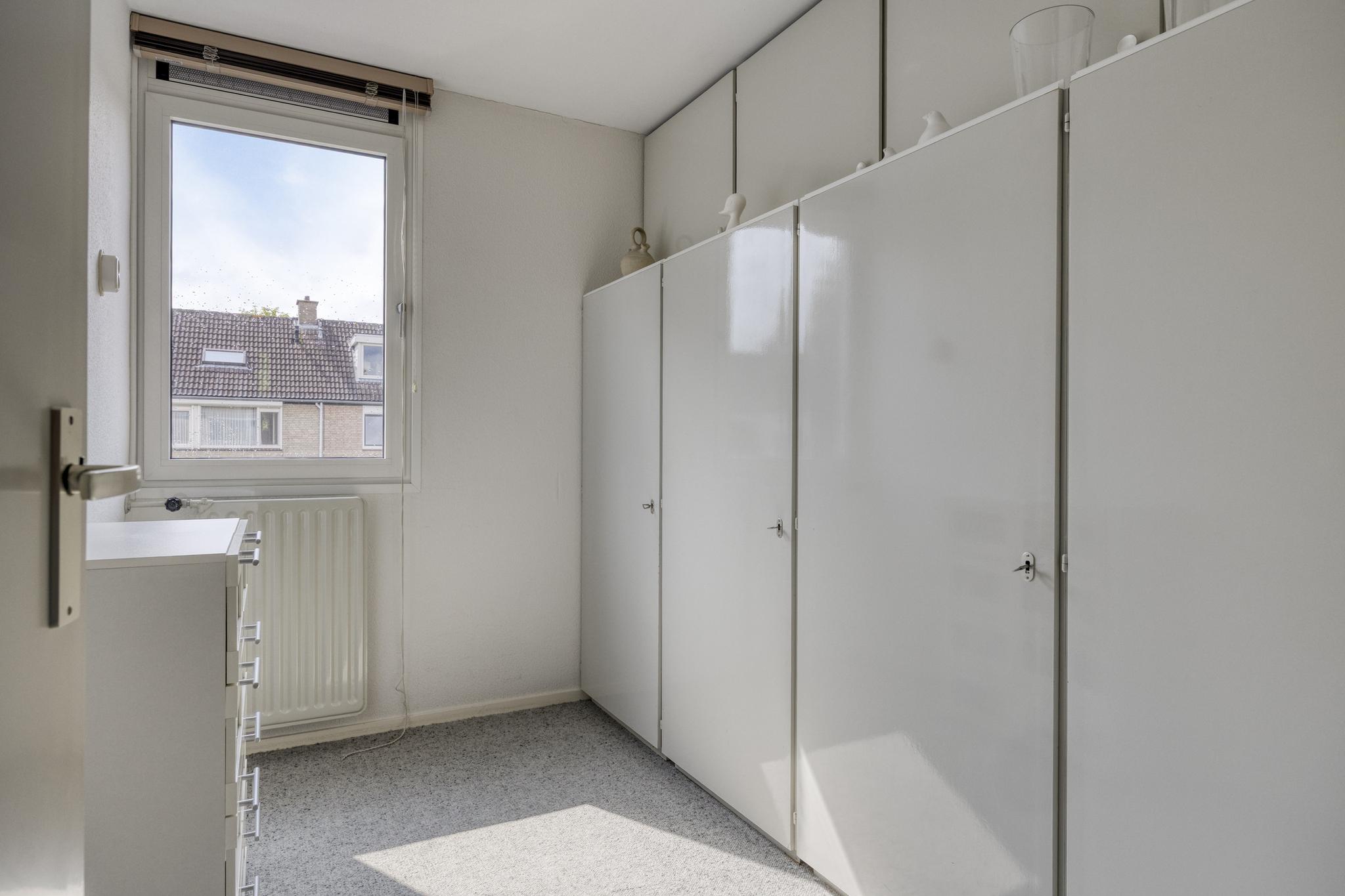 De tweede verdieping is via een vaste trap bereikbaar en biedt een royale slaapkamer, een ruime overloop en een praktische berging. Dankzij de brede dakkapel aan de achterzijde heeft de slaapkamer extra vierkante meters, waardoor er een zeer comfortabele ruimte ontstaat. Deze ruimte is ideaal als ruime slaapkamer, maar kan ook uitstekend worden gebruikt als sportruimte, hobbykamer of thuiskantoor. Op de ruime overloop is plek gecreëerd voor de wasmachine en droger, en hier bevindt zich tevens de CV-installatie (2023). Voor extra opbergruimte is er een afgesloten berging aanwezig, perfect om seizoensgebonden spullen, koffers en andere accessoires netjes uit het zicht op te bergen.