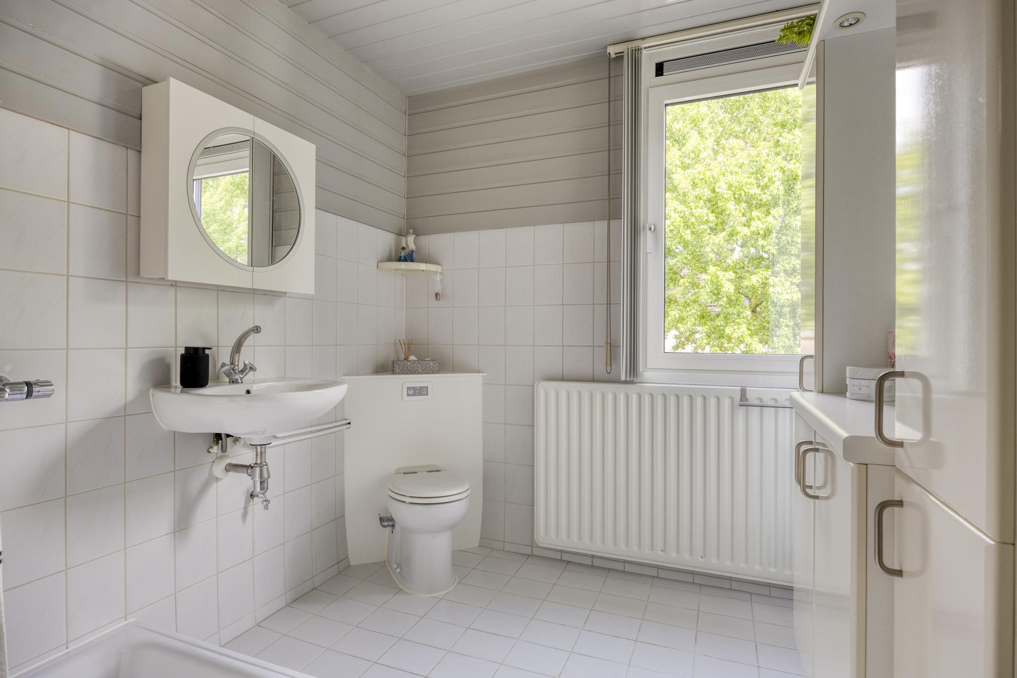 Via de vaste trap in de hal bereikt u de eerste verdieping, die beschikt over drie slaapkamers en een ruime badkamer. De twee grootste slaapkamers zijn royaal van formaat en bieden ruim voldoende plek voor een groot tweepersoonsbed, nachtkastjes en eventueel een kledingkast of andere meubels. De derde slaapkamer is veelzijdig inzetbaar en leent zich perfect als kastenkamer, kinderkamer of werkkamer. De kamers zijn voorzien van draai-kiep ramen met HR++ beglazing, die zorgen voor uitstekende isolatie en comfort. Voor extra ventilatie kunnen de ramen eenvoudig gekanteld worden, maar er is ook de mogelijkheid om via ventilatieroosters natuurlijk te ventileren zonder de ramen te hoeven openen. De ruime en lichte badkamer is van alle gemakken voorzien, met plaats voor een douche, wastafel en toilet. Hier is natuurlijke ventilatie aanwezig, wat bijdraagt aan een comfortabel binnenklimaat.