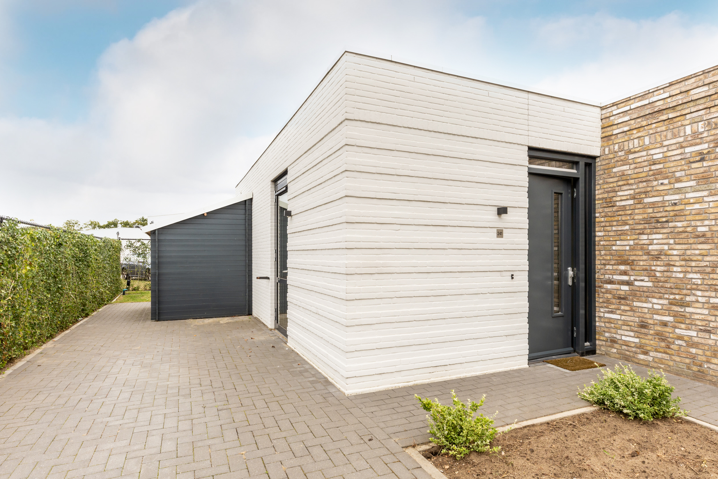 Aan de zijkant van de woning beschik je over een eigen oprit op eigen terrein – parkeren voor de deur voor twee auto's! – en direct daarnaast de aangebouwde houten schuur met elektra. Perfect voor (elektrische) fietsen, tuingereedschap of een compacte hobbyruimte; verlichting en stopcontacten zijn al aanwezig.