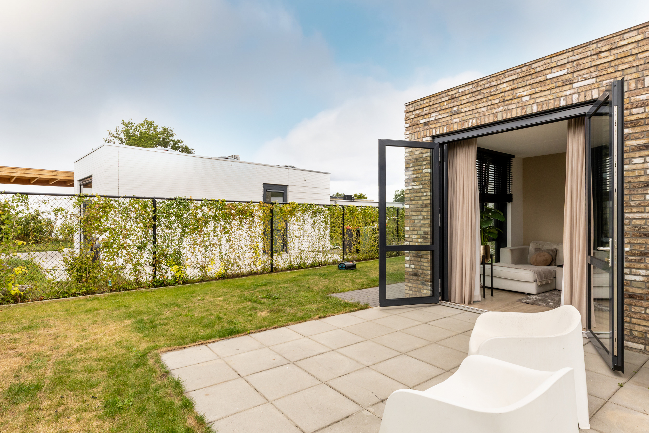Buiten is het minstens zo prettig. De tuin is onderhoudsvriendelijk aangelegd met bestrating en gazon. Op het gazon blijft de robotmaaier achter, zodat u daar geen omkijken meer naar hebt.