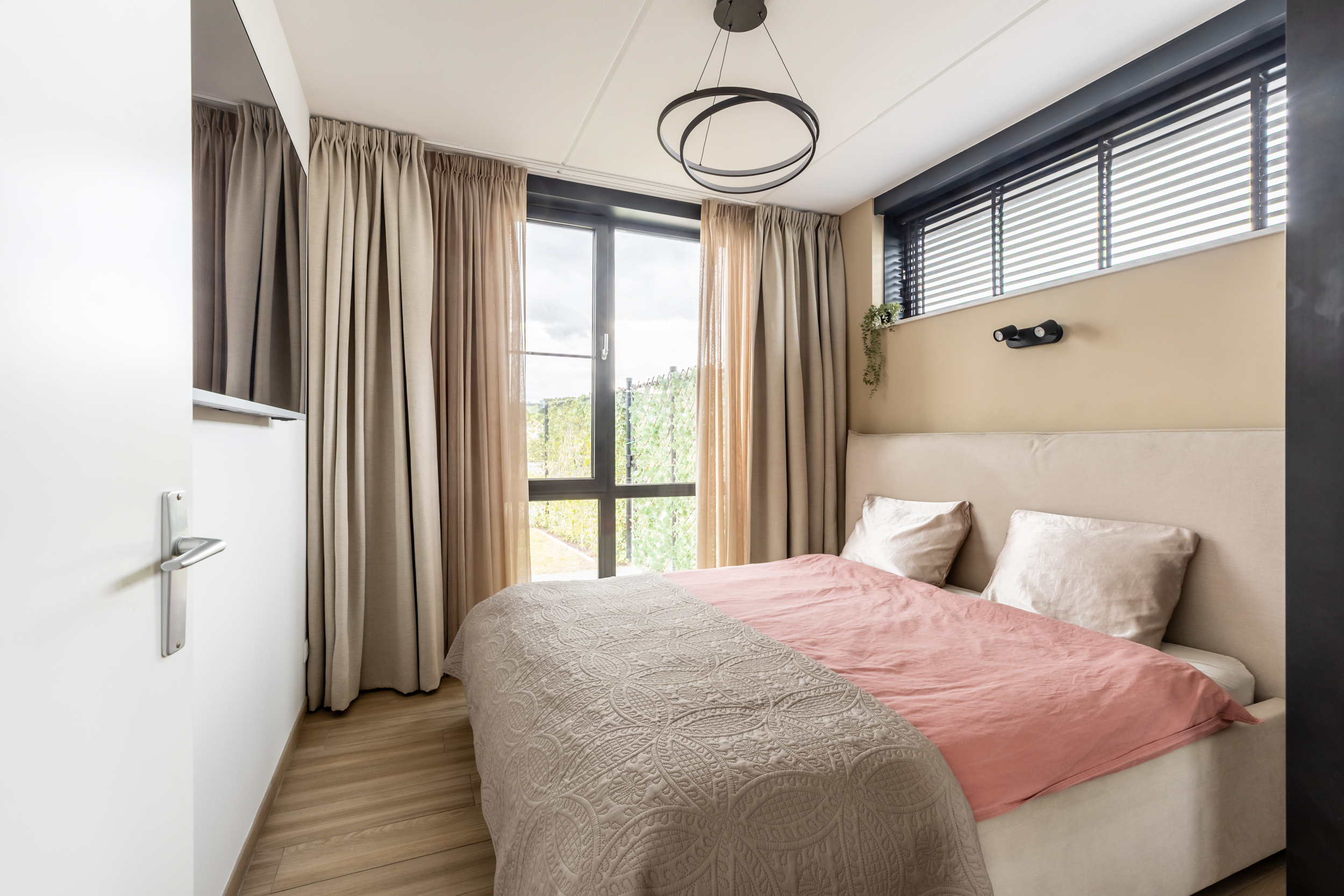 De slaapkamer heeft prettig veel daglicht; kasten kunnen hier royaal worden geplaatst, waardoor de kamer heerlijk opgeruimd blijft.