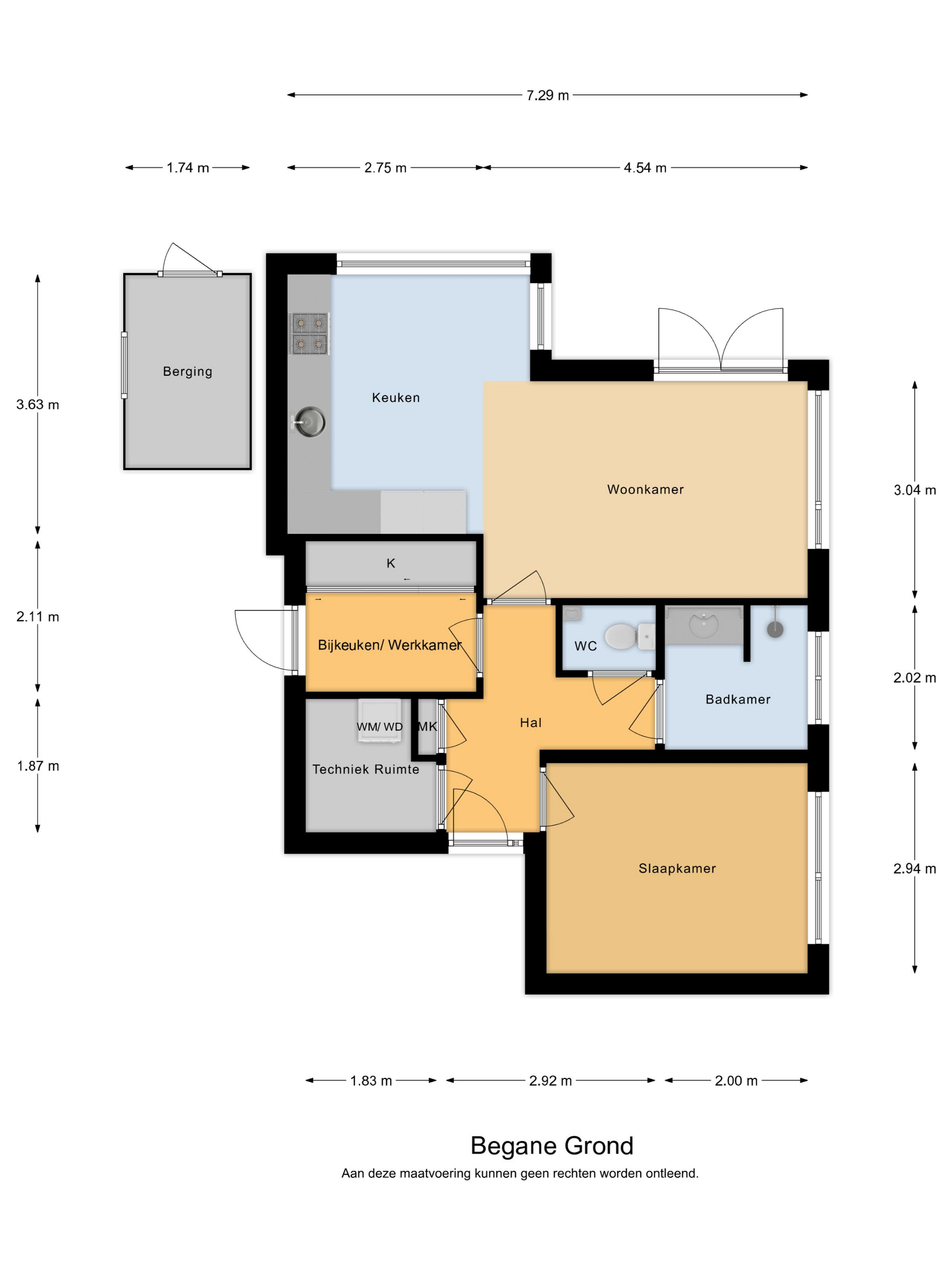 Woonoppervlak 57m2, oppervlak woning 70m2