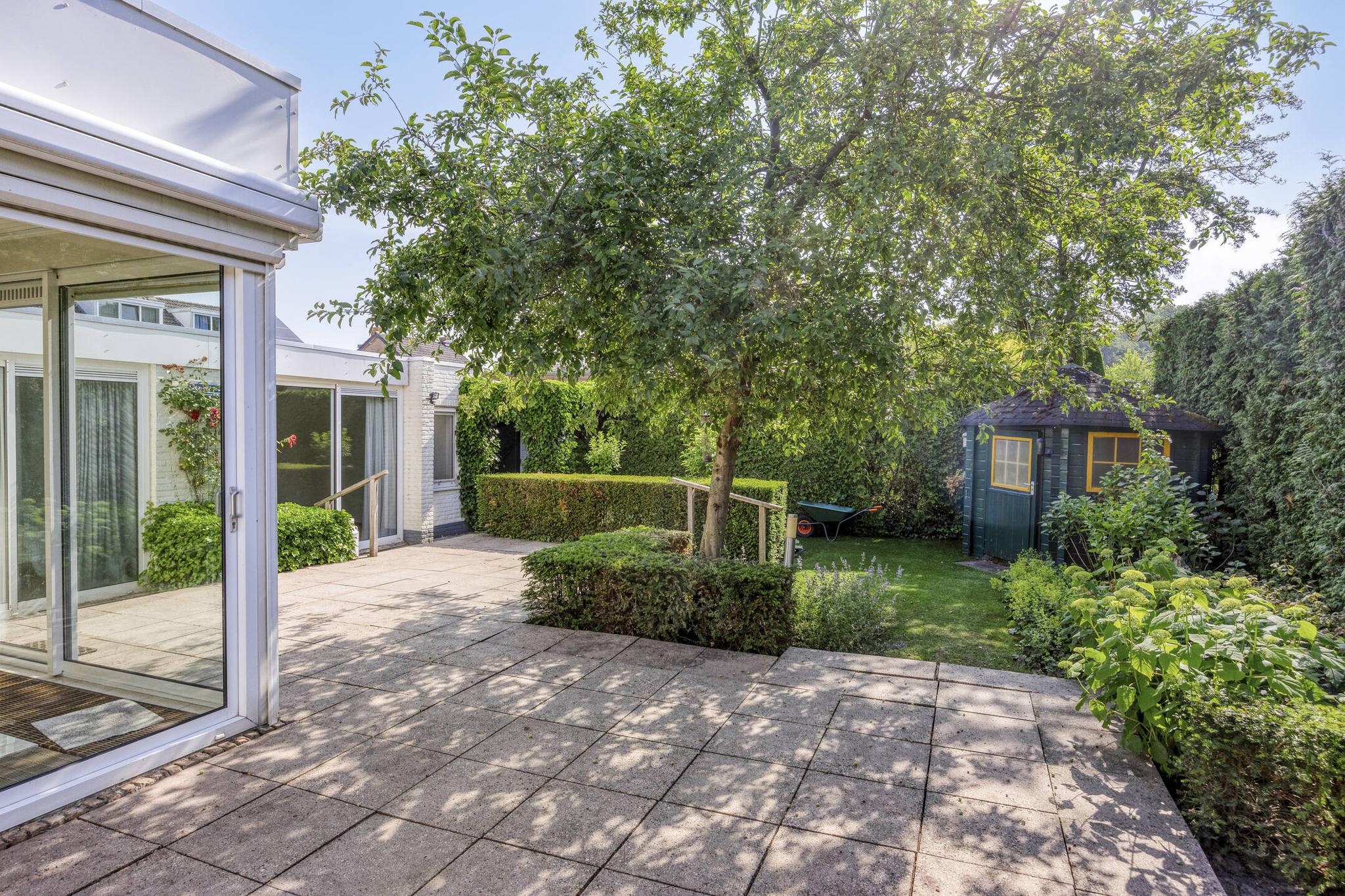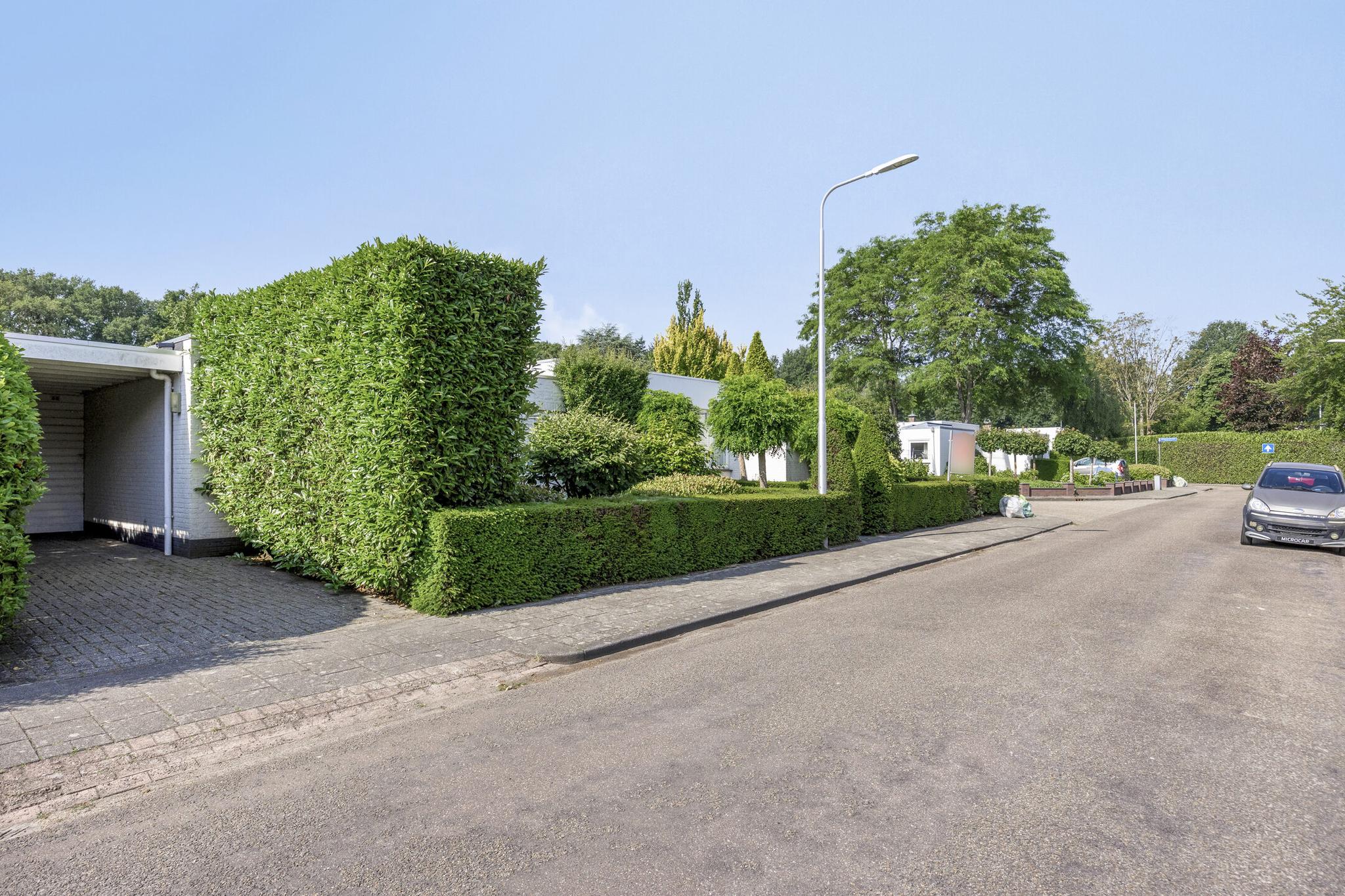 De tuin rondom de woning is de absolute eyecatcher van deze bungalow en biedt enorm veel ruimte, rust en privacy. In de tuin is er volop ruimte om te genieten van het buitenleven, of u nu wilt ontspannen in de zon, tuinieren of gezellig buiten eten. De tuin is perfect onderhouden en door het groen rondom heeft deze buitenruimte de luxe van optimale privacy en veiligheid. Via de schuifpui in de woonkamer heeft u direct toegang tot de tuin, waardoor de overgang tussen binnen en buiten naadloos in elkaar overloopt. Dit maakt het mogelijk om op warme dagen snel van de woonkamer naar het terras te lopen. Daarnaast zijn er twee andere toegangen: via de houten poort aan de rechterzijde van de woning en via de carport/garage aan de linkerzijde, waardoor u altijd gemakkelijk bij de tuin kunt komen. Een bijzonder kenmerk van de tuin is het charmante houten tuinhuis, dat van alle gemakken is voorzien, waaronder elektra. Dit maakt het de ideale plek voor het opbergen van tuingereedschap of andere spullen. Verder biedt de tuin volop mogelijkheden om te genieten van het buitenleven, met diverse zitgedeeltes op het verhoogde terras. Daarnaast is er een houten carport aanwezig, uitstekend voor het parkeren van een voertuig. Deze carport staan in direct verbinding met de aangelegen garage, welke niet alleen toegang biedt tot de tuin, maar ook plek biedt voor het stallen van fietsen en opbergen van diverse spullen.