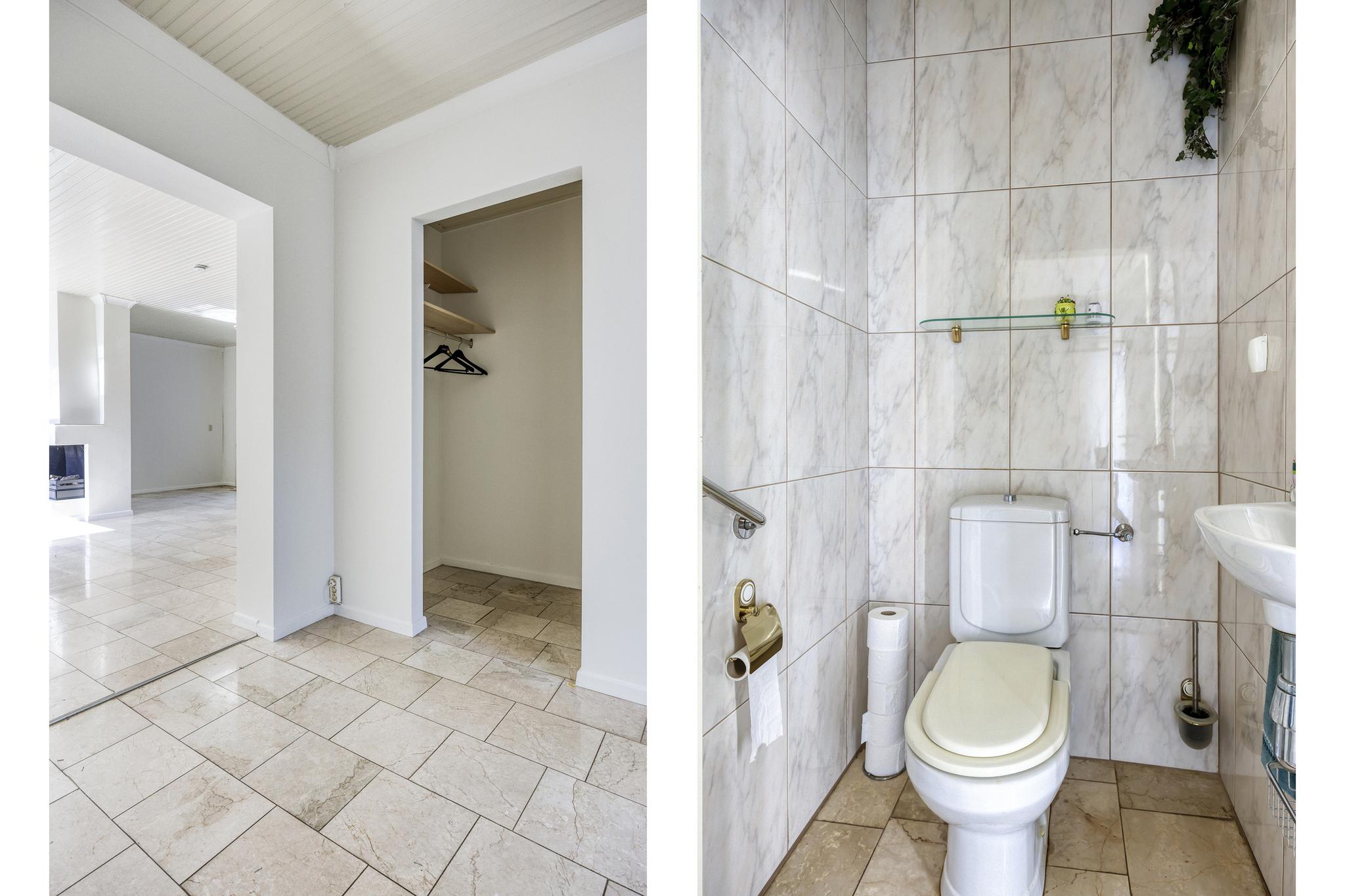 Vanuit de hal heeft u direct toegang tot de 3 slaapkamers aan de linkerzijde van de woning. Oorspronkelijk waren dit 4 slaapkamers, maar de ruimte is nu optimaal benut voor extra comfort en een praktische indeling. De eerste slaapkamer, de master bedroom, biedt een zee van ruimte en laat dankzij de vele grote raampartijen enorm veel zonlicht binnen. Gelegen aan de zuidzijde van de woning, geniet u hier van een prachtige lichtinval en heeft u via een schuifpui directe toegang tot de achtertuin. Naast deze riante slaapkamer bevindt zich de tweede slaapkamer, een volwaardige ruimte die perfect gebruikt kan worden als slaap-, werk-, studeer- of kastenkamer. Tot slot biedt de woning een derde slaapkamer, gelegen aan de voorzijde van de woning. Ook deze kamer is van voldoende grootte om als volwaardige slaapkamer in gebruik te nemen, maar biedt daarnaast verschillende andere mogelijkheden voor inrichting naar wens. Tot slot is er in het slaapvertrek van de woning een grote badkamer aanwezig, welke is voorzien van een ligbad, een wastafel, toilet en een douche. De badkamer is bovendien praktisch ingedeeld, omdat deze direct vanuit de master bedroom toegankelijk is, wat het dagelijks gebruik vereenvoudigt.