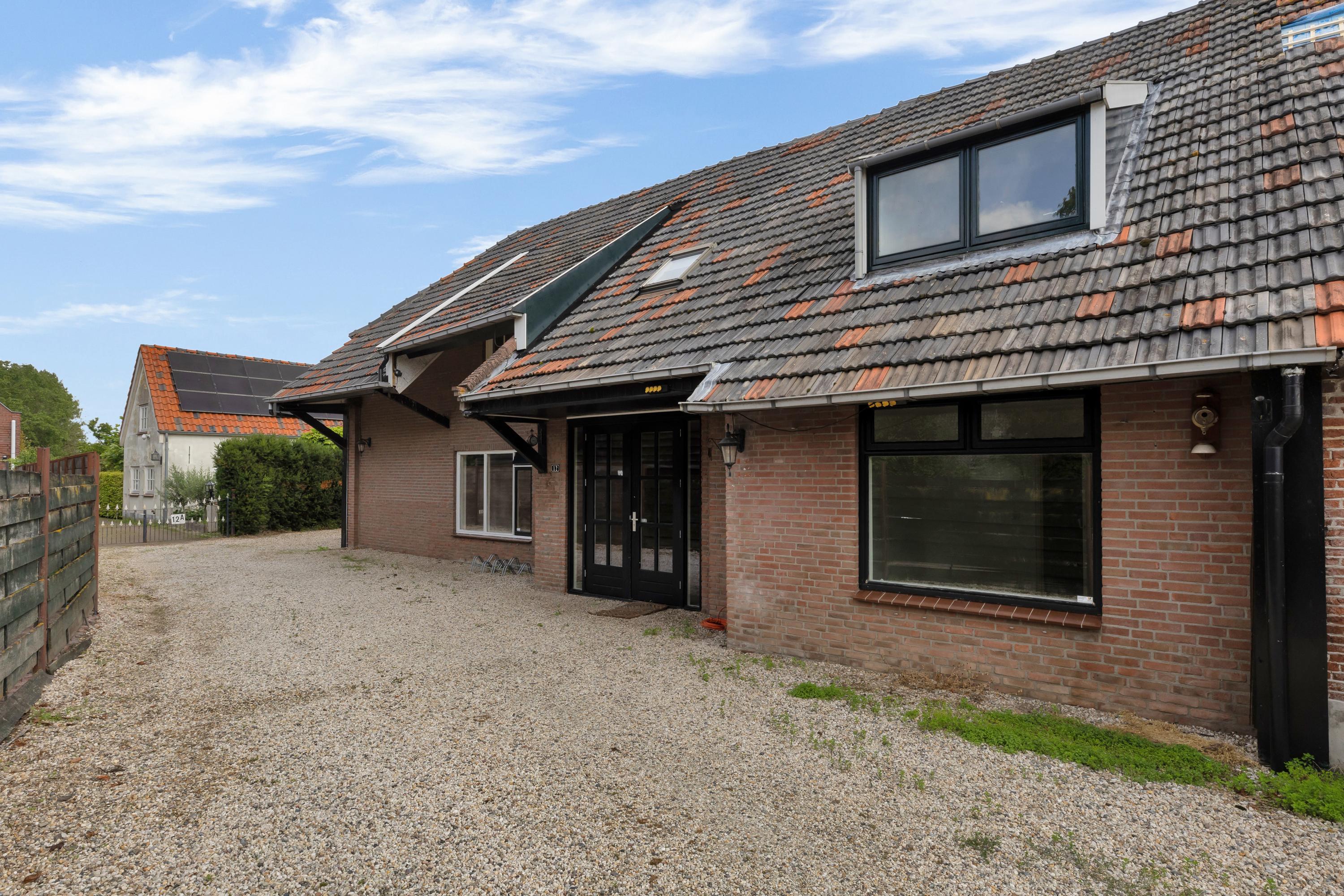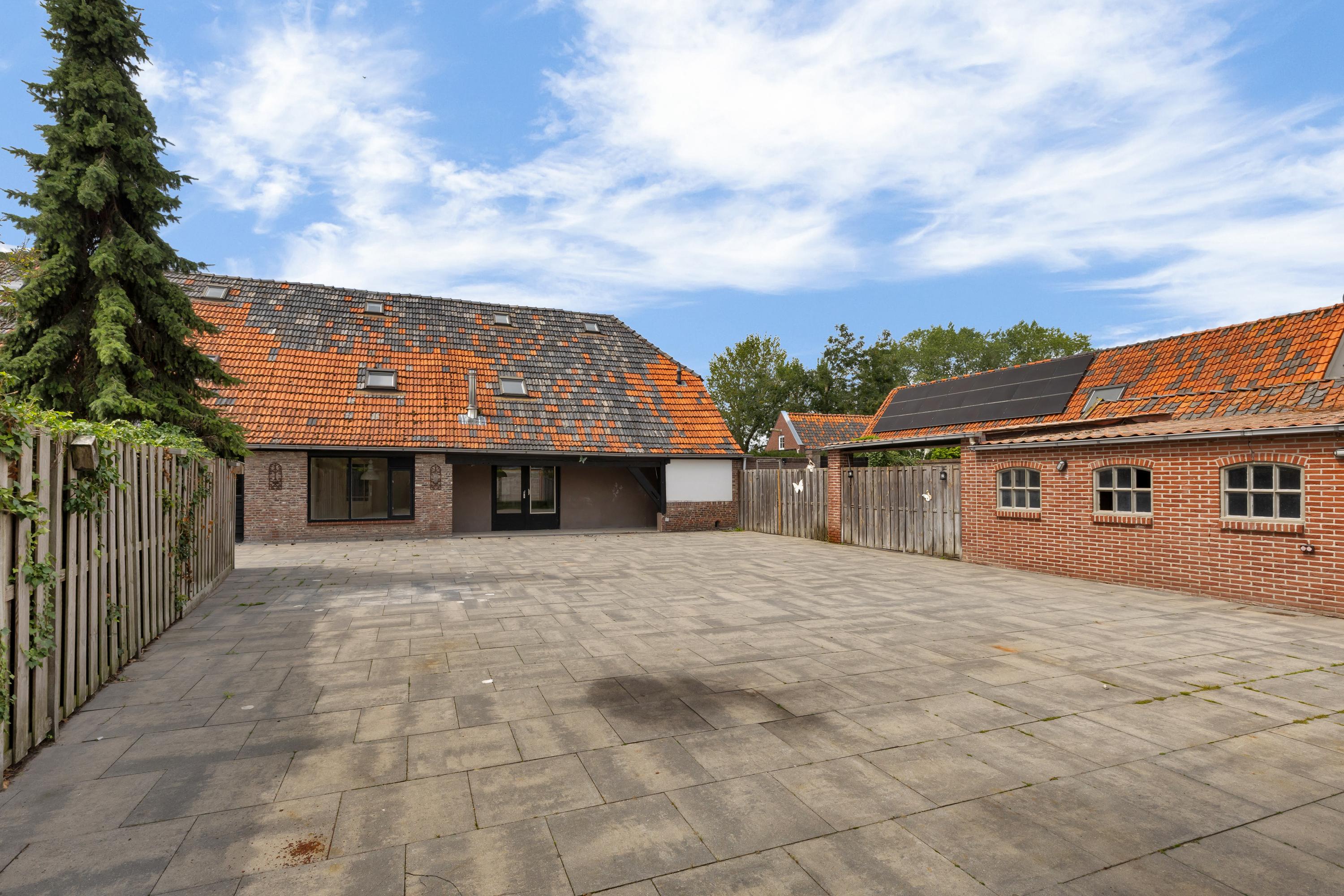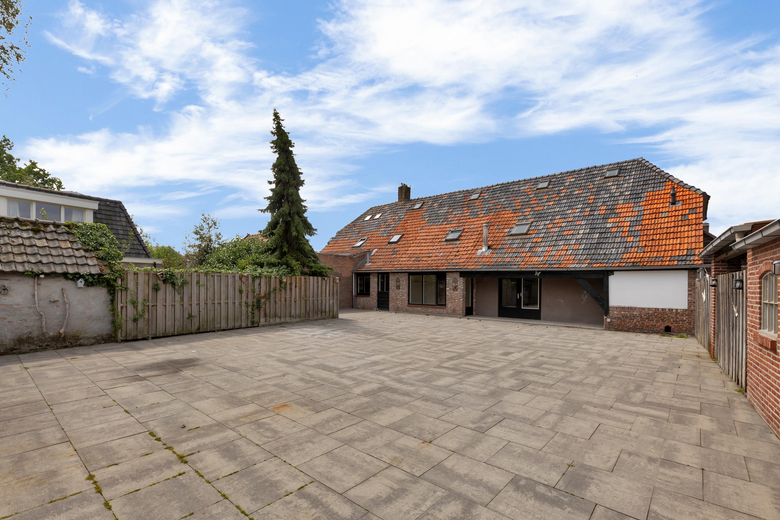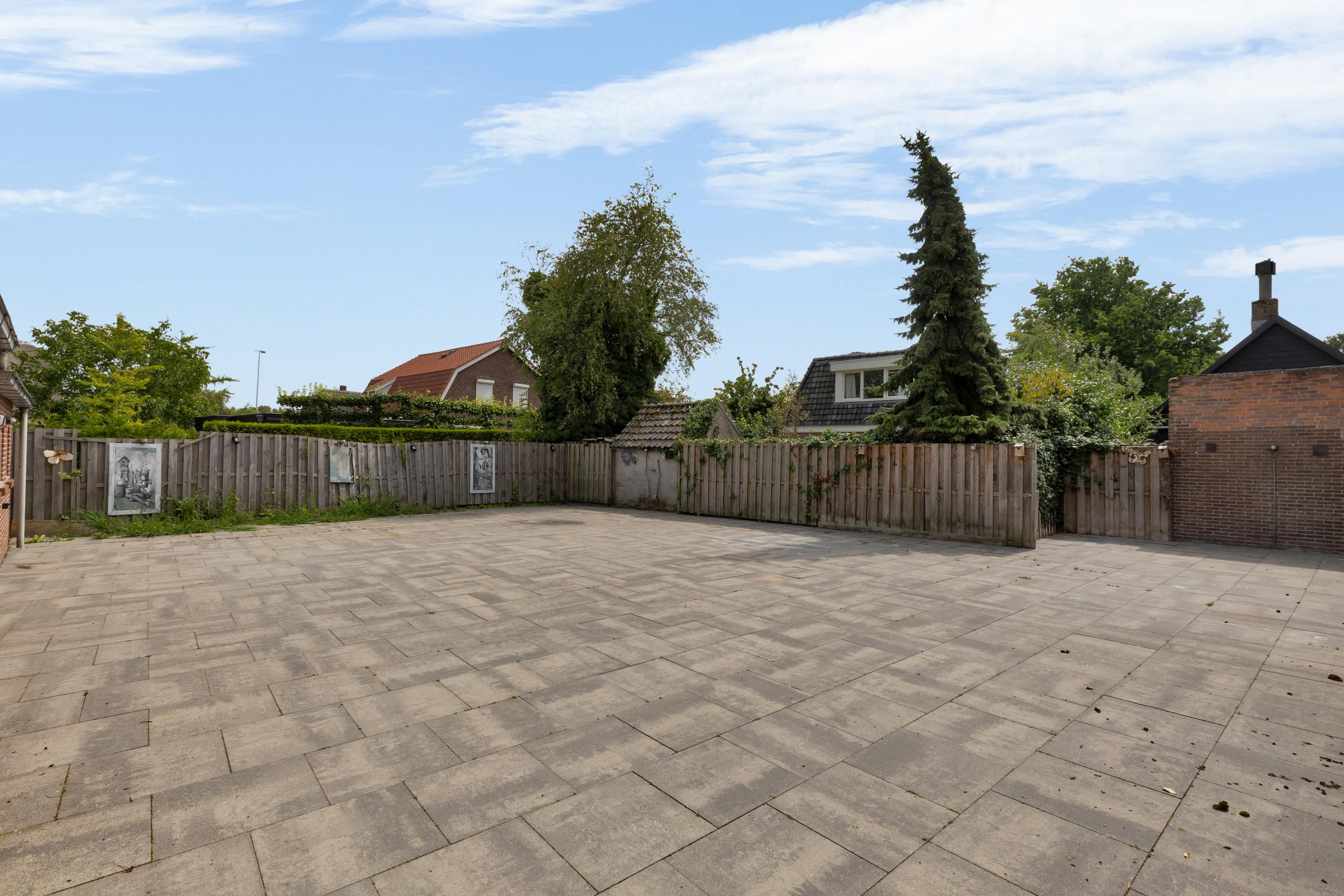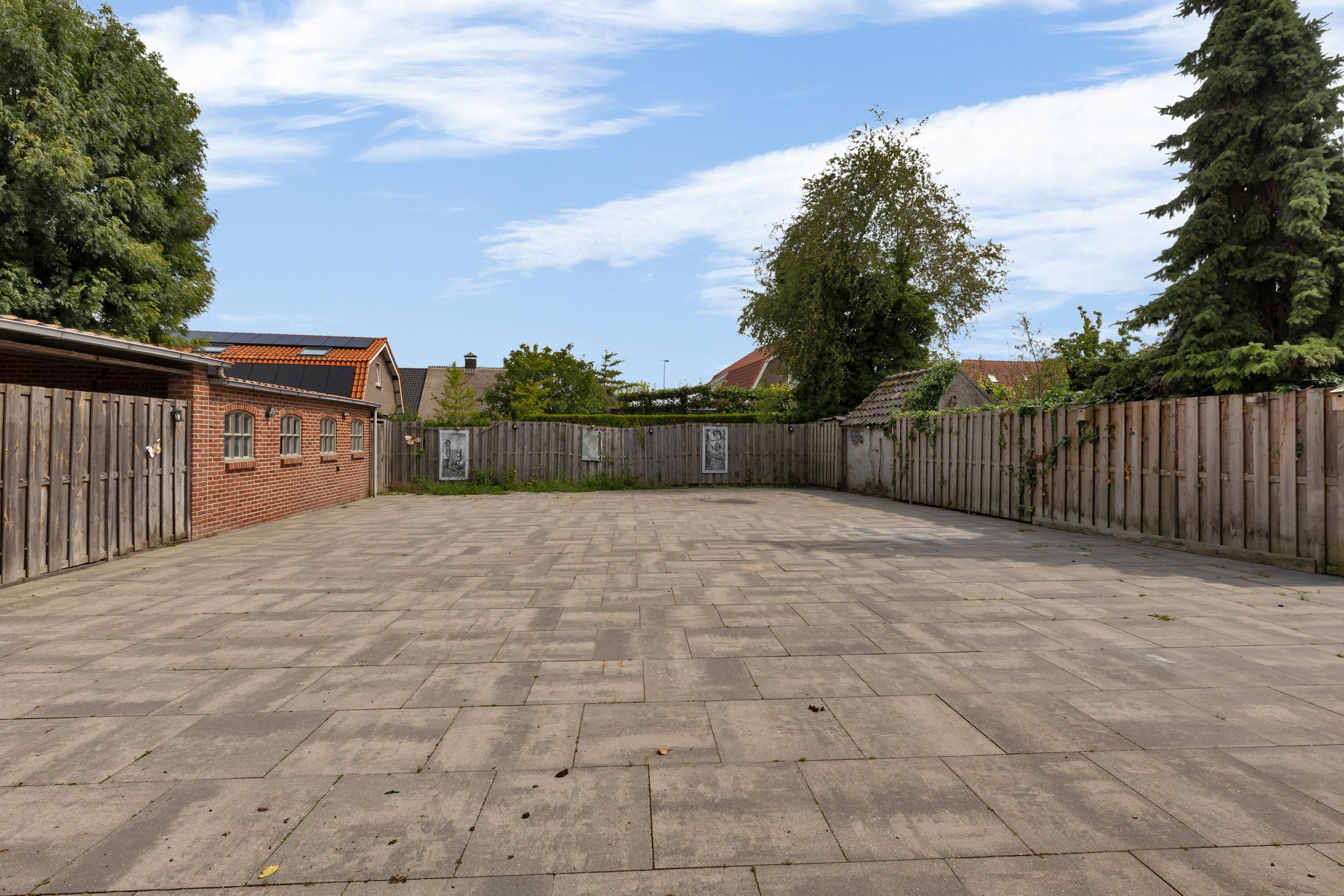 De achtertuin is volledig bestraat en daardoor zeer onderhoudsvriendelijk. Achterin de tuin staat een ruime stenen schuur van ruim 40 m², inclusief overkapping – ideaal voor opslag, klussen of als buitenkantoor. Via een houten poort is de tuin te bereiken vanaf een breed grindpad dat doorloopt tot aan de straat. Dit pad is voorzien van een mondeling recht van overpad, wat zorgt voor extra bereikbaarheid. De tuin biedt voldoende ruimte voor speeltoestellen, loungehoek of moestuin. Hier geniet je volop van het buitenleven met alle gemakken binnen handbereik.