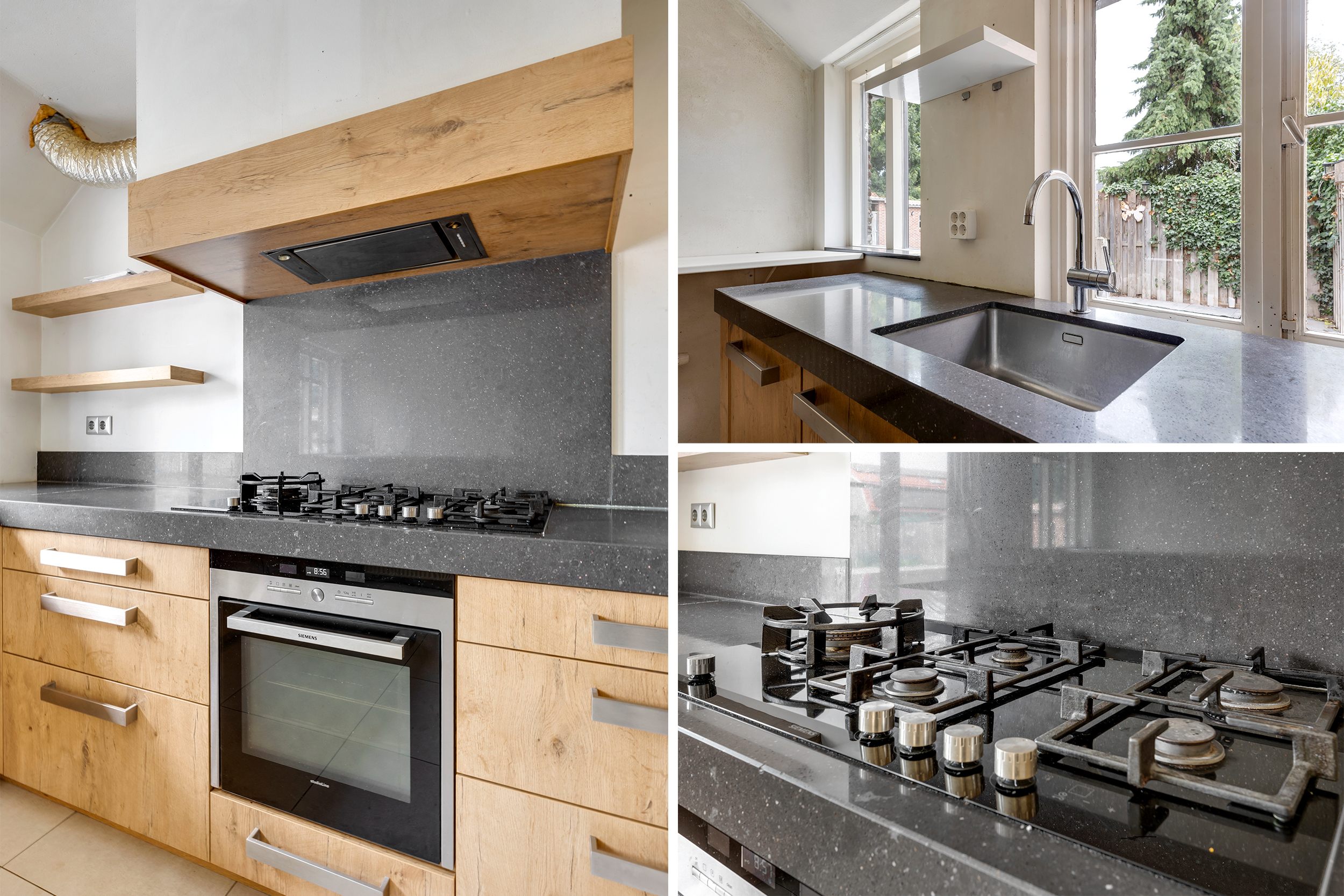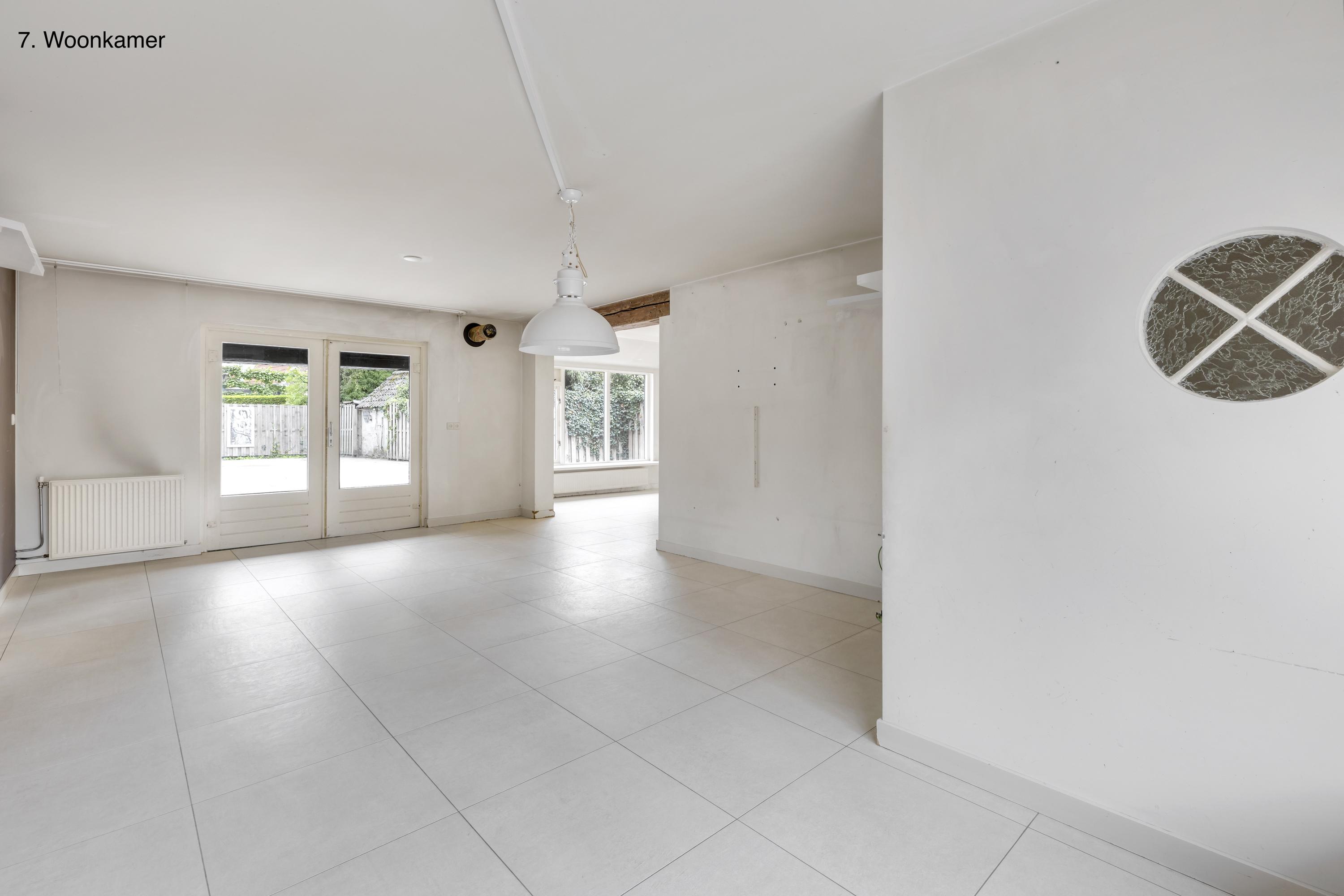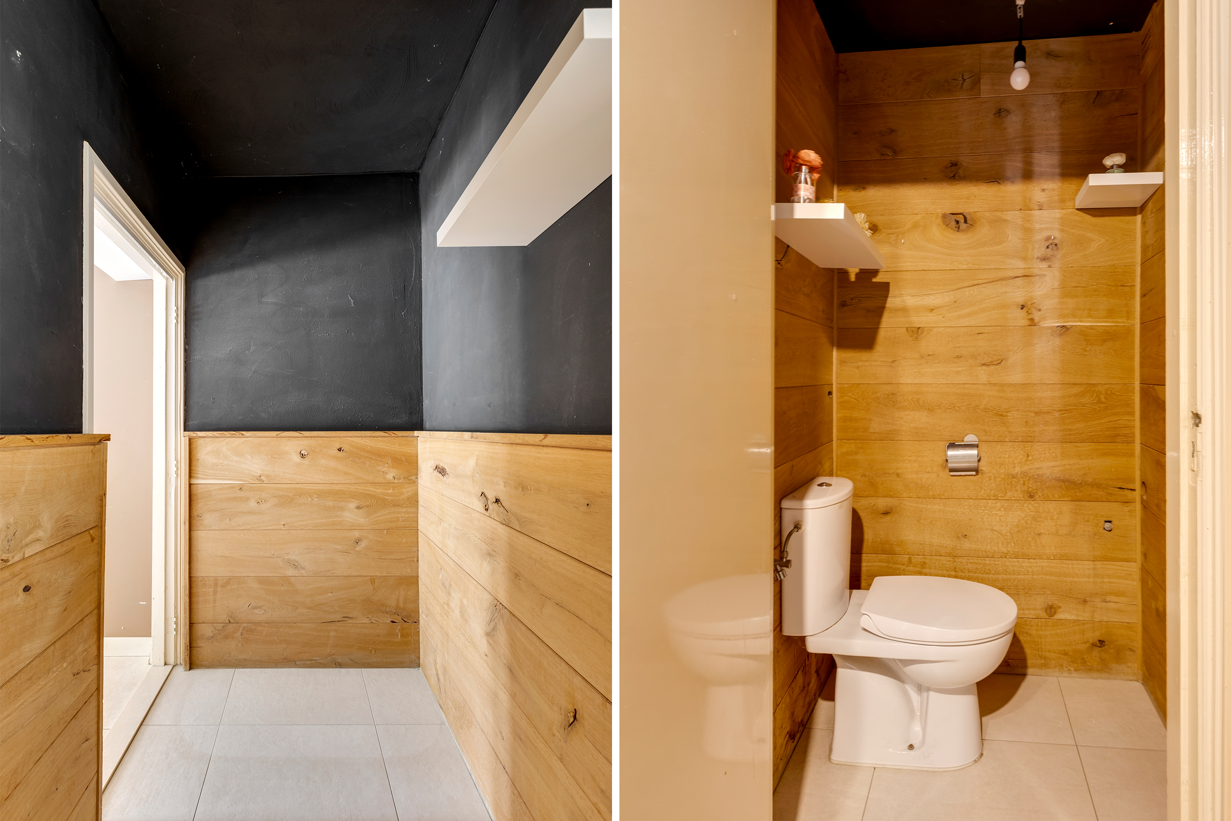 Volgens Brabants gebruik gaan we achterom. Via de openslaande deuren aan de tuinzijde stap je binnen in de ruime, lichte woonkamer met plavuizen vloer die doorloopt over de hele benedenverdieping. De open keuken is uitgerust met moderne inbouwapparatuur, waaronder een oven, 5-pits gaskookplaat, afzuigkap, koelkast, vaatwasser en een handige voorraadkast. Aansluitend vind je de werkkamer en de eetkamer met toegang tot de oprit via dubbele tuindeuren. Vanuit de eetkamer bereik je via een tussenhal het toilet. Aan de andere zijde van het huis bevindt zich nog een hal met tweede trapopgang, trapkast, wasruimte en een ruime, recent vernieuwde badkamer. De badkamer is afgewerkt met twee wastafels, toiletkasten en twee grote inloopdouches. Een praktische indeling met volop leefruimte.