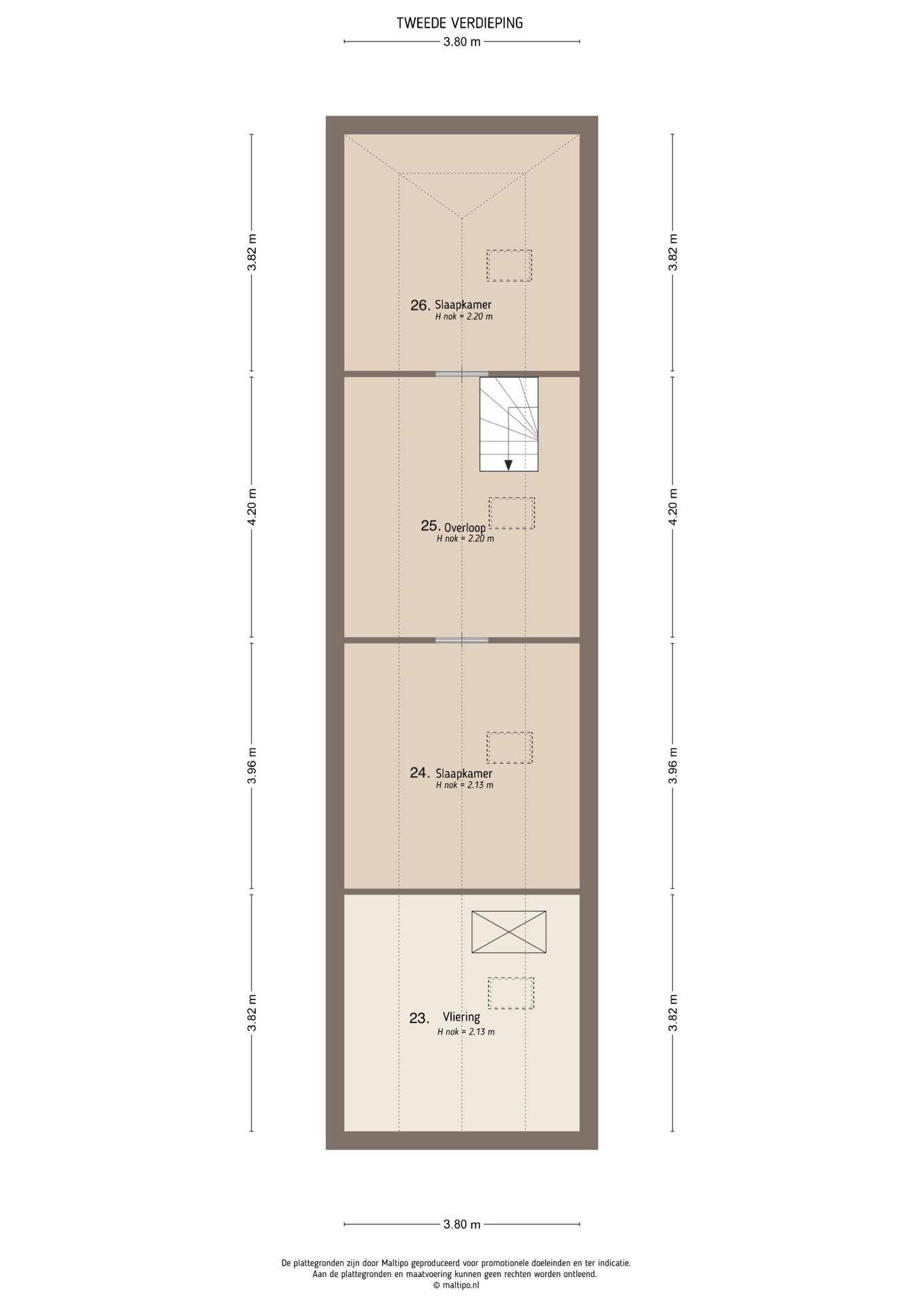 Via een vaste trap kom je op de overloop van de tweede verdieping. Hier bevinden zich nog twee slaapkamers, beide voorzien van een dakraam. Deze kamers zijn ideaal als logeer-, werk- of speelkamer. Daarnaast is er een vliering met een nokhoogte van 213 cm. Deze is bereikbaar via een vlizotrap en biedt handige extra bergruimte. De zolder is praktisch en multifunctioneel inzetbaar. Een fijne extra etage die het woonoppervlak compleet maakt.