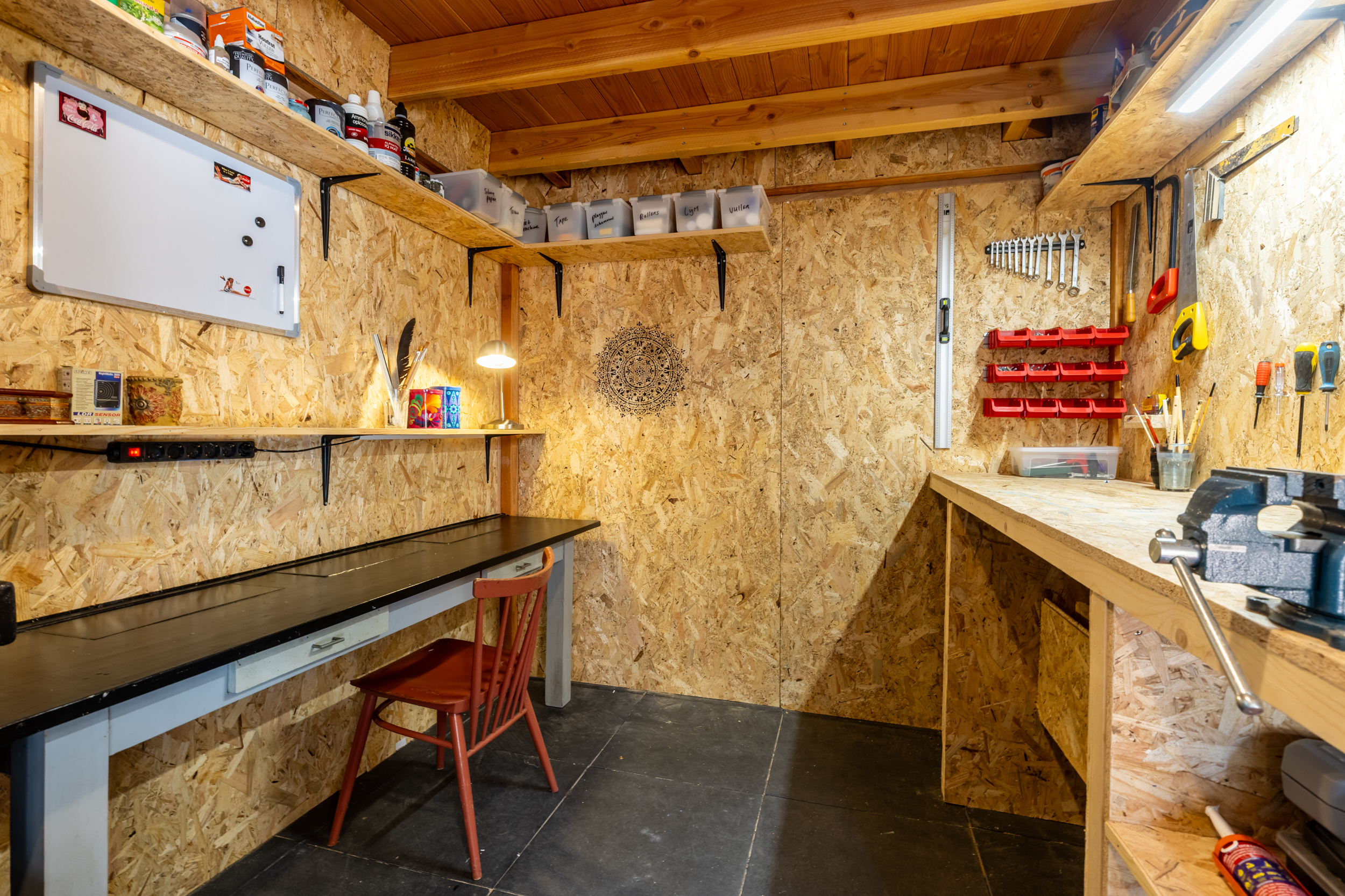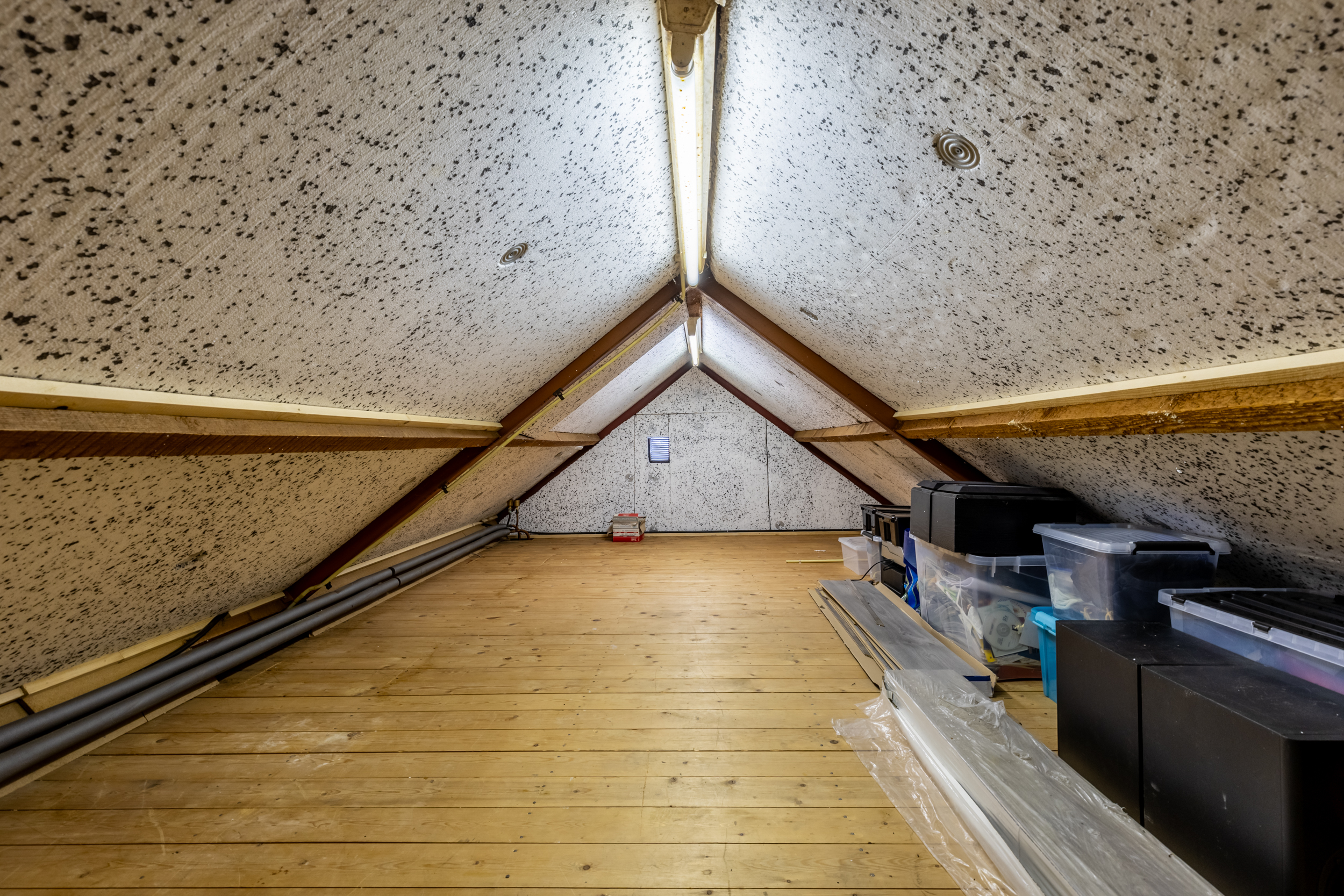 De zolder is bereikbaar via een vlizotrap en biedt volop bergruimte. Ideaal voor seizoensgebonden spullen zoals kerstdecoratie, koffers of sportuitrusting. Daarnaast is er nog een extra bergzolder boven de werkruimtes, bereikbaar via een vlizotrap in de hal achter de keuken. Dankzij deze praktische bergruimtes blijft de woning altijd netjes en opgeruimd.