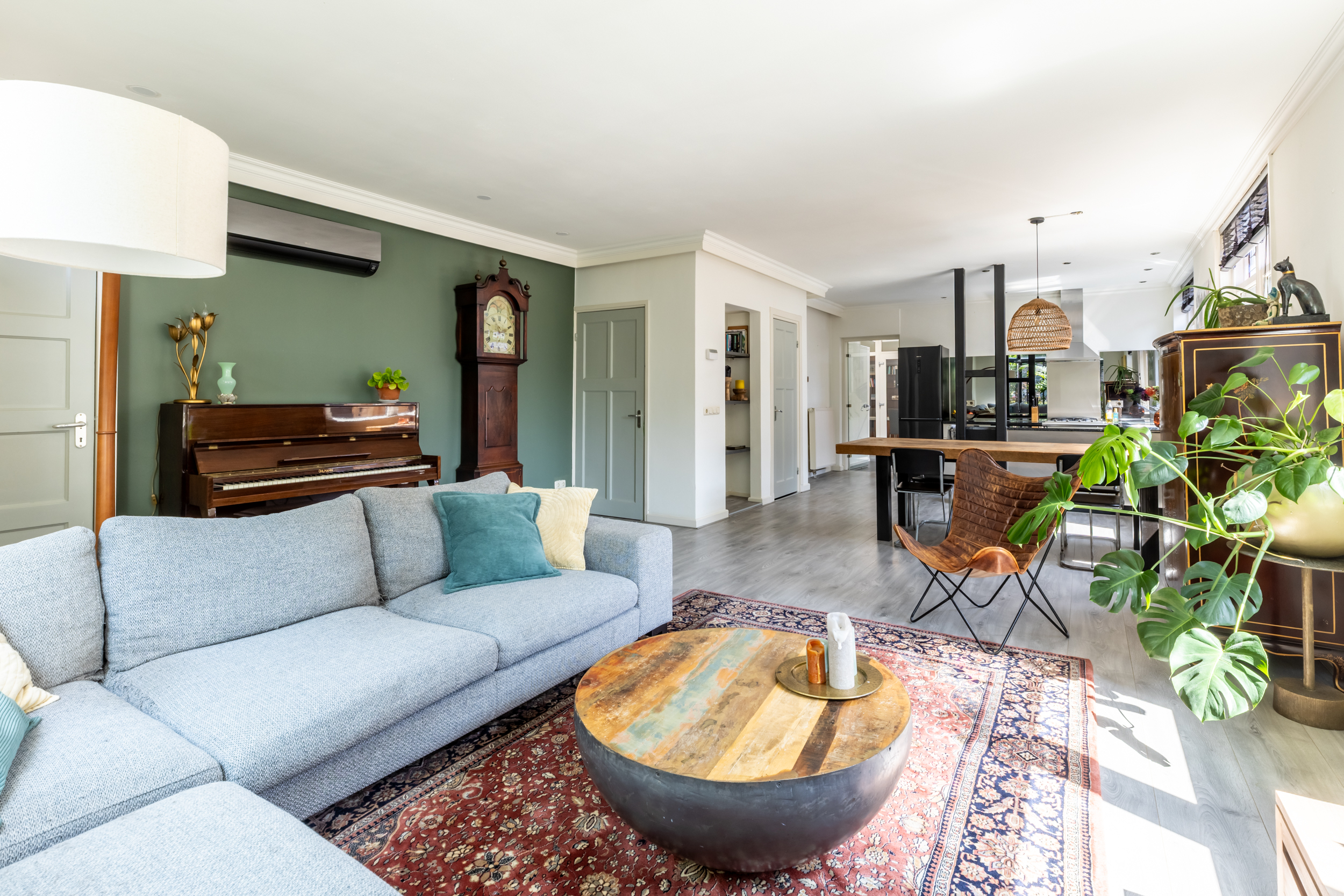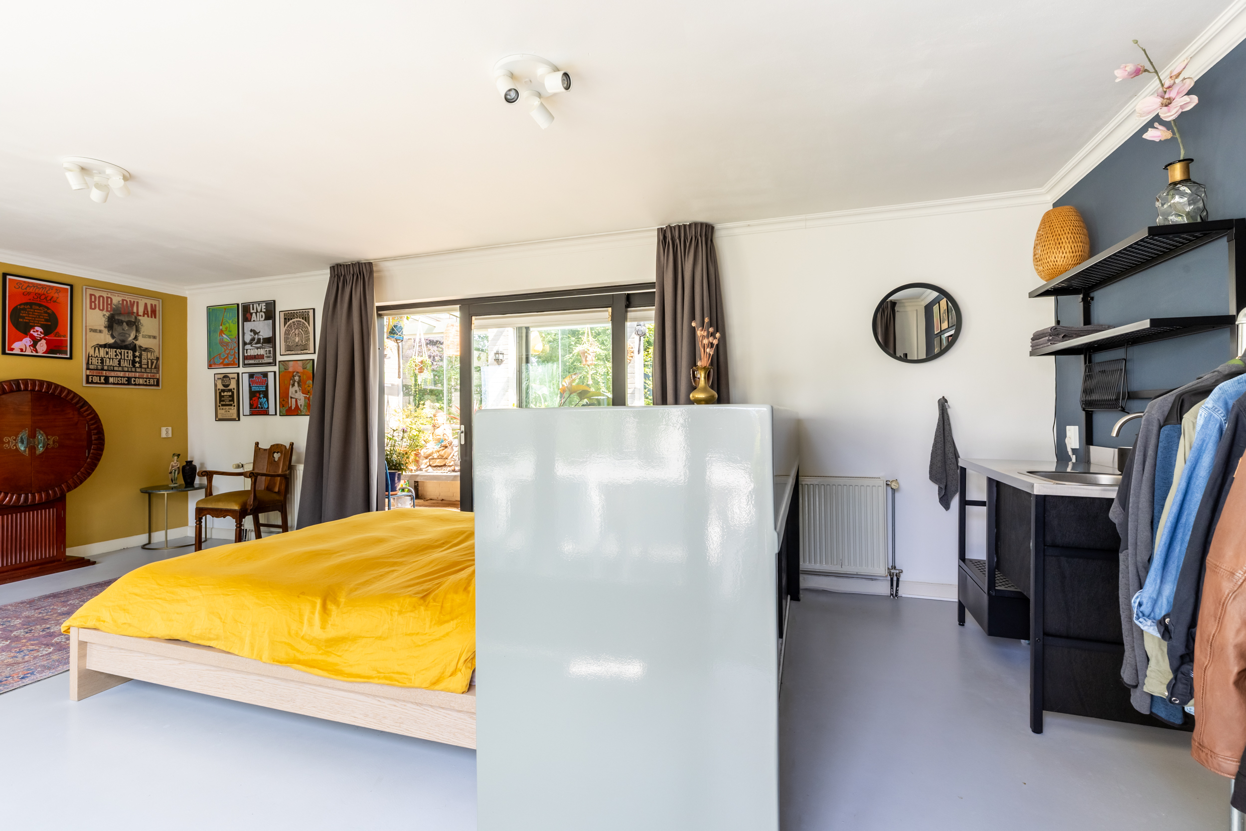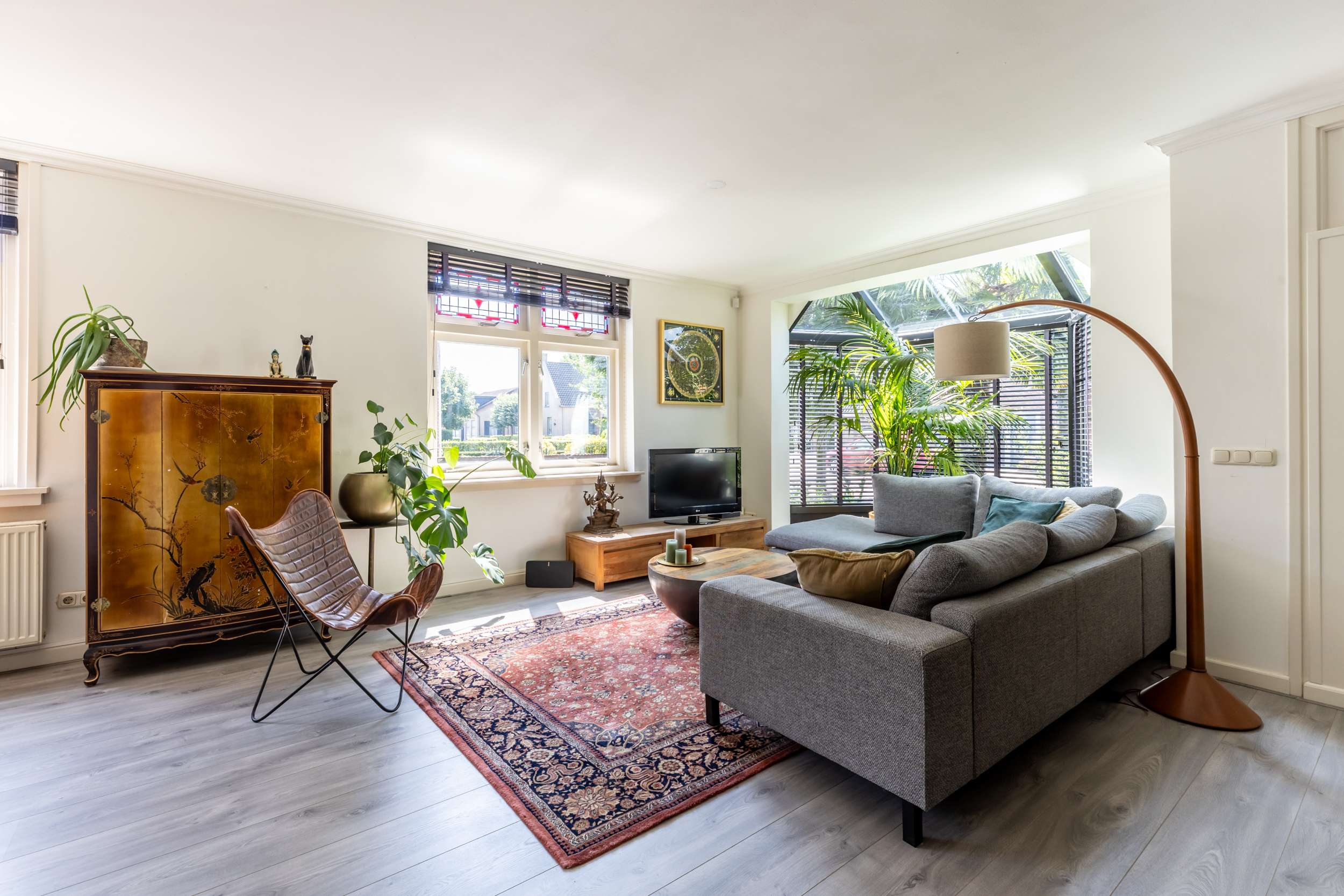 Via de voordeur betreedt u de woning en komt u direct terecht in een bijzonder ruime woonkamer. Hier is meer dan genoeg plek voor een royale zithoek én een grote eettafel. Dankzij de vele raampartijen en de sfeervolle glas-in-loodramen is het binnen heerlijk licht en warm. Aansluitend bevindt zich de open keuken, voorzien van meerdere kastruimtes en toegang tot een hal. Vanuit deze hal bereikt u de tuin, het toilet en de kast waar de cv-installatie hangt. Aan de achterzijde liggen royale ruimtes die momenteel als werkruimte dienen, ideaal voor een kantoor aan huis of extra slaapkamers. Ook de hoofdslaapkamer bevindt zich hier: ruim genoeg voor een tweepersoonsbed, voorzien van een inloopkast en directe toegang tot de tuin. Achter deze slaapkamer ligt bovendien een prachtige tuinkamer, perfect om even tot rust te komen.