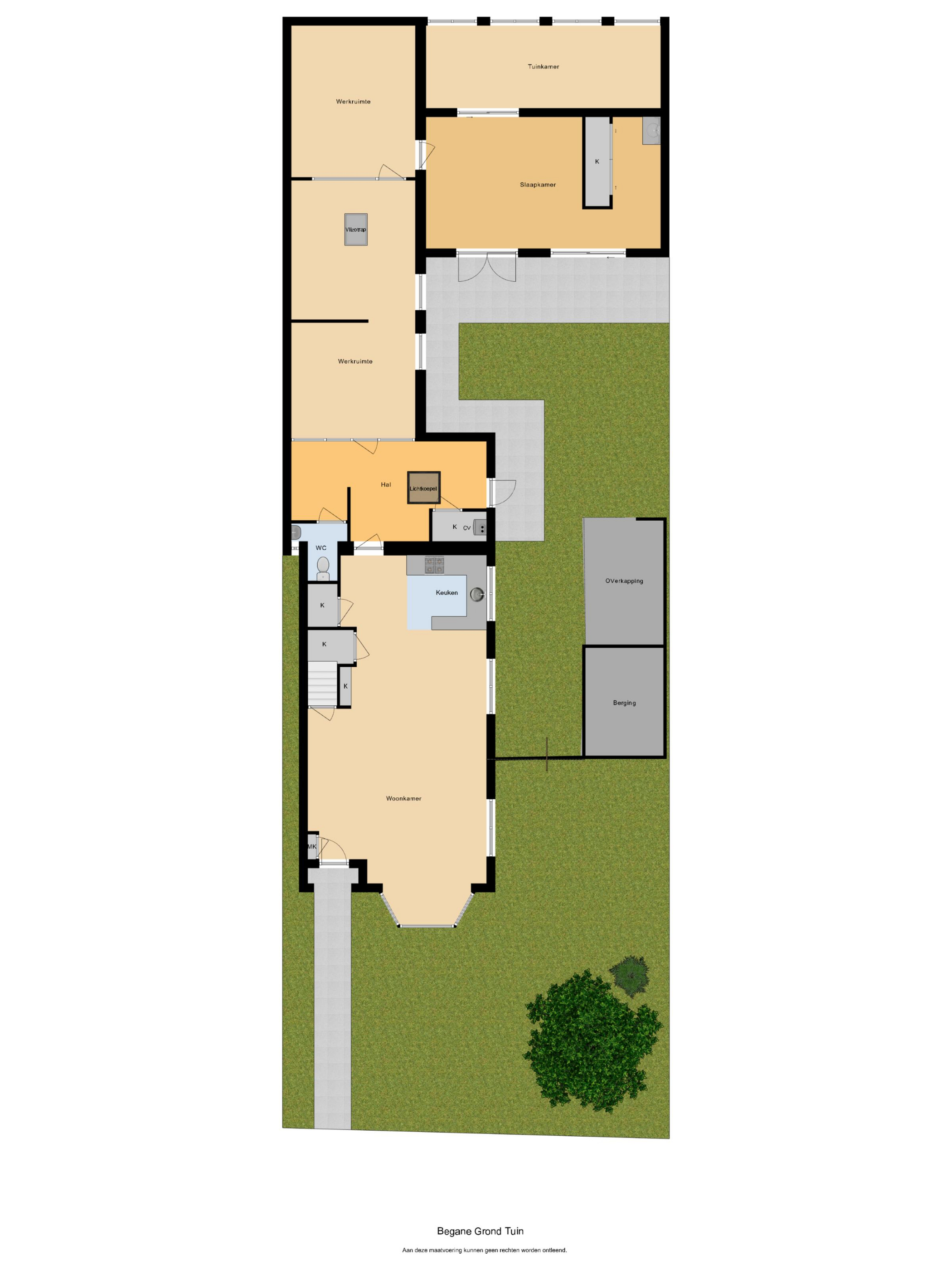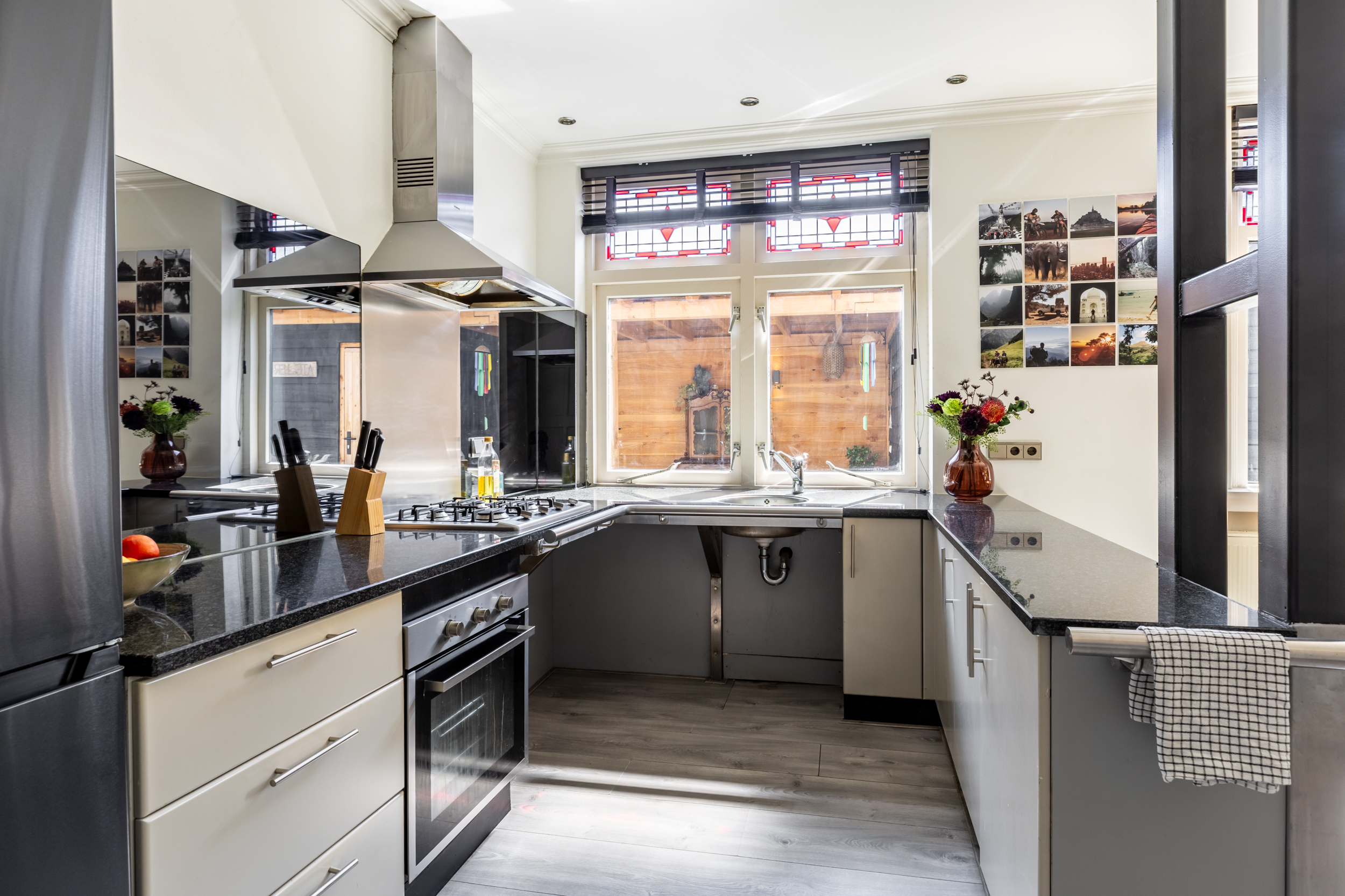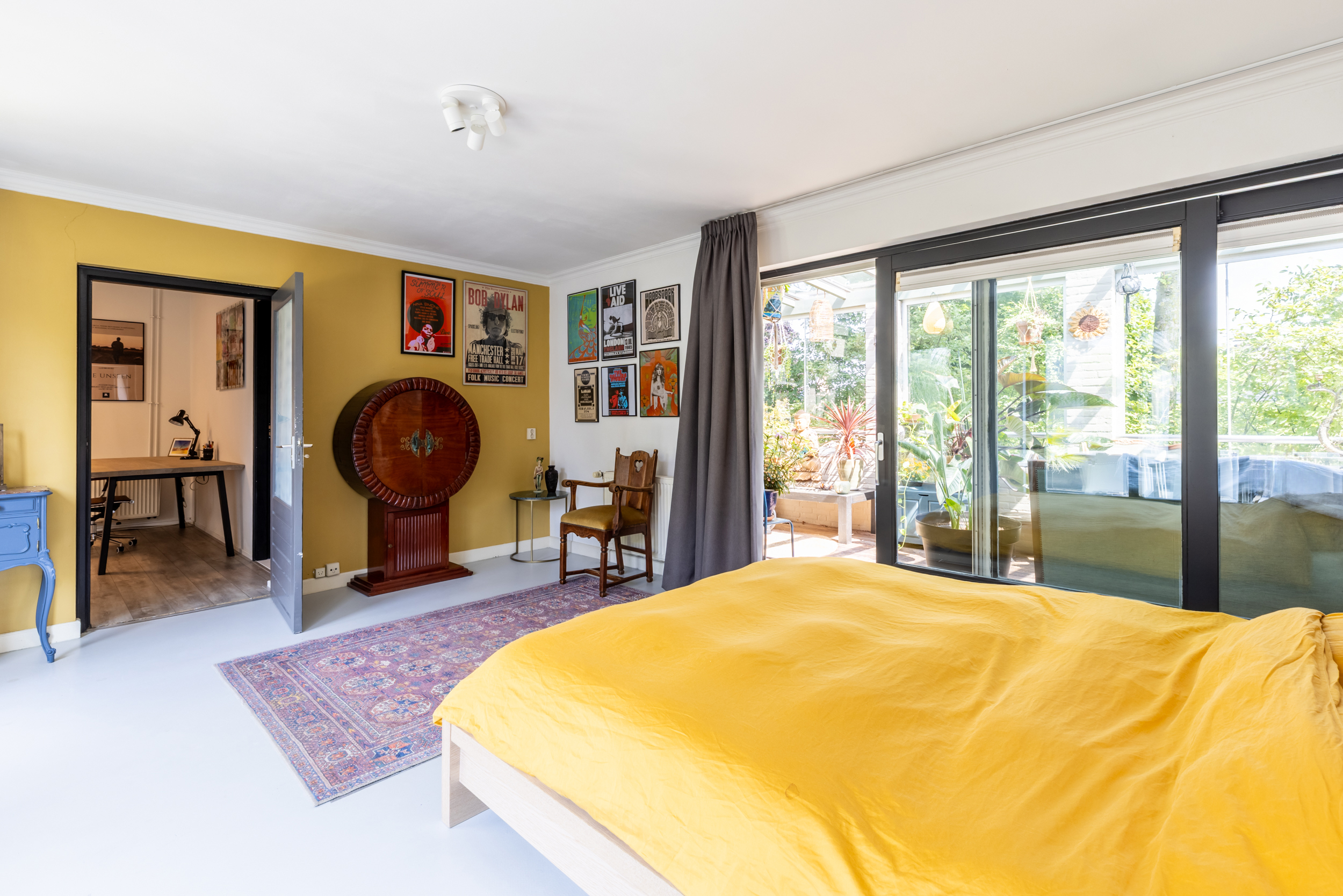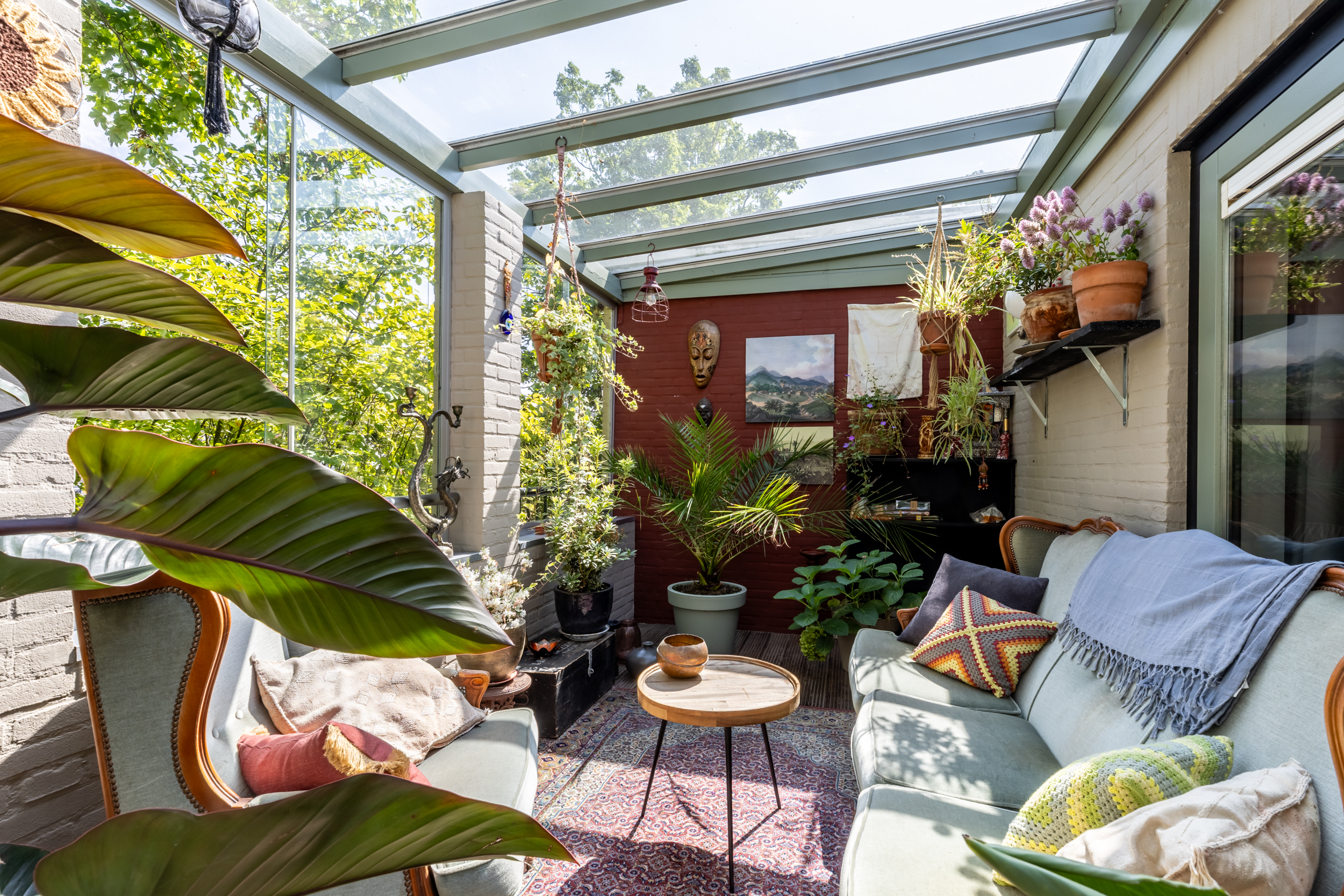 Via de voordeur betreedt u de woning en komt u direct terecht in een bijzonder ruime woonkamer. Hier is meer dan genoeg plek voor een royale zithoek én een grote eettafel. Dankzij de vele raampartijen en de sfeervolle glas-in-loodramen is het binnen heerlijk licht en warm. Aansluitend bevindt zich de open keuken, voorzien van meerdere kastruimtes en toegang tot een hal. Vanuit deze hal bereikt u de tuin, het toilet en de kast waar de cv-installatie hangt. Aan de achterzijde liggen royale ruimtes die momenteel als werkruimte dienen, ideaal voor een kantoor aan huis of extra slaapkamers. Ook de hoofdslaapkamer bevindt zich hier: ruim genoeg voor een tweepersoonsbed, voorzien van een inloopkast en directe toegang tot de tuin. Achter deze slaapkamer ligt bovendien een prachtige tuinkamer, perfect om even tot rust te komen.