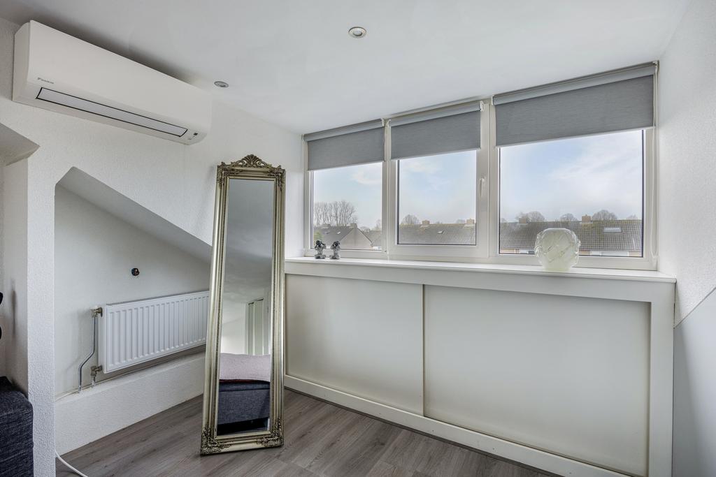 Middels een vaste trap is de zolder bereikbaar. Hier bevinden zich nog een voorzolder en de 4e slaapkamer. Deze zolder is voorzien van dubbele dakkapellen, waardoor de slaapkamer een heerlijk formaat heeft. Ook hier is het lekker koel te houden middels een airco. Op de voorzolder is de cv-ketel opstelling geplaatst, ook de aansluiting van het was-apparatuur is hier aanwezig. Er is tevens bergruimte gecreëerd onder de schuinte van het dak.