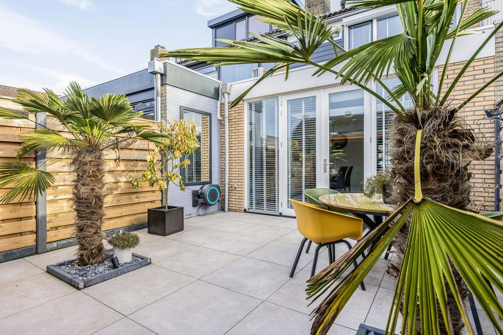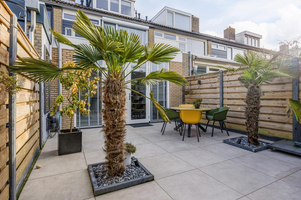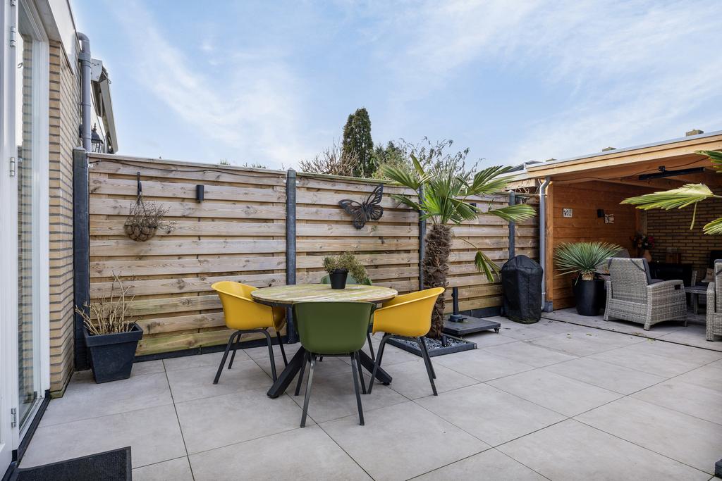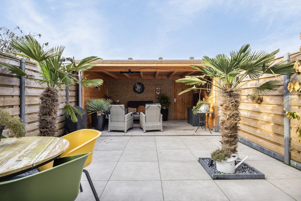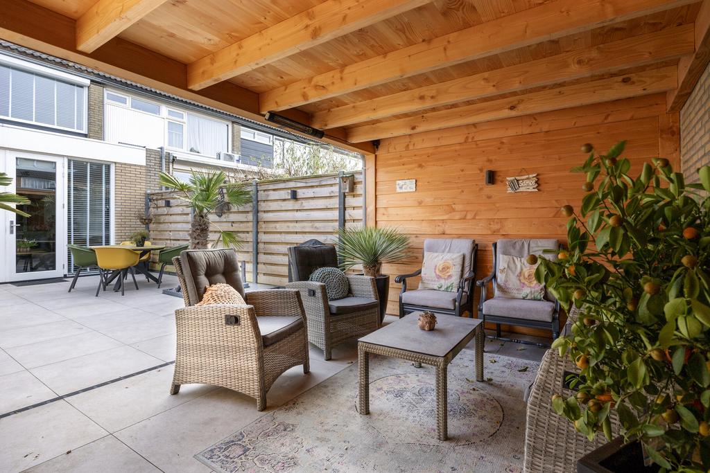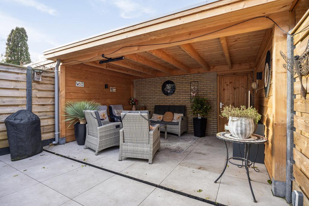 De achtertuin is op het westen gelegen en is ontsloten met een achterom. De tuin is voorzien van een bestraat terras, een heerlijke overkapping opgetrokken van robuust hout en een stenen schuur voorzien van elektra. Er is vrijwel geen inkijk in de achtertuin wat de privacy ten goede komt.