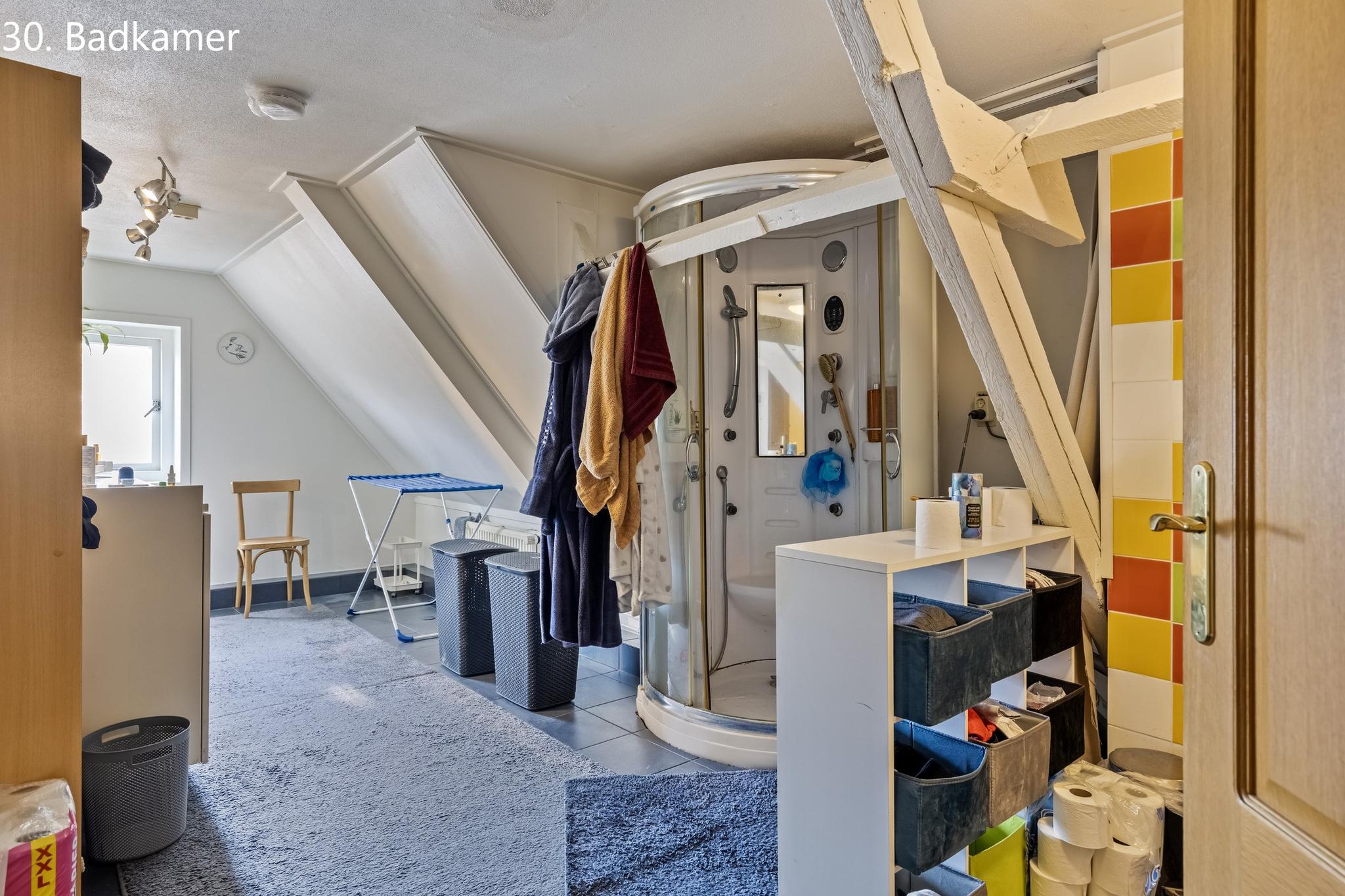 Op de overloop hebben we toegang tot 3 slaapkamers en een badkamer. De drie ruime slaapkamers zijn groot genoeg voor het plaatsen van een tweepersoonsbed en kledingkast, maar kunnen ook gebruikt worden als bijvoorbeeld kantoor of hobbyruimte. De badkamer is groot en voorzien van een toilet, dubbele wastafel en douche. Ook is het voorzien van een grote kastenwand. Tot slot is het hoofdverblijf ook voorzien van een ruime zolder welke met een vlizotrap te bereiken is. Ideaal voor het opslaan van niet alledaagse spullen.