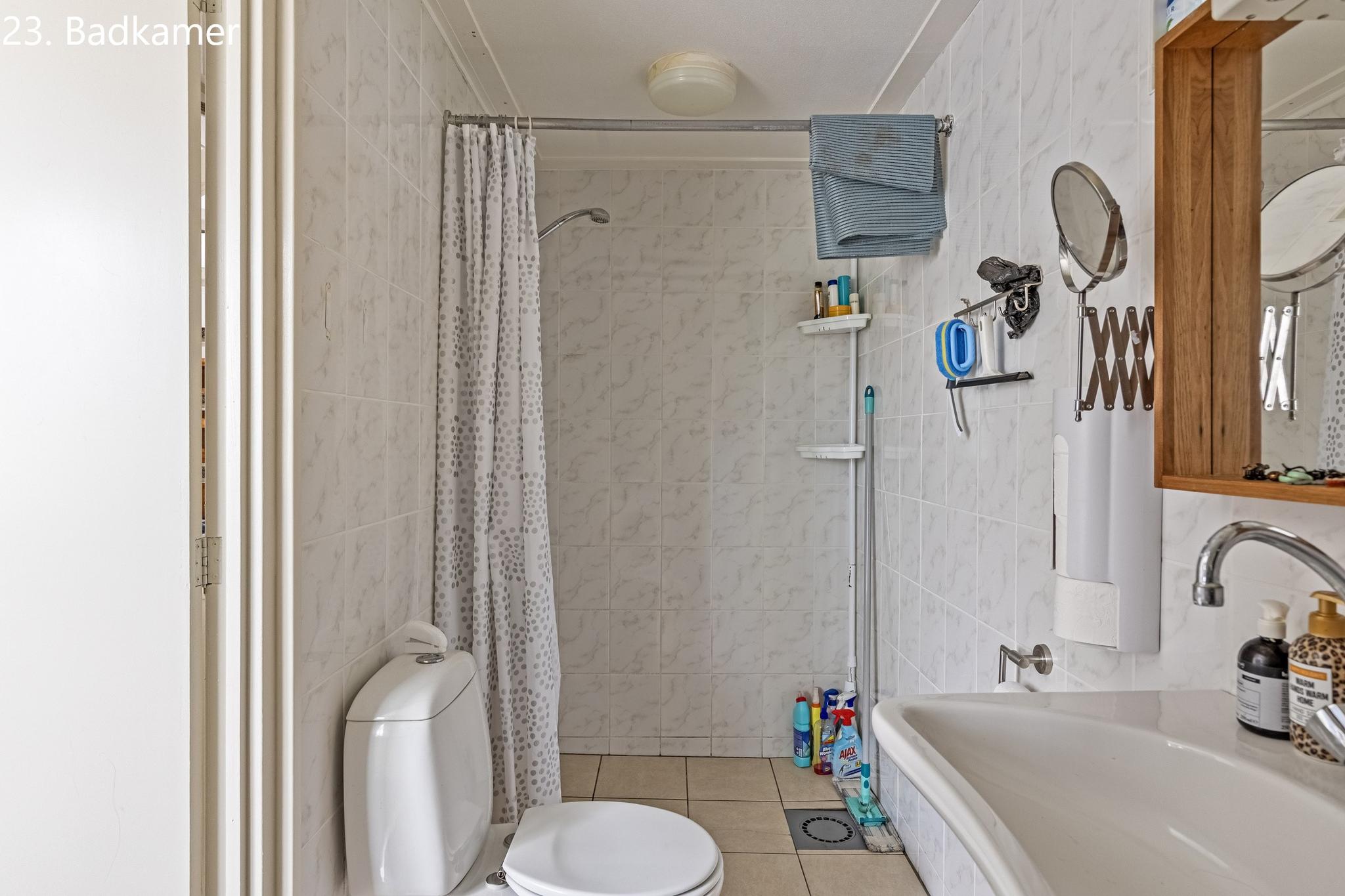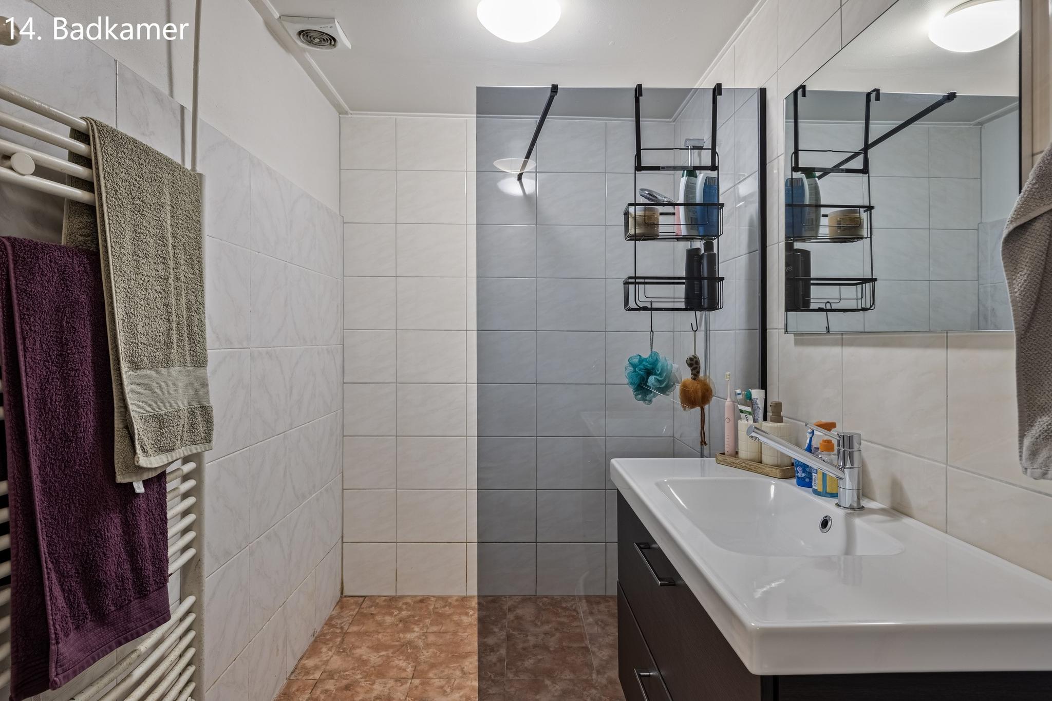 - Toilet, wastafel, wastafelmeubel, inloopdouche, douche en dubbele wastafel