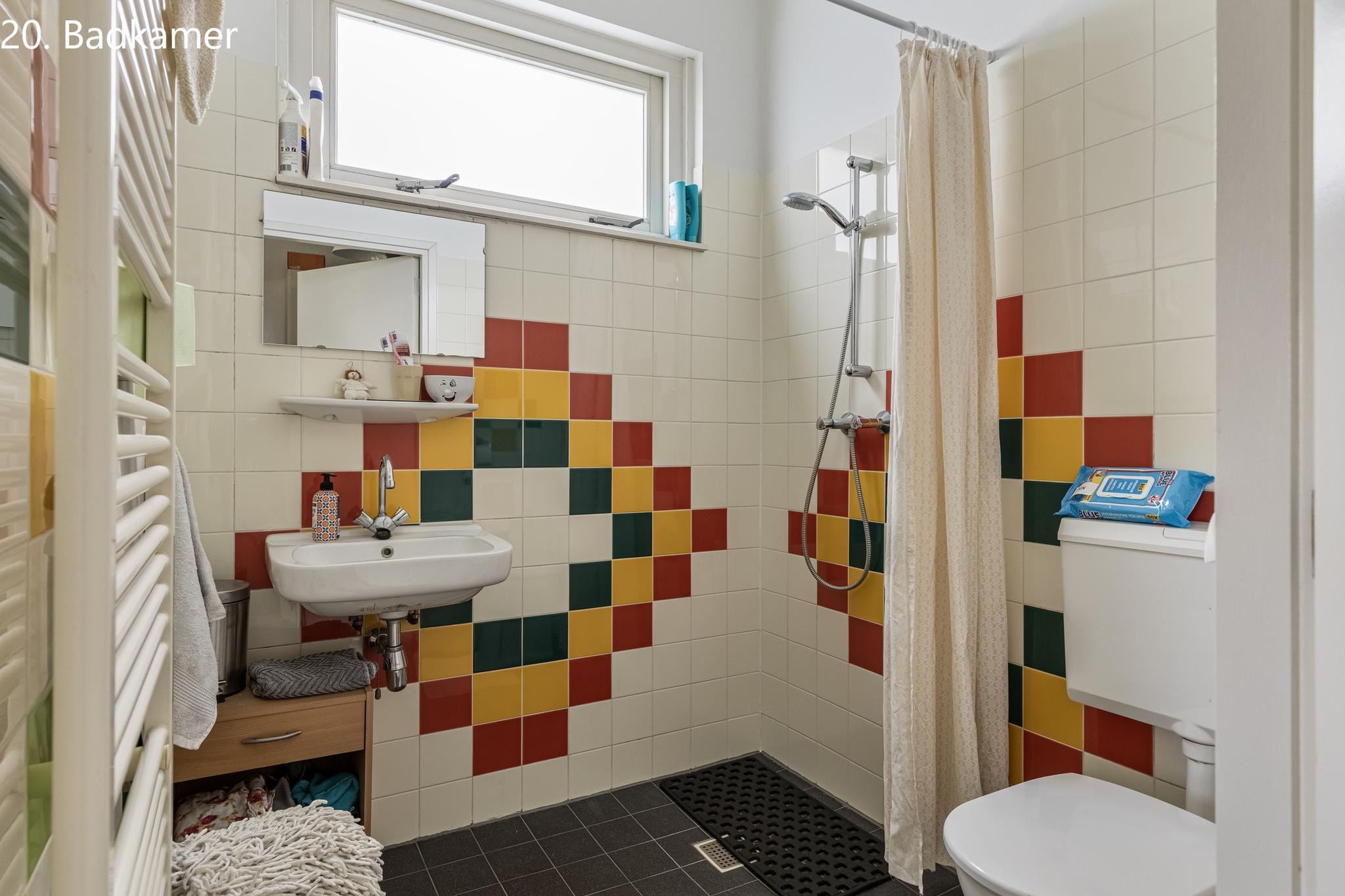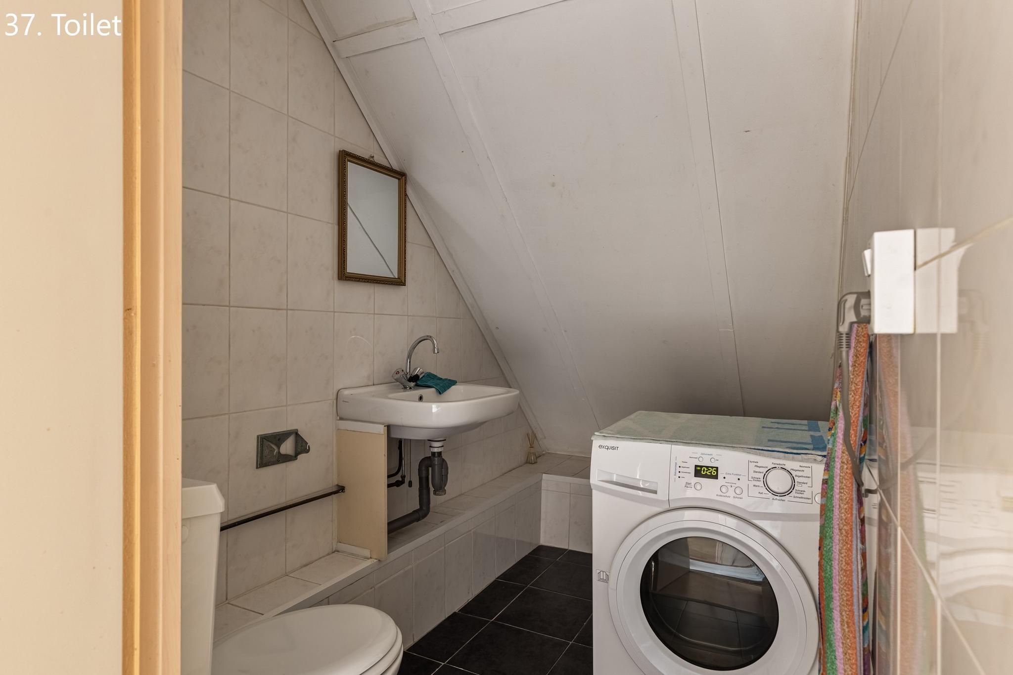 Via de trap betreden we een ruime overloop. Op deze overloop treffen we 3 ruime slaapkamers, een toilet, een badkamer en een meerdere bergkasten voor opslag. De slaapkamers zijn enorm ruim en geheel naar eigen wens te gebruiken. De badkamer is voorzien van een douche en op het toilet treffen we ook ruimte voor een wasmachine.
