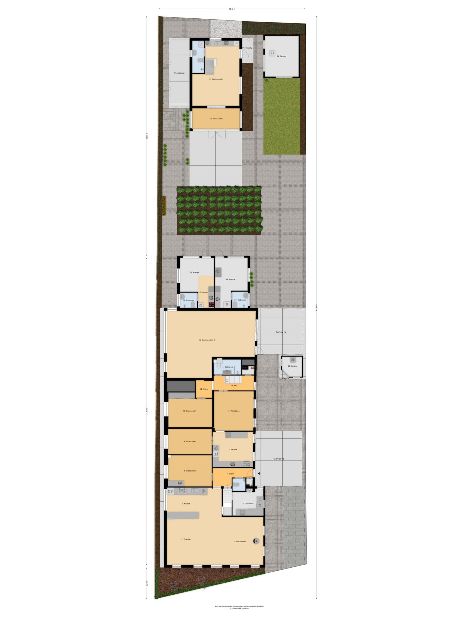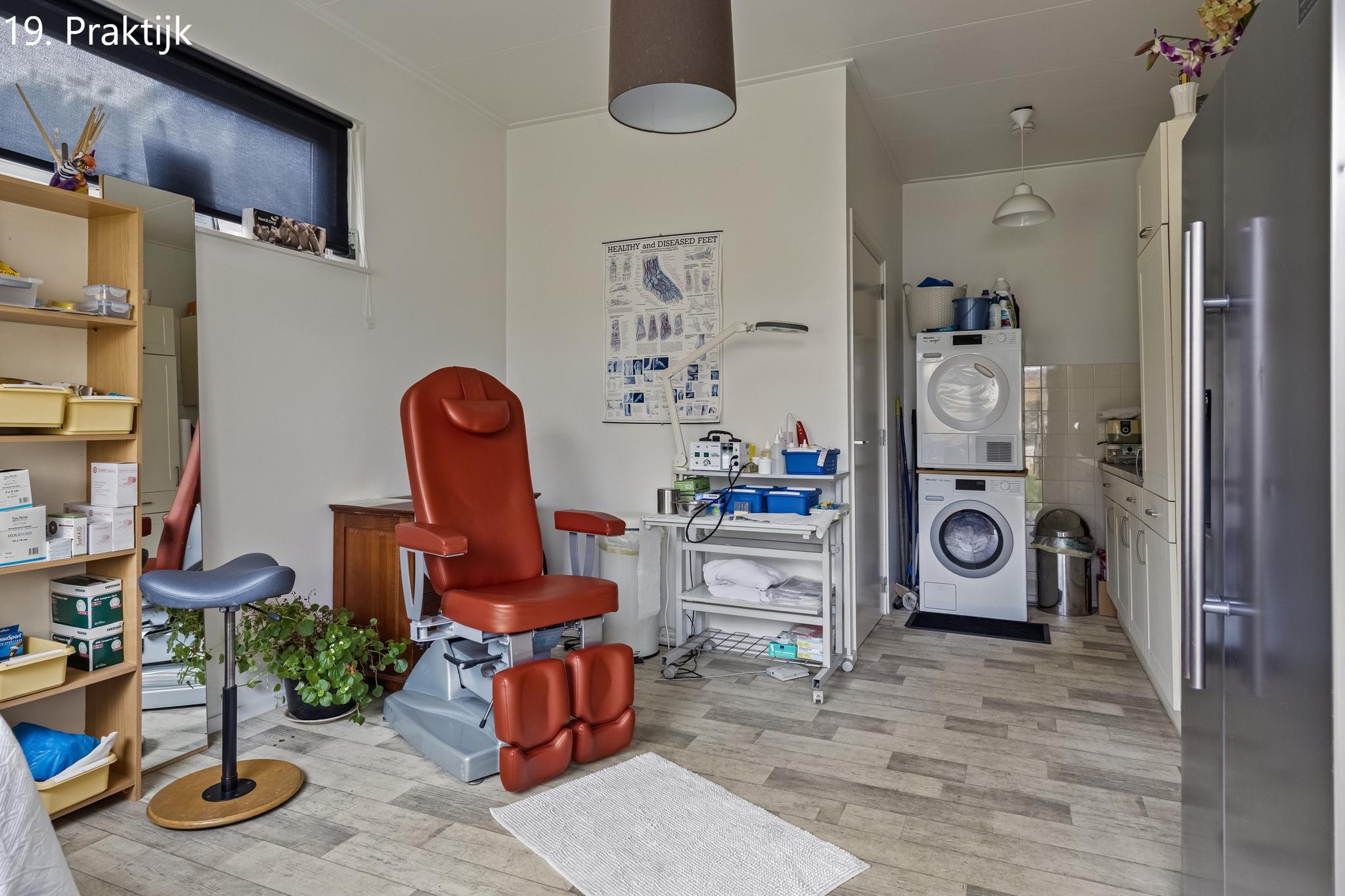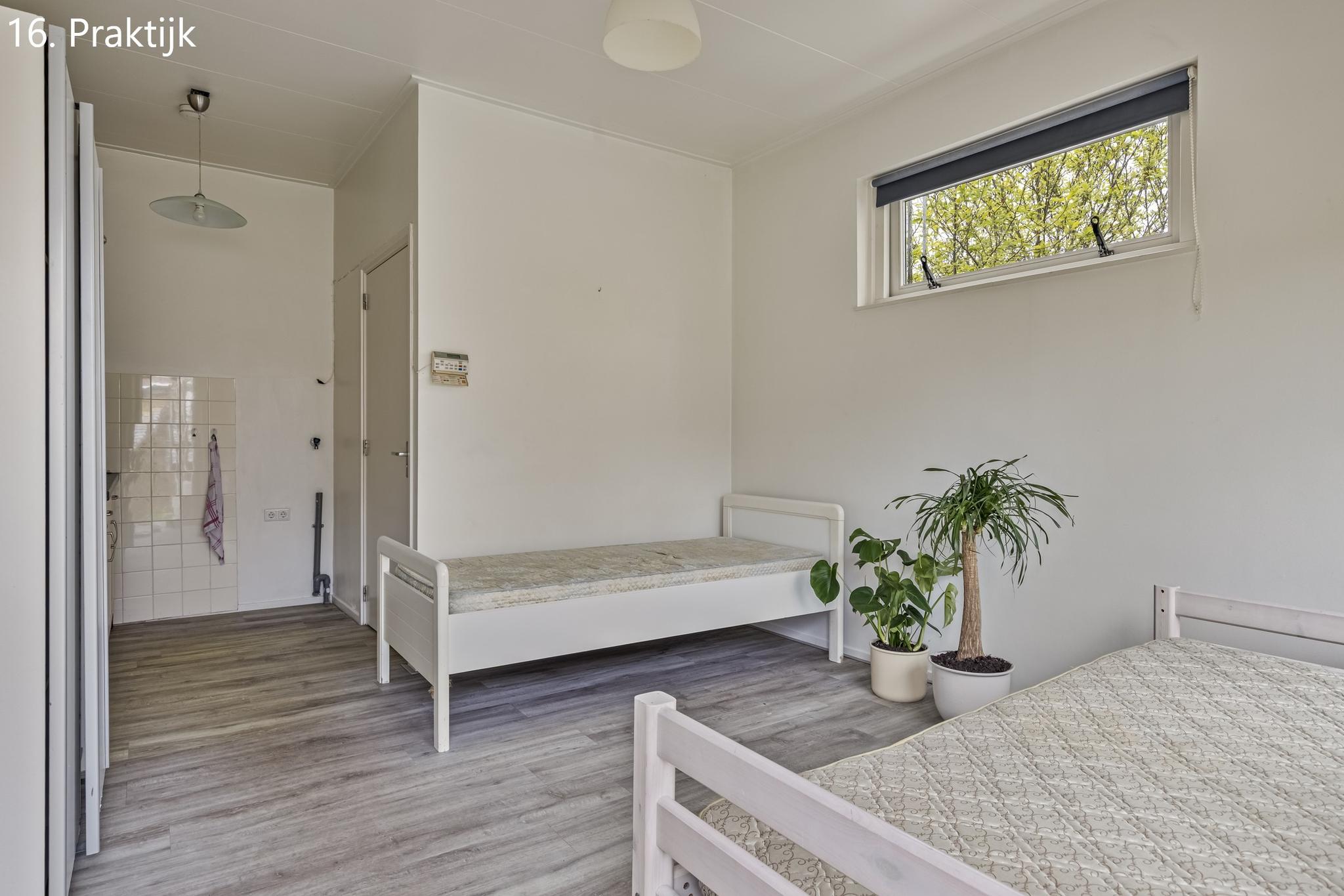 Aan de achterzijde treffen we nog twee ruimtes met ieder een eigen ingang. Ideaal voor mensen die graag een kantoor of praktijk aan huis willen beginnen. Beiden ruimtes zijn voorzien van een eigen keuken en badkamer, waardoor ook de mogelijkheid er is om deze als aparte studio's te gebruiken.