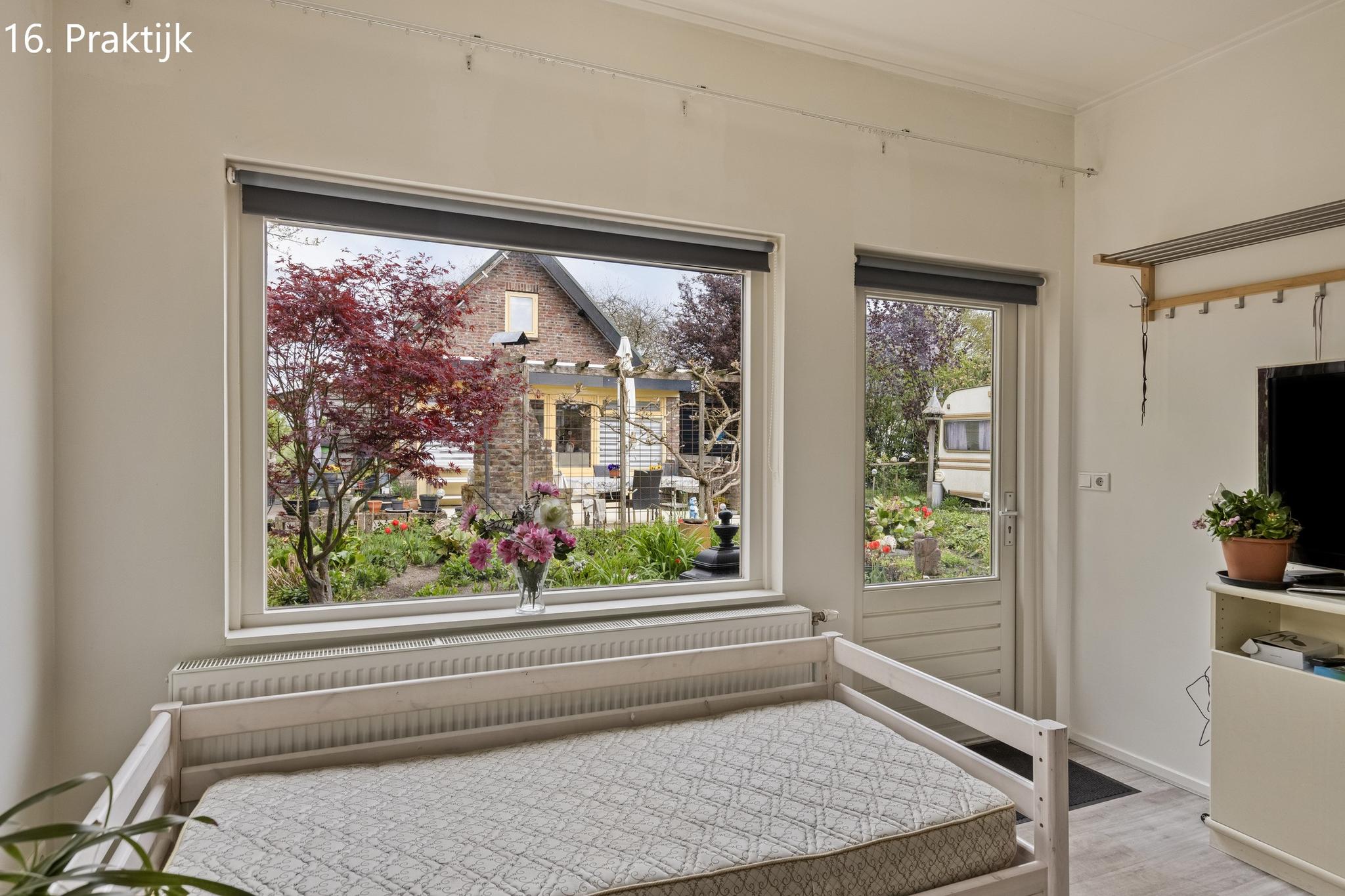 De ruime tuin op het oosten biedt volop zonlicht, privacy en rust. Hier is meer dan genoeg ruimte om jouw tuin volledig naar eigen smaak in te richten. Aan zowel de zijkant als de achterkant van het perceel is volop plek om te genieten van het buitenleven. Het grote bijgebouw in de tuin biedt talloze mogelijkheden. Denk aan mantelzorgwoning, een zelfstandige woonruimte voor oudere kinderen, of het perfect verblijf voor B&B-gasten. Het gastenverblijf is voorzien van een woonkamer, open keuken, badkamer en slaapkamer op de begane grond. Op de eerste verdueoubg is tevens nog een slaapkamer aanwezig. Daarnaast zijn er twee praktische bergingen aanwezig, ideaal voor het stallen van fietsen, tuingereedschap of als hobbyruimte.