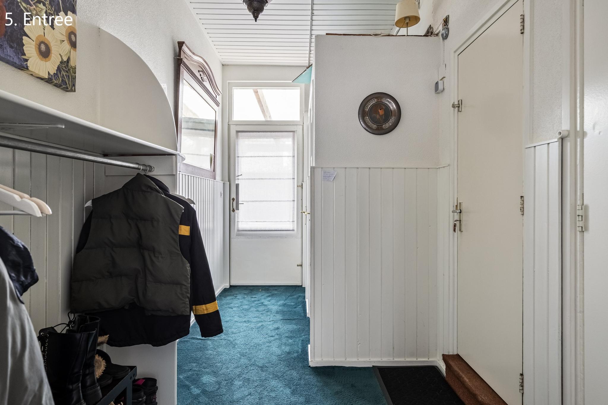 We betreden dit verblijf ook via de zijkant en komen terecht in de entreehal met toegang naar de eerste verdieping, slaapkamer, meterkast, badkamer en woonkamer. De woonkamer is ruim en heeft voldoende ruimte. De woonkamer biedt toegang naar de keuken. De keuken is voorzien van diverse inbouwapparatuur. Via de keuken is er ook nog een slaapkamer te bereiken. De badkamer is voorzien van een toilet, douche en wasbak.