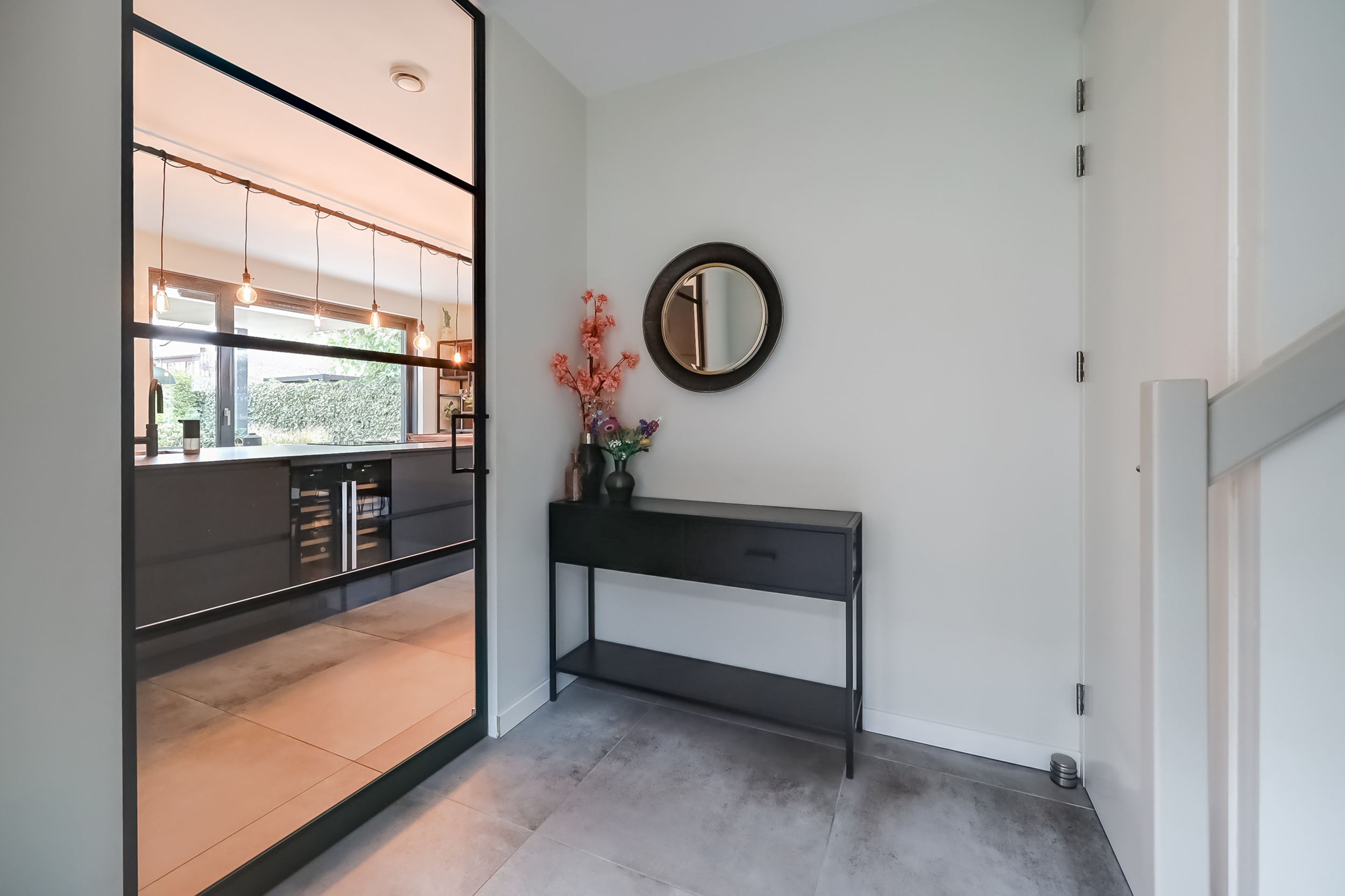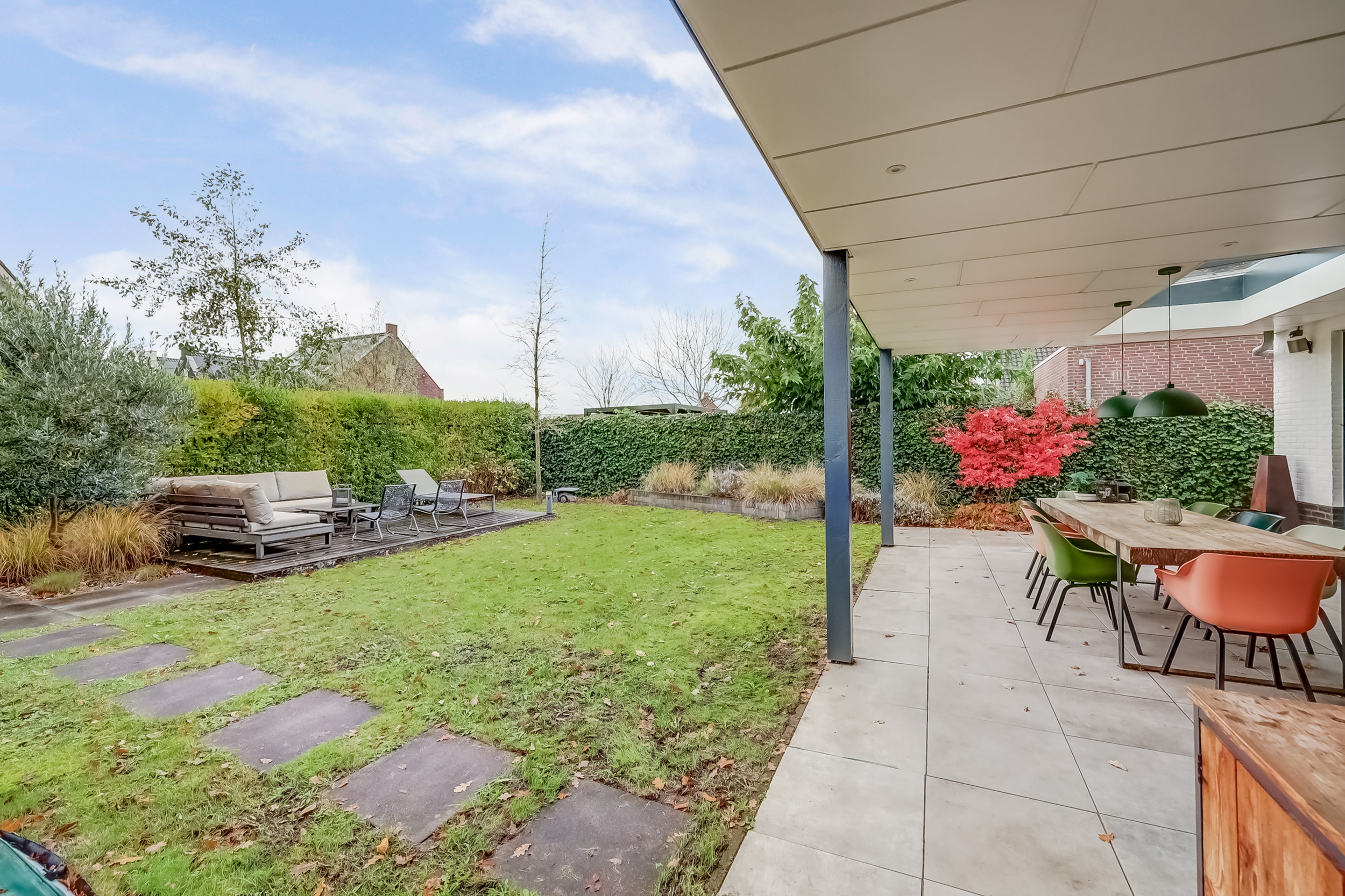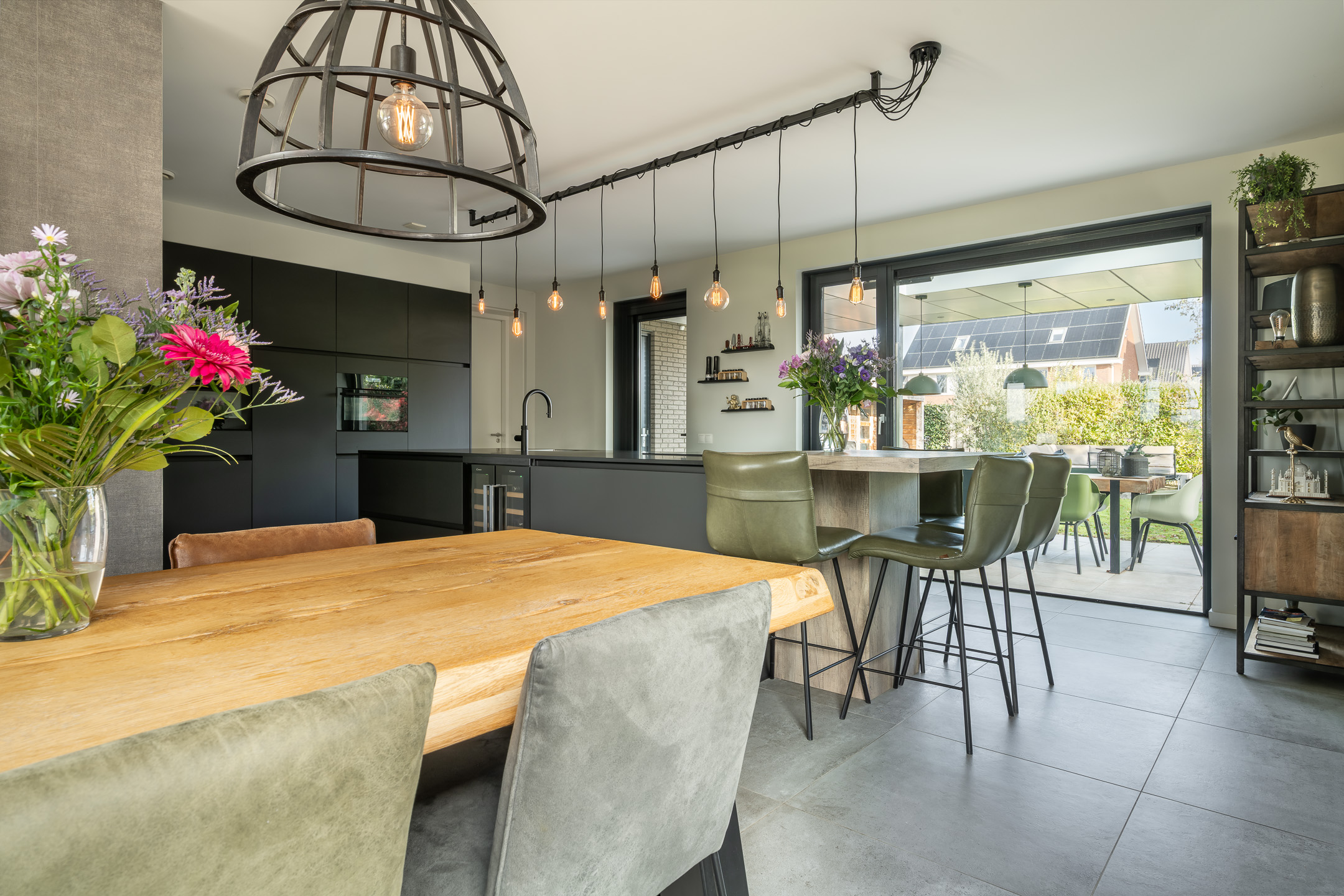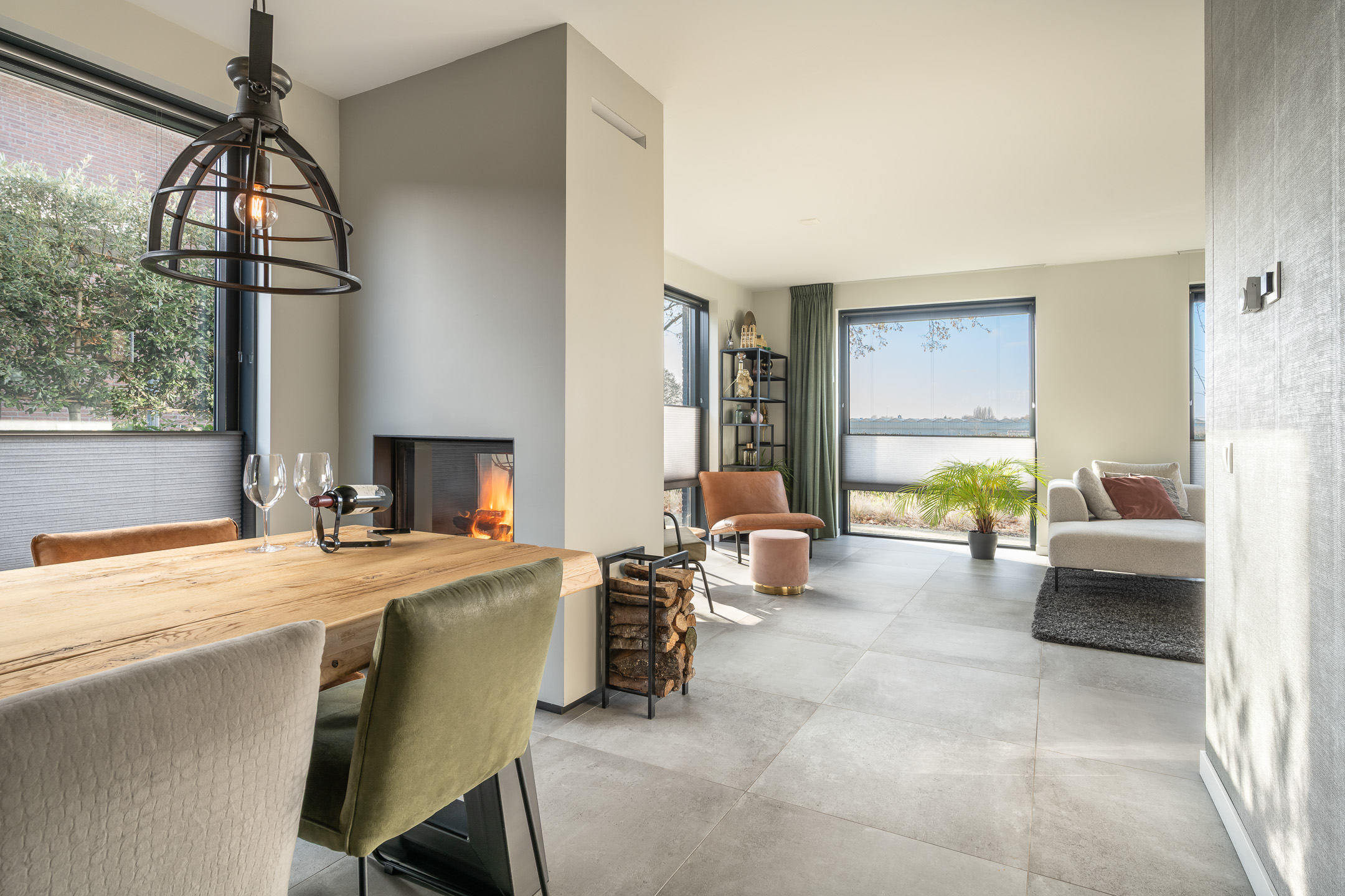 Parkeer je auto op de ruime oprit en betreed de woning via de nette entree. Vanuit de hal heb je toegang tot de meterkast, het toilet, de trap naar de eerste verdieping en de royale woonkeuken. De luxe woonkeuken uit 2019 beschikt over een kook- en spoeleiland en hoogwaardige inbouwapparatuur zoals een Bora inductiekookplaat met afzuiging, Quooker, stoomoven, combi-oven, vaatwasser, koelkast, vriezer en een wijnklimaatkast. De keuken staat in directe verbinding met de tuin en de fijne overkapping voorzien van lichtstraat, en loopt naadloos over in de lichte, sfeervolle woonkamer. Hier is volop ruimte voor een grote eettafel en een comfortabele zithoek. Dankzij de grote raampartijen valt er een overvloed aan daglicht binnen. De open haard zorgt voor extra warmte en gezelligheid op koelere dagen in zowel de keuken als de woonkamer. Vanuit de keuken is de volledig geïsoleerde garage/berging bereikbaar.