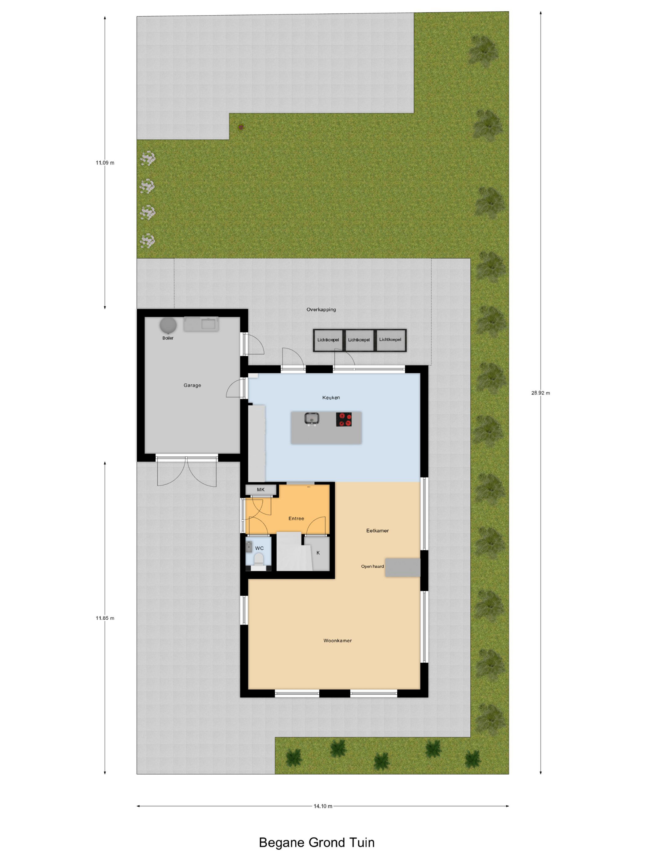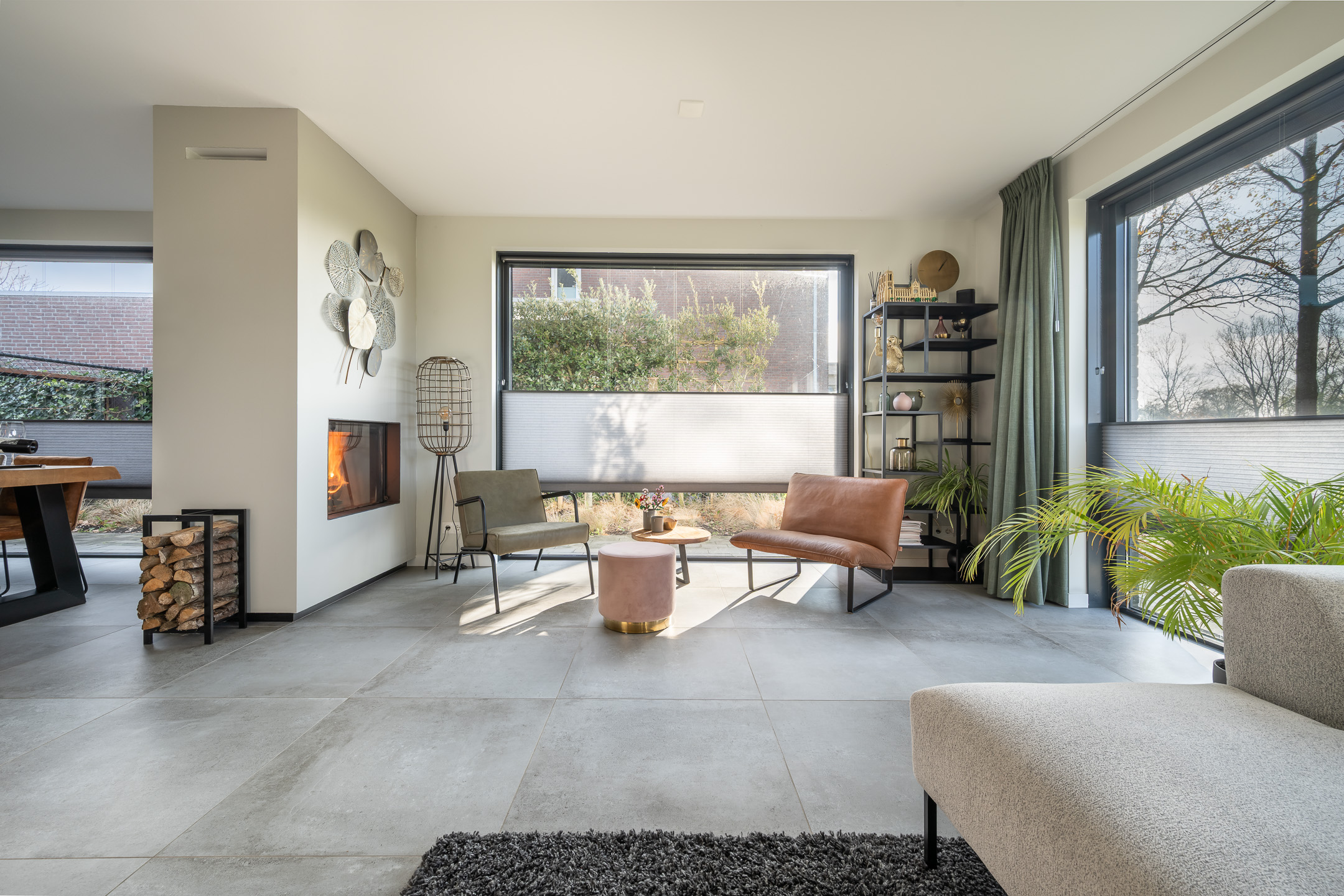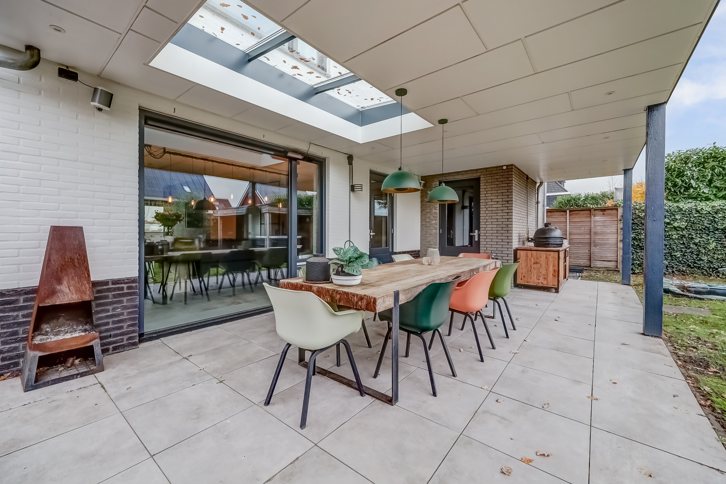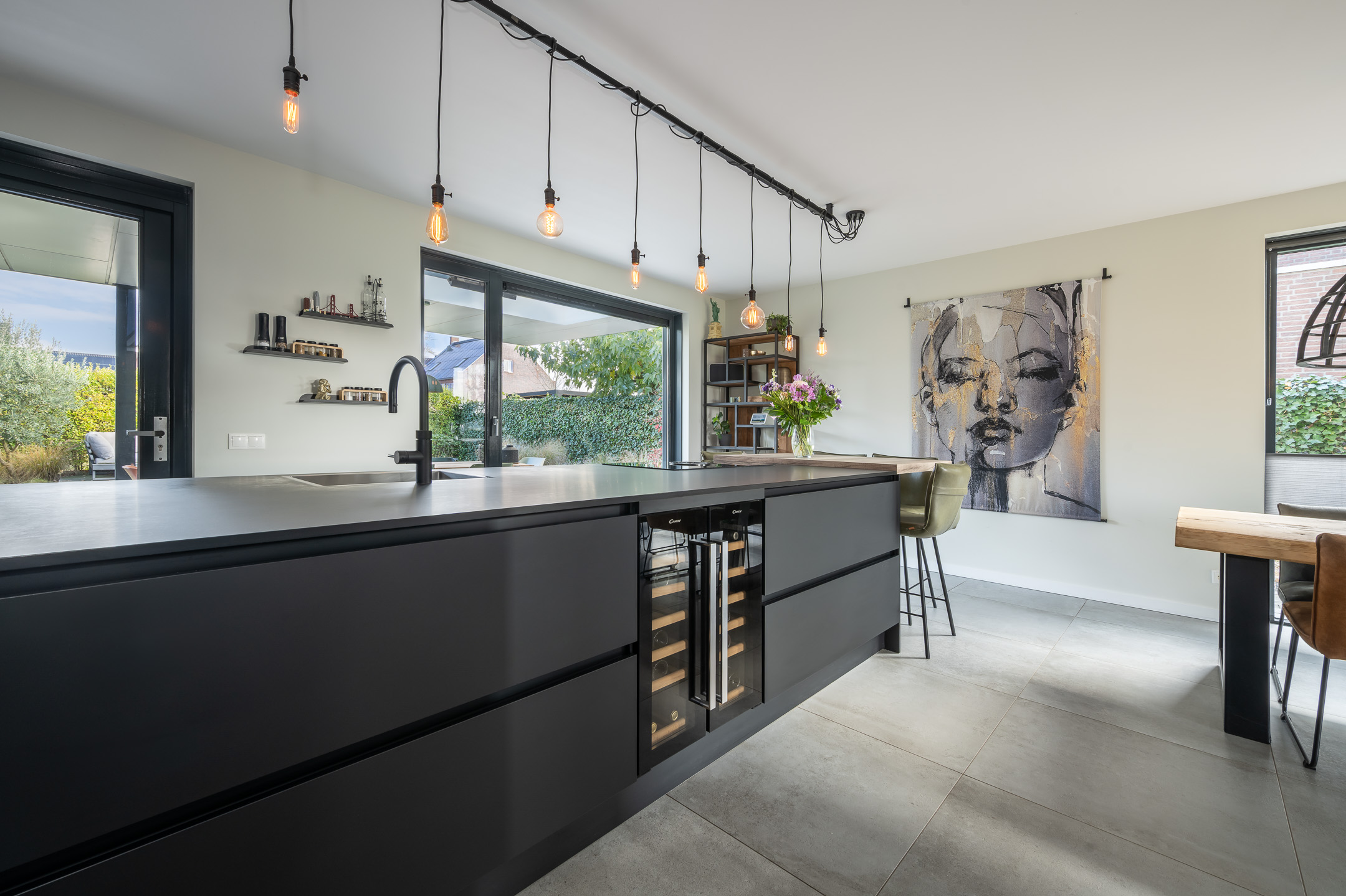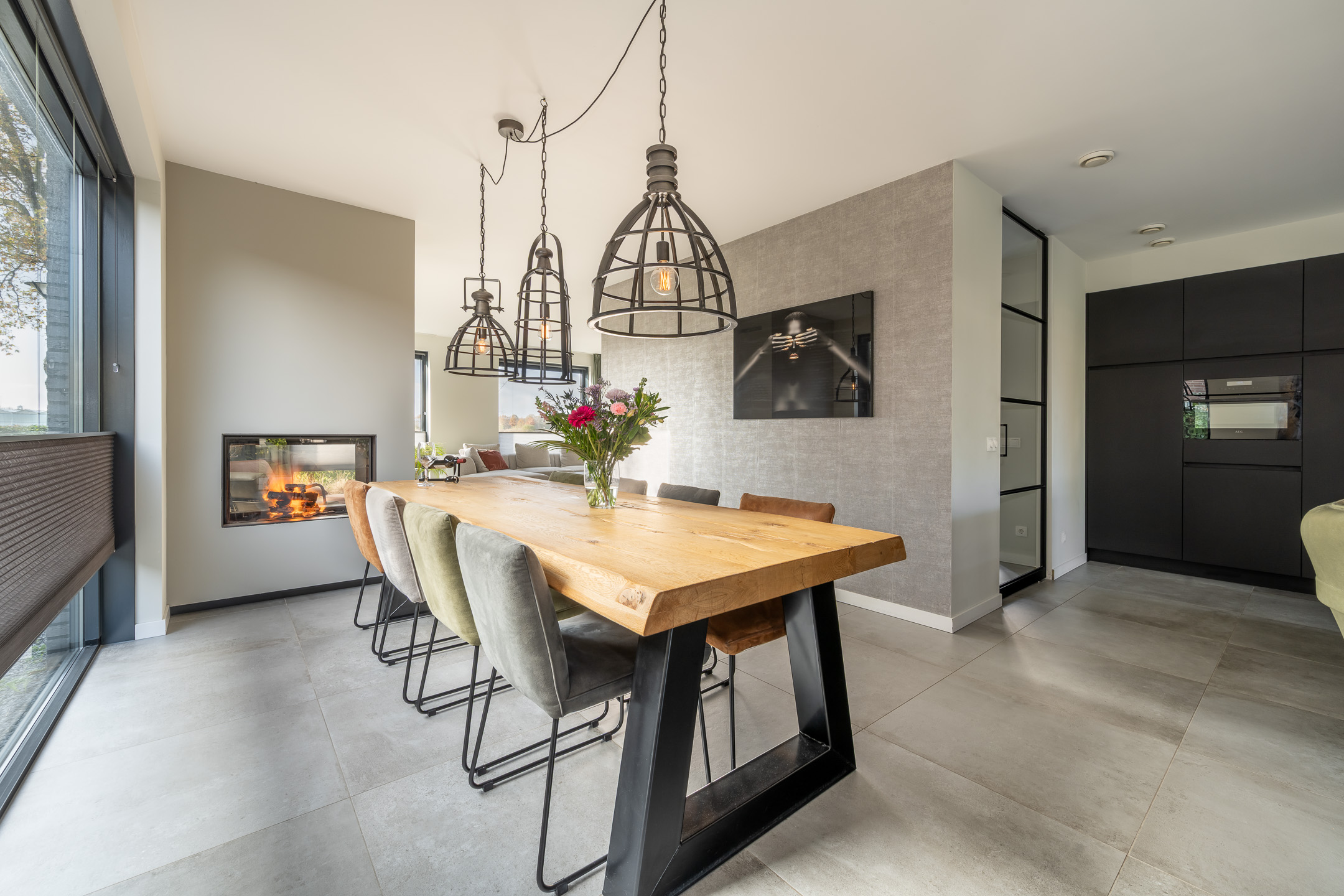 Parkeer je auto op de ruime oprit en betreed de woning via de nette entree. Vanuit de hal heb je toegang tot de meterkast, het toilet, de trap naar de eerste verdieping en de royale woonkeuken. De luxe woonkeuken uit 2019 beschikt over een kook- en spoeleiland en hoogwaardige inbouwapparatuur zoals een Bora inductiekookplaat met afzuiging, Quooker, stoomoven, combi-oven, vaatwasser, koelkast, vriezer en een wijnklimaatkast. De keuken staat in directe verbinding met de tuin en de fijne overkapping voorzien van lichtstraat, en loopt naadloos over in de lichte, sfeervolle woonkamer. Hier is volop ruimte voor een grote eettafel en een comfortabele zithoek. Dankzij de grote raampartijen valt er een overvloed aan daglicht binnen. De open haard zorgt voor extra warmte en gezelligheid op koelere dagen in zowel de keuken als de woonkamer. Vanuit de keuken is de volledig geïsoleerde garage/berging bereikbaar.