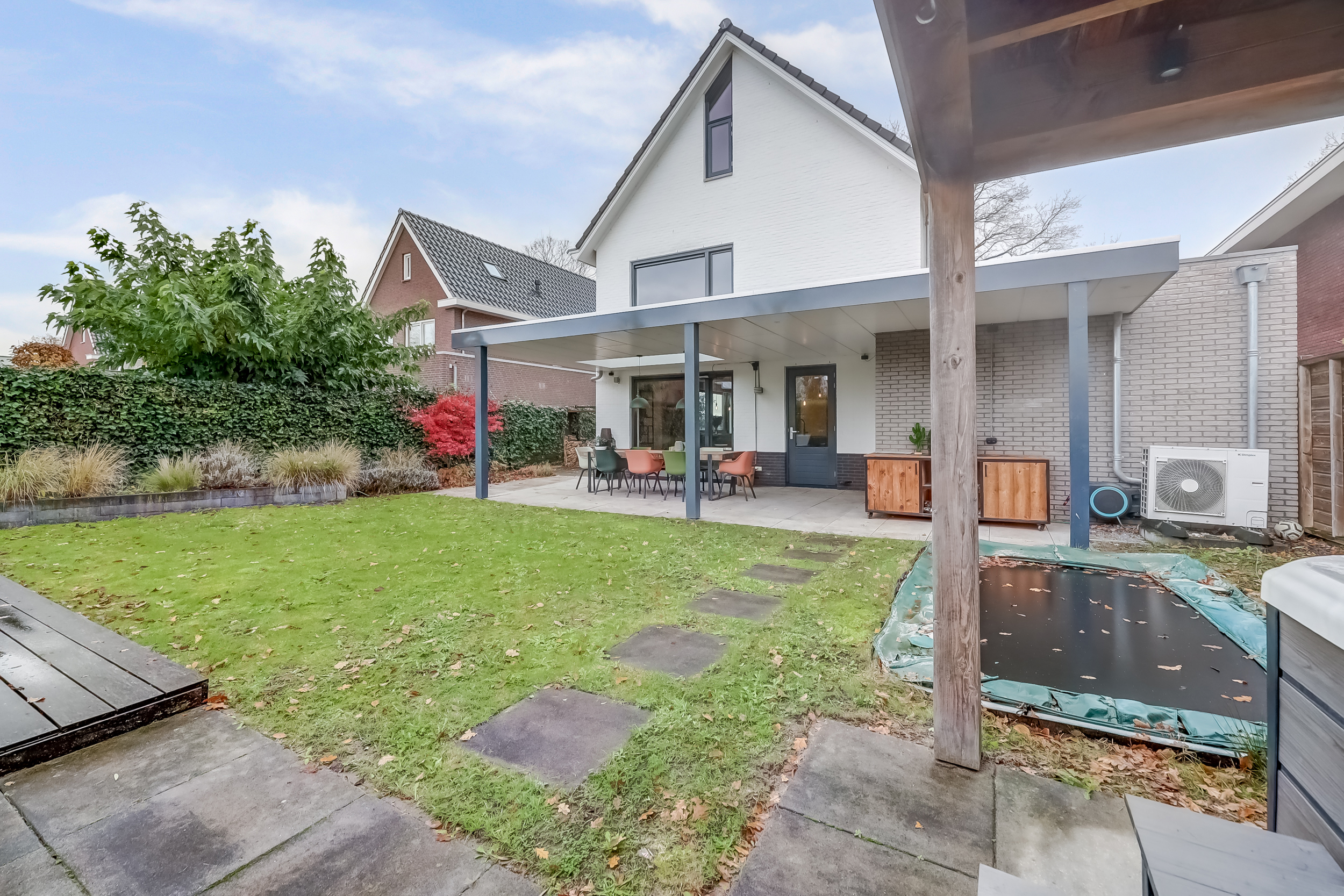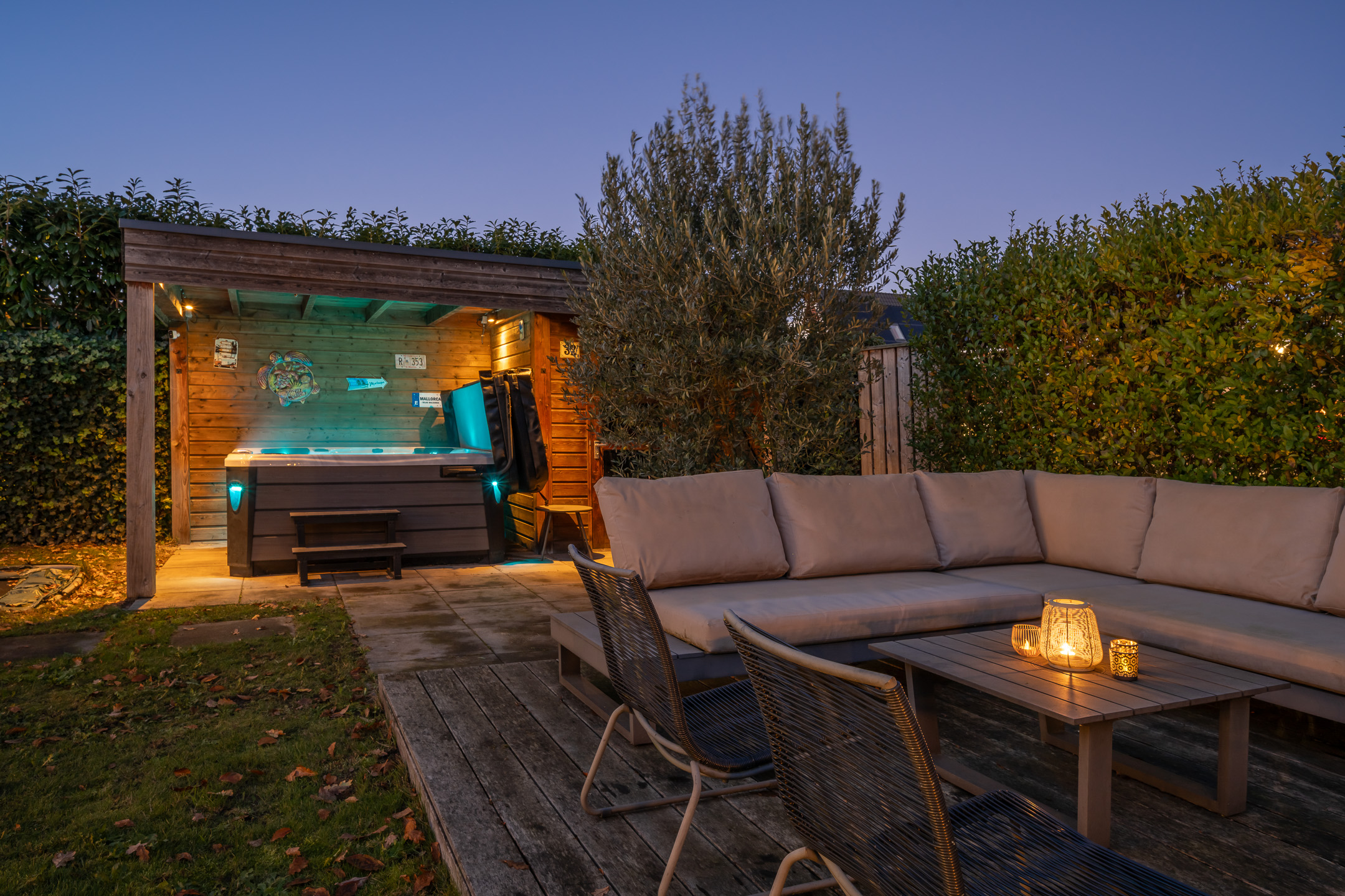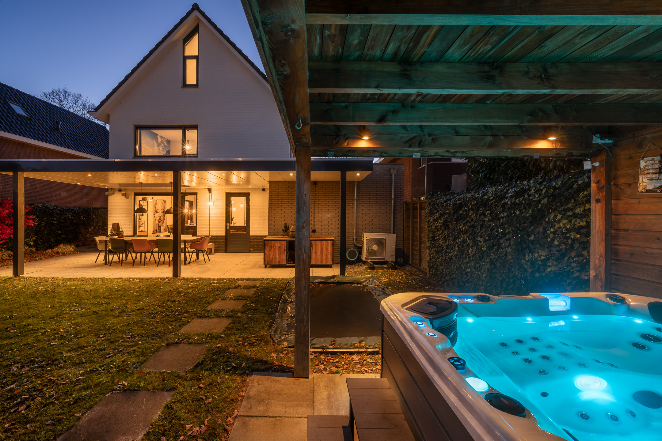 De tuin is heerlijk gelegen op het oosten en biedt diverse gezellige zitplekken in zowel zon als schaduw. Onder de grote overkapping kun je het hele jaar door beschut genieten van het buitenleven. De tweede overkapping naast de berging achterin de tuin is bovendien perfect geschikt voor een jacuzzi. De berging zelf biedt ruimte om tuingereedschap en andere spullen netjes op te bergen. Tot slot heeft de tuin een achterom langs het huis en achter het huis.