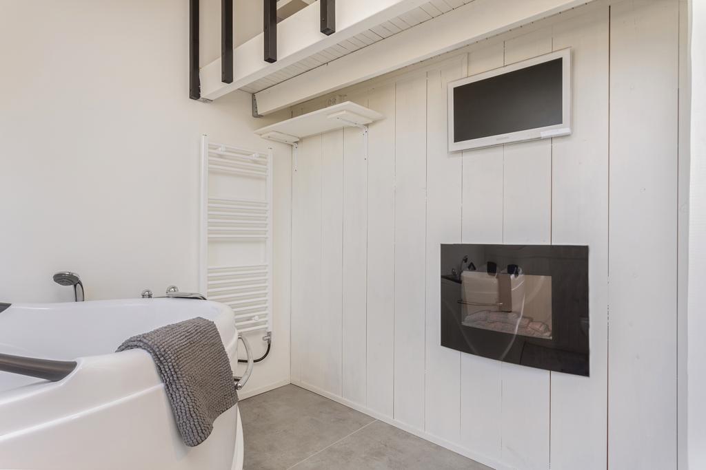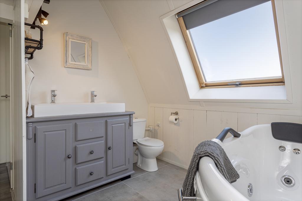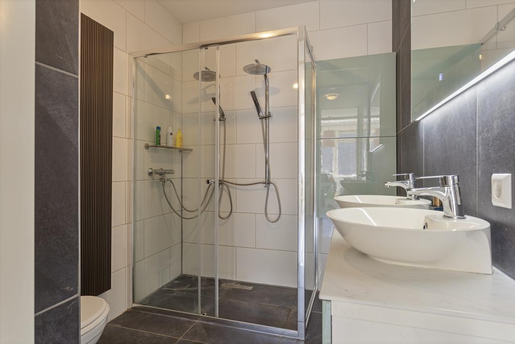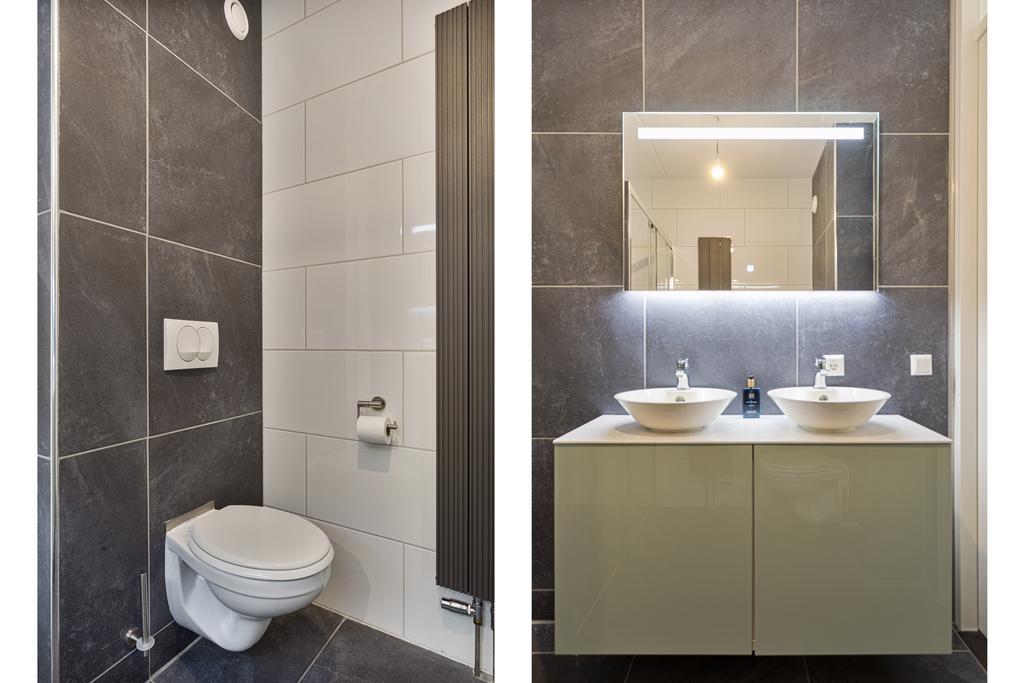 - Toilet, dubbele wastafel, inloopdouche en ligbad