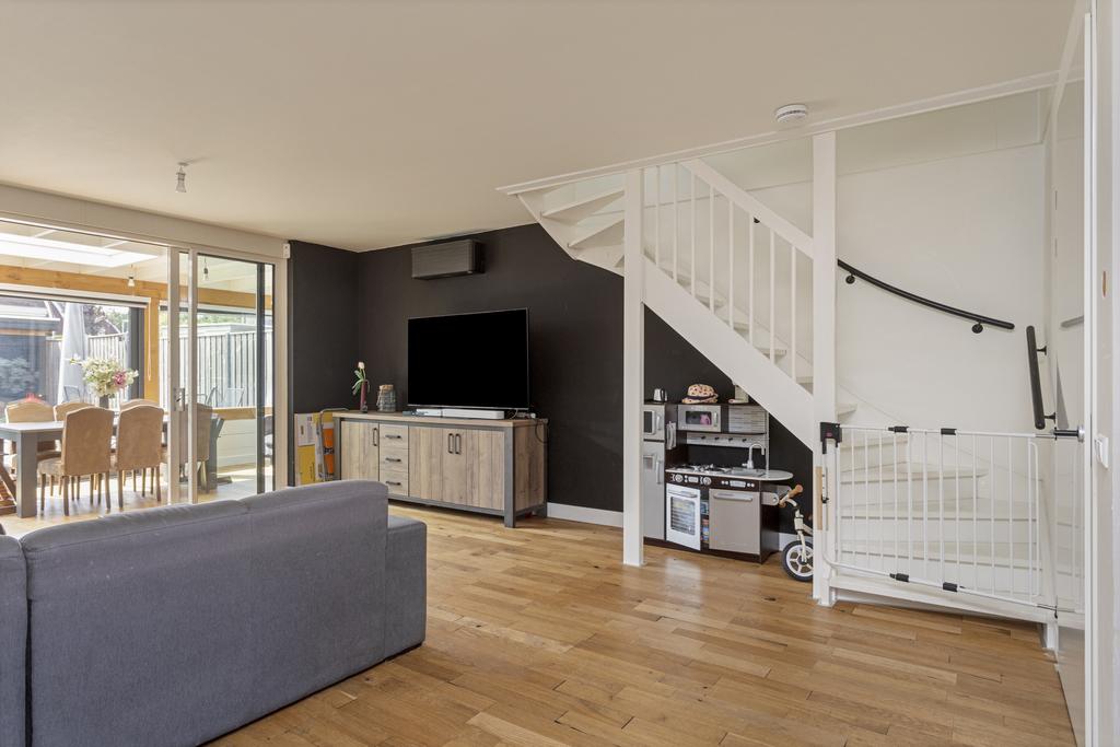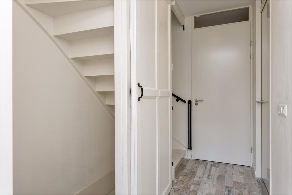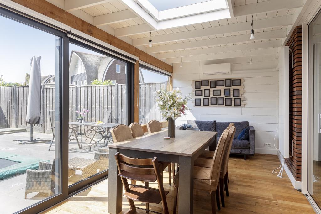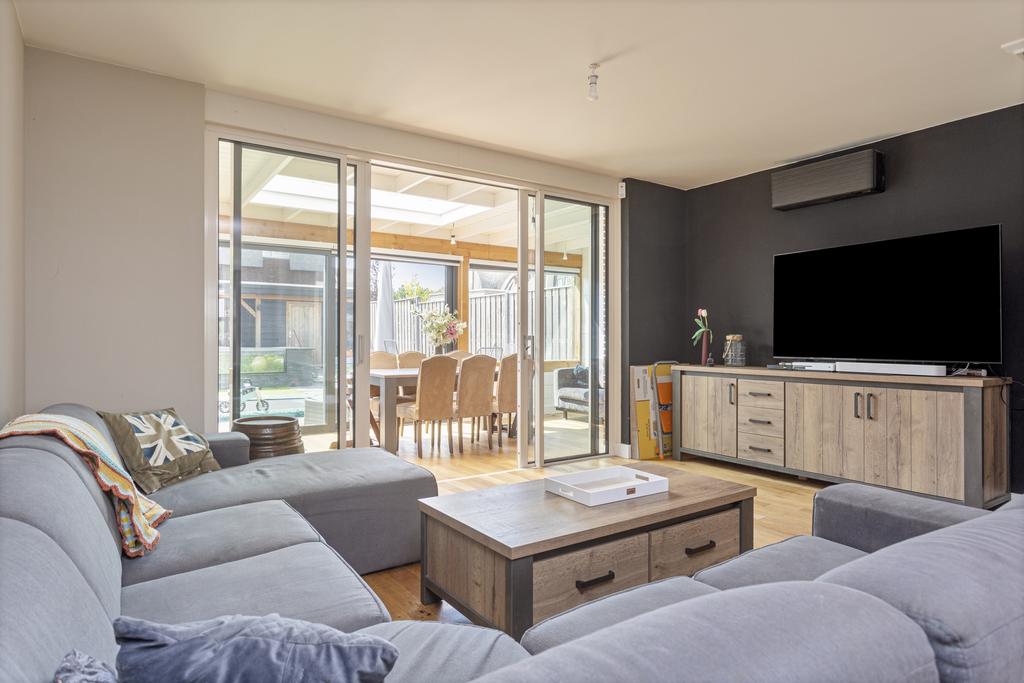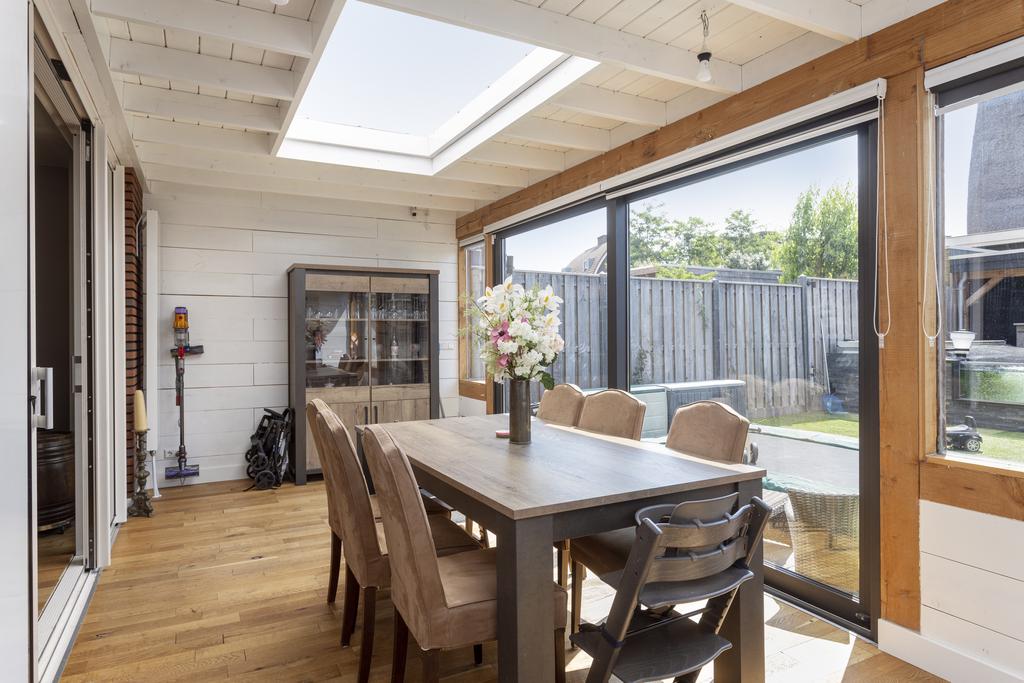 Doordat de woning is uitgebouwd aan de achterzijde waar de serre is gecreëerd, biedt de leefruimte op de begane grond veel verschillende mogelijkheden om naar eigen wens in te delen. Door grote schuifdeuren is de serre volledig bij de woonkamer te betrekken. De woonkamer is voorzien van een houten eiken houtvloer.