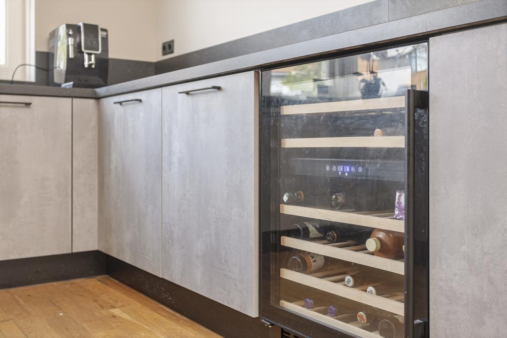Vanuit de woonkamer is de keuken (2022) te bereiken, de keuken is voorzien van een eiken houten parket vloer met vloerverwarming en is zeer luxe afgewerkt. De keuken is voorzien van diverse inbouwapparatuur, te weten: koelkast, vriezer, vaatwasser, combi oven, oven, inductiekookplaat met afzuigkap (Bora) en een wijnklimaatkast.