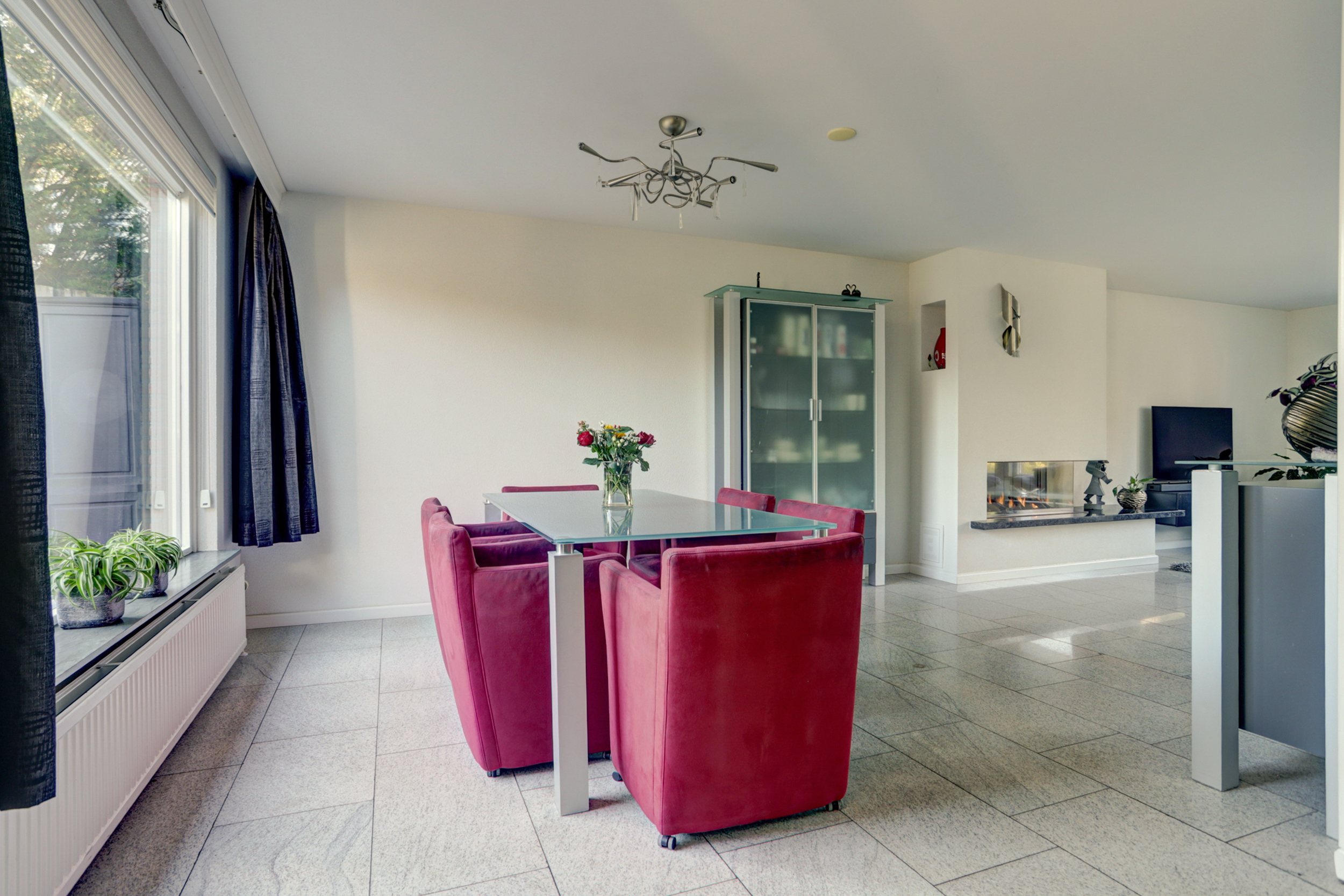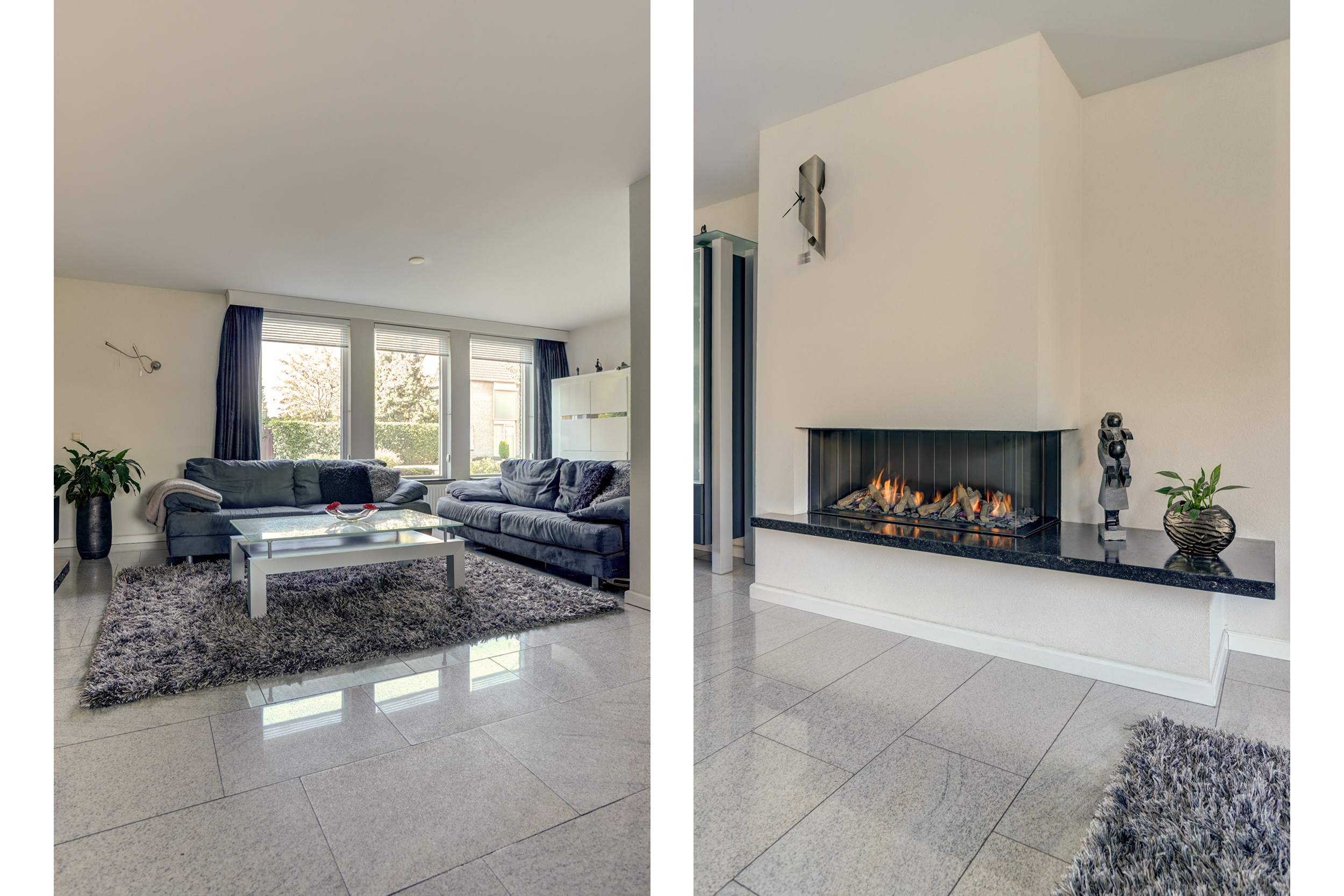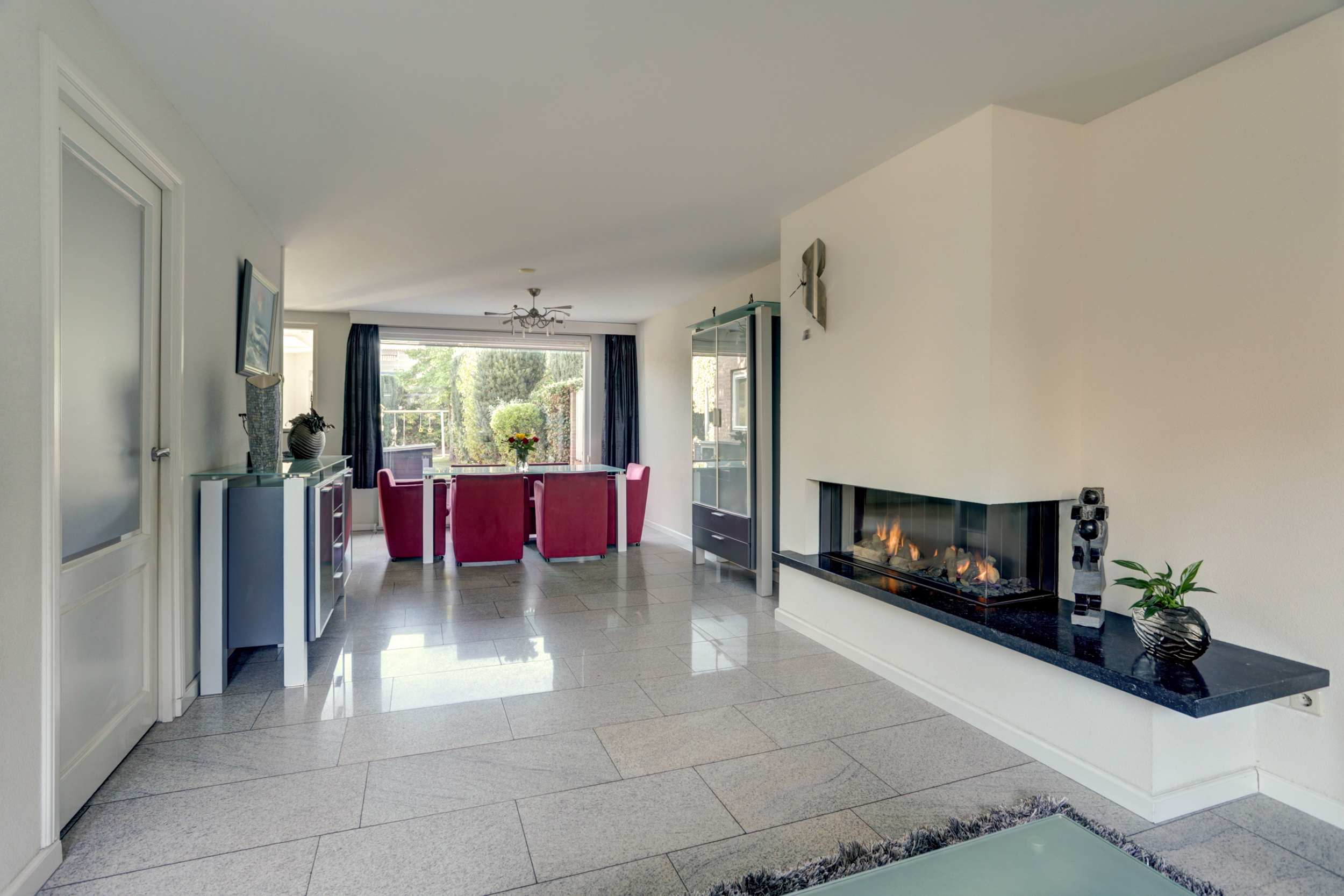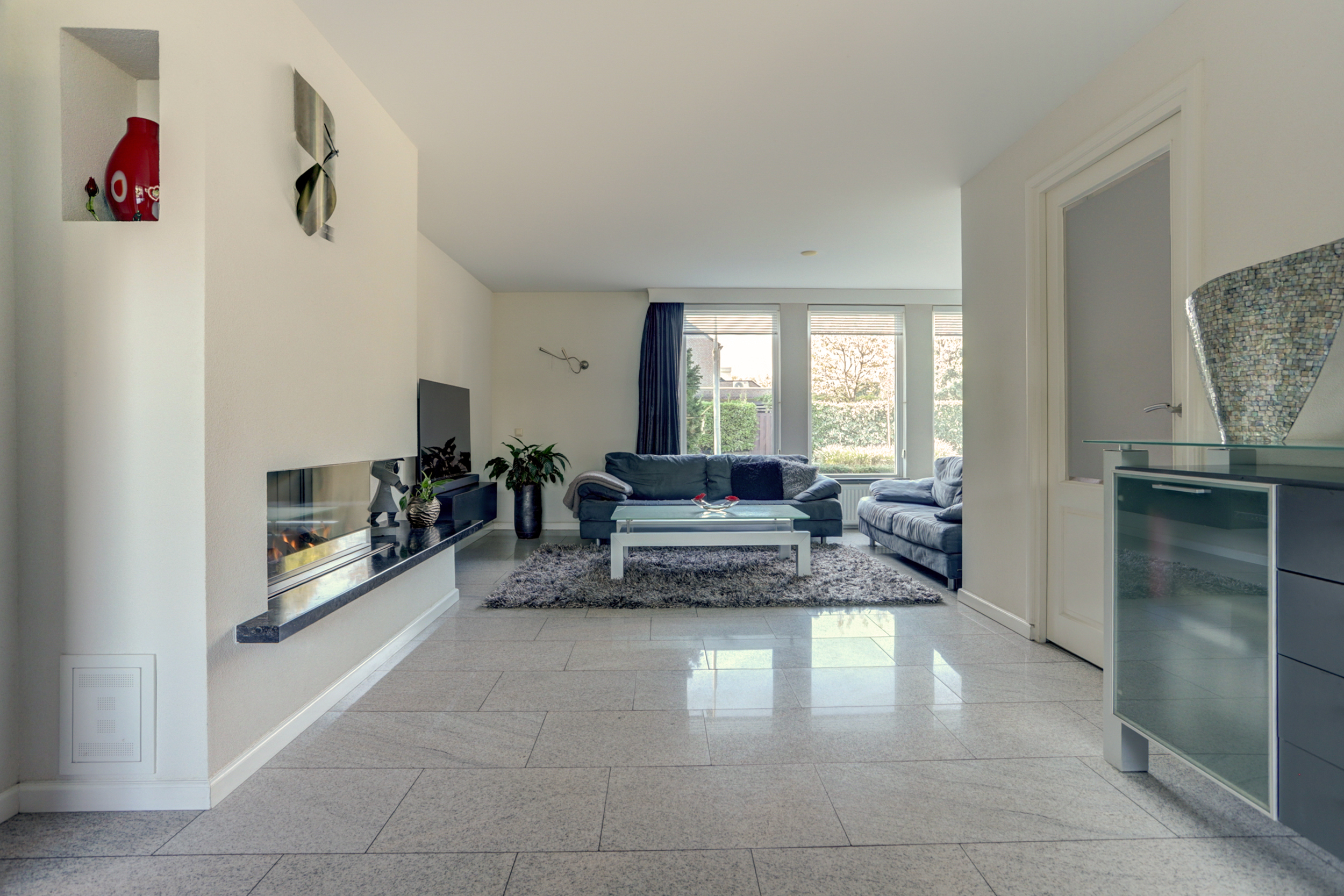 Bij binnenkomst valt direct op hoeveel ruimte en licht deze woning te bieden heeft. De royale woonkamer strekt zich uit over de gehele lengte van de woning en is op slimme wijze in te delen. Aan de voorzijde bevindt zich de gezellige zitkamer, ideaal om tot rust te komen met een grote hoekbank, comfortabele stoelen en een tv-meubel. Aan de achterzijde is ruimte voor een sfeervolle eetkamer, waar met gemak een grote eettafel met stoelen past — perfect voor lange avonden tafelen met familie of vrienden. De eetkamer grenst direct aan de open keuken, die is voorzien van volop kastruimte en inbouwapparatuur, waaronder een combi-oven, koelkast, inductiekookplaat, afzuigkap, vaatwasser en spoelbak. Vanuit de keuken is er toegang tot een praktische bijkeuken, die niet alleen extra bergruimte biedt, maar ook toegang geeft tot de achtertuin, de aangebouwde garage én een extra kamer. Deze extra kamer op de begane grond biedt tal van mogelijkheden: gebruik het als werkkamer, hobbyruimte, speelkamer of zelfs als slaapkamer voor wie gelijkvloers wil wonen. Vanuit de entreehal zijn verder het separate toilet met fonteintje en de meterkast bereikbaar. De gehele benedenverdieping is voorzien van een fraaie granieten vloer met comfortabele vloerverwarming.