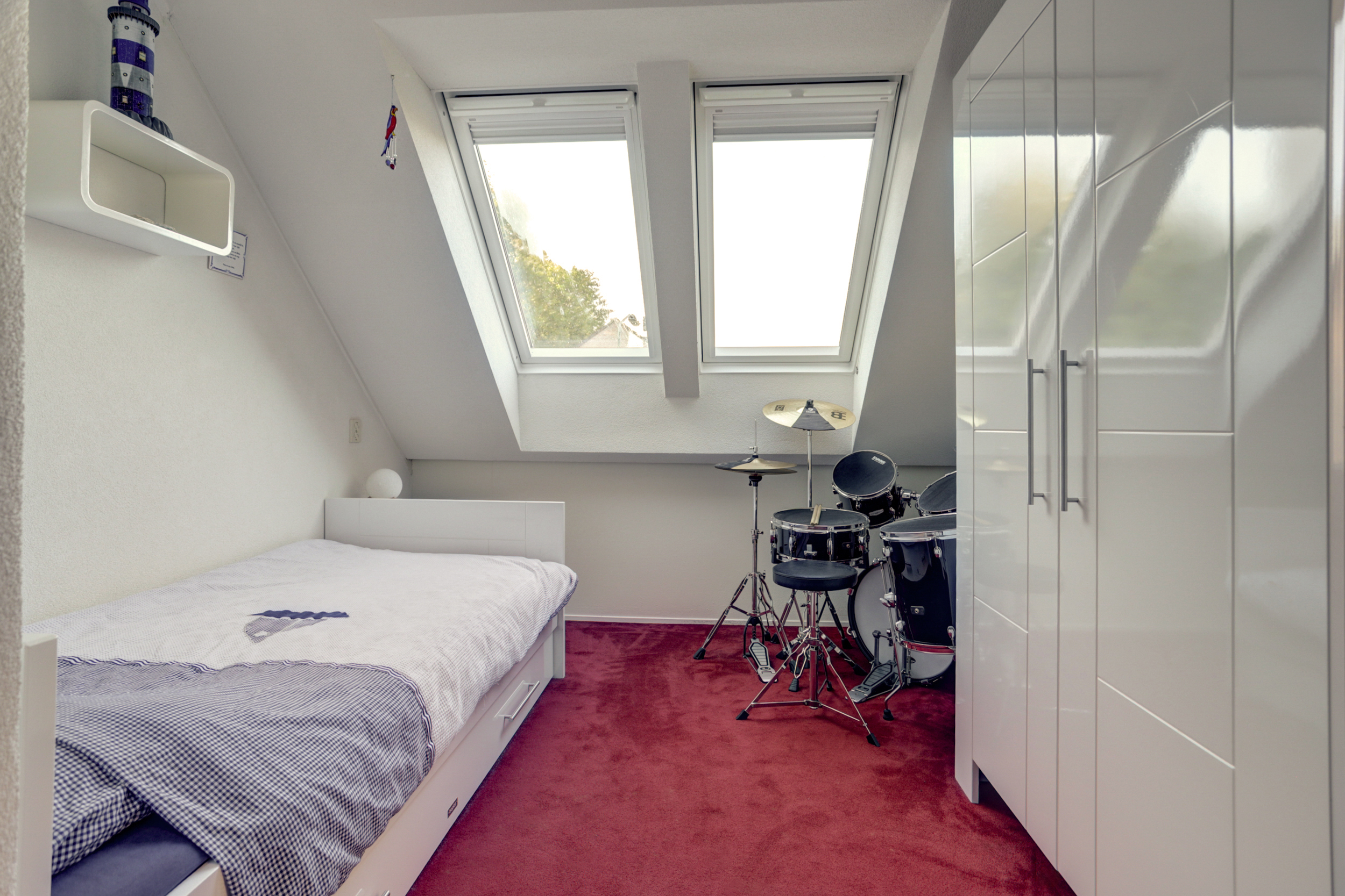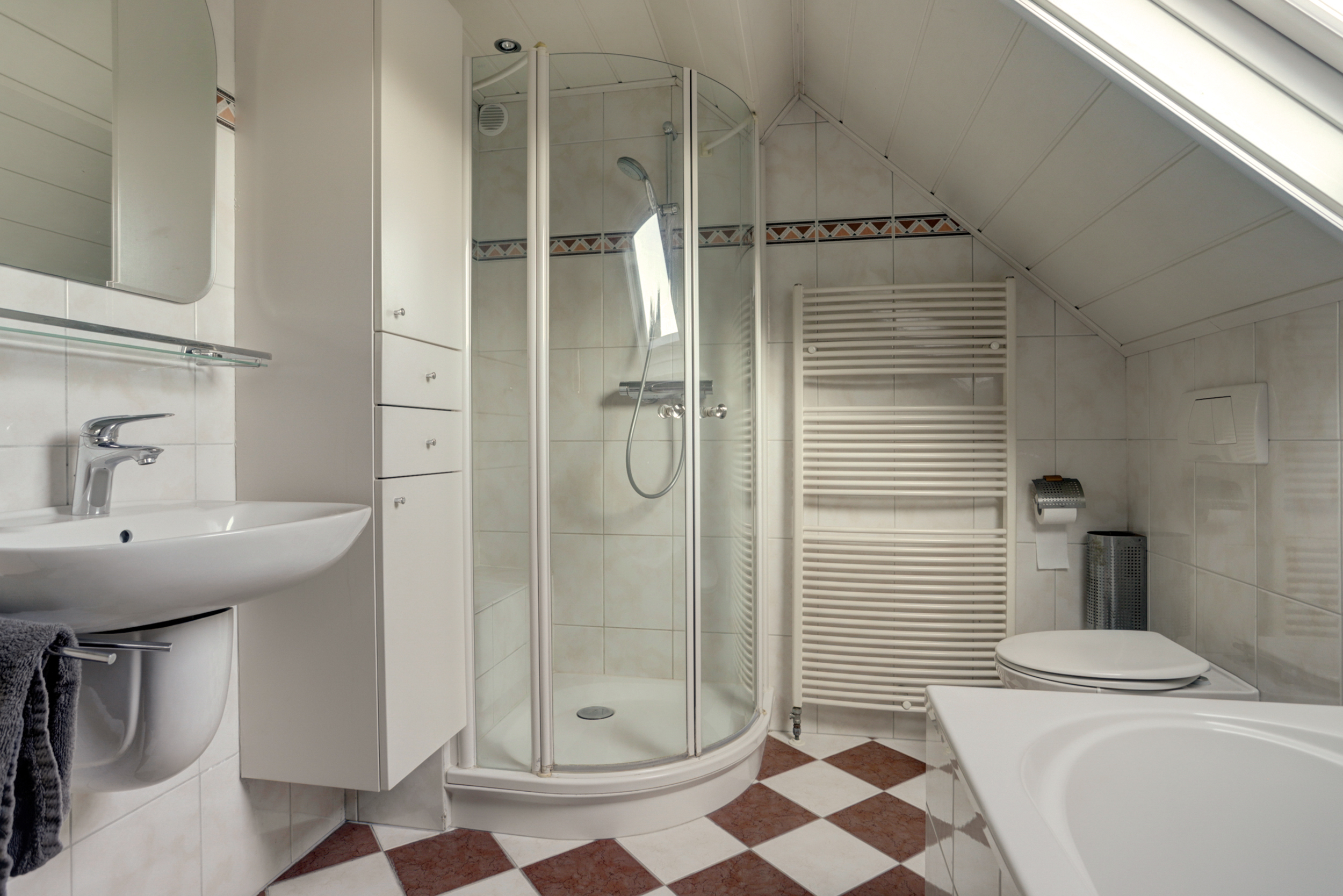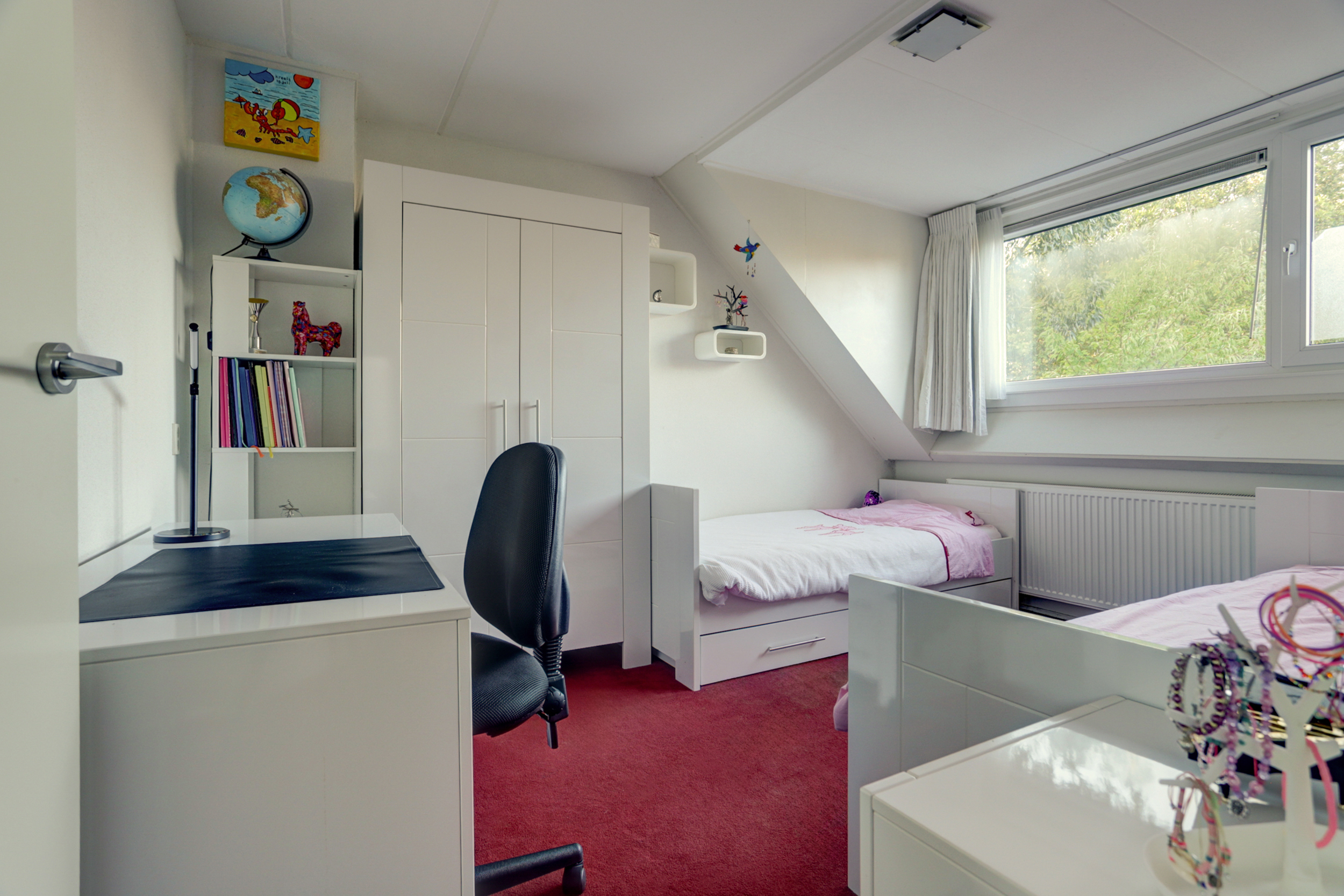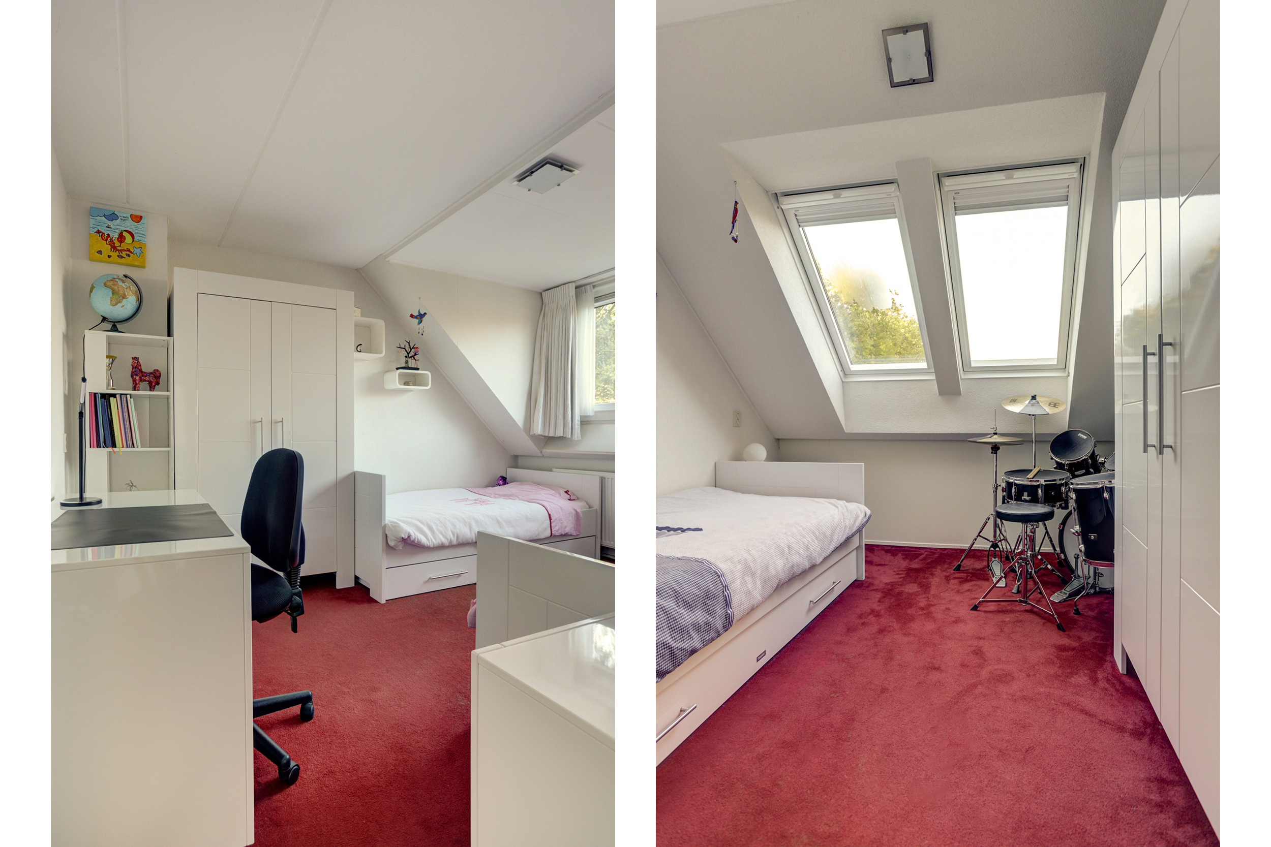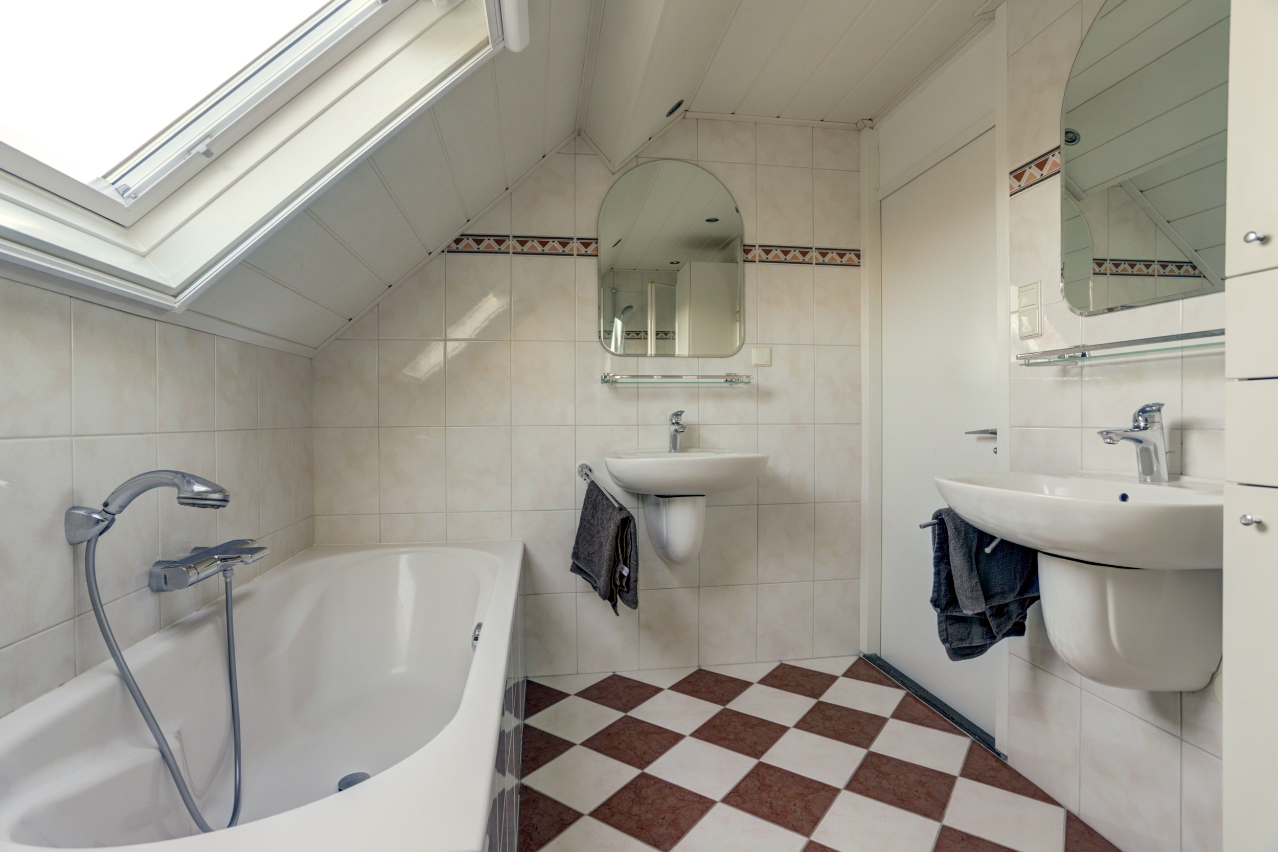 Aan zowel de voor- als achterzijde bevindt zich een ruime slaapkamer. Beiden kunnen uitstekend als hoofdslaapkamer dienen. Dankzij de dakkapellen profiteren deze kamers van extra ruimte en veel daglicht. De derde slaapkamer is eveneens praktisch in te delen en kan perfect worden gebruikt als kinderkamer, werkkamer of royale kastenkamer. Deze kamer is voorzien van twee grote Velux dakramen inclusief zonwering. De badkamer is groot van formaat en beschikt over een prettig Velux dakraam, waardoor de ruimte heerlijk licht en goed te ventileren is. Het sanitair bestaat uit een ligbad, aparte douche, twee wastafels, toilet en een designradiator. Bovendien is er een handig wastafelkastje aanwezig voor extra opbergruimte.