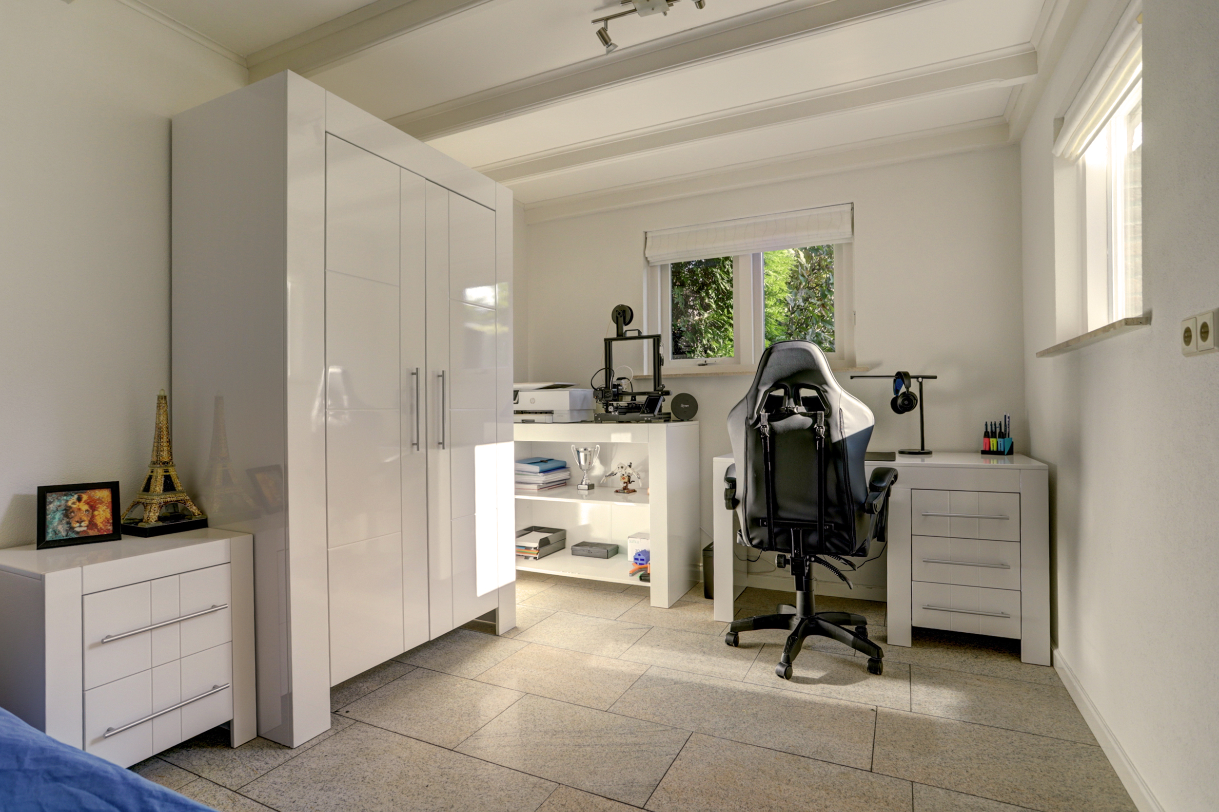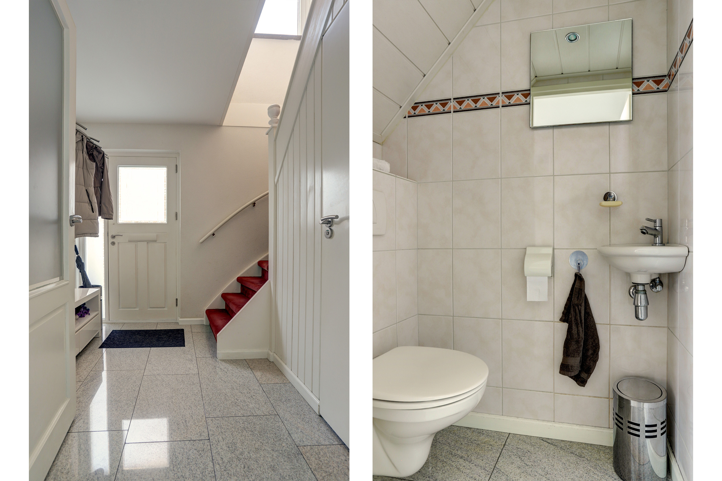 Naast de woning bevindt zich een ruime, praktische garage die op meerdere manieren te gebruiken is. Hier zijn de aansluitingen voor de wasmachine en droger te vinden, evenals de opstelplaats van de cv-ketel. De ruimte is groot genoeg om meerdere fietsen, (kleine) voertuigen of binnenspullen op te bergen. Dankzij de aanwezigheid van zowel elektra als water is het zelfs mogelijk om hier een extra douche/badkamer te realiseren, wat de garage nog functioneler maakt. Via de handige loopdeur is er directe toegang tot de oprit, waar u de mogelijkheid heeft om een voertuig op eigen terrein te parkeren.