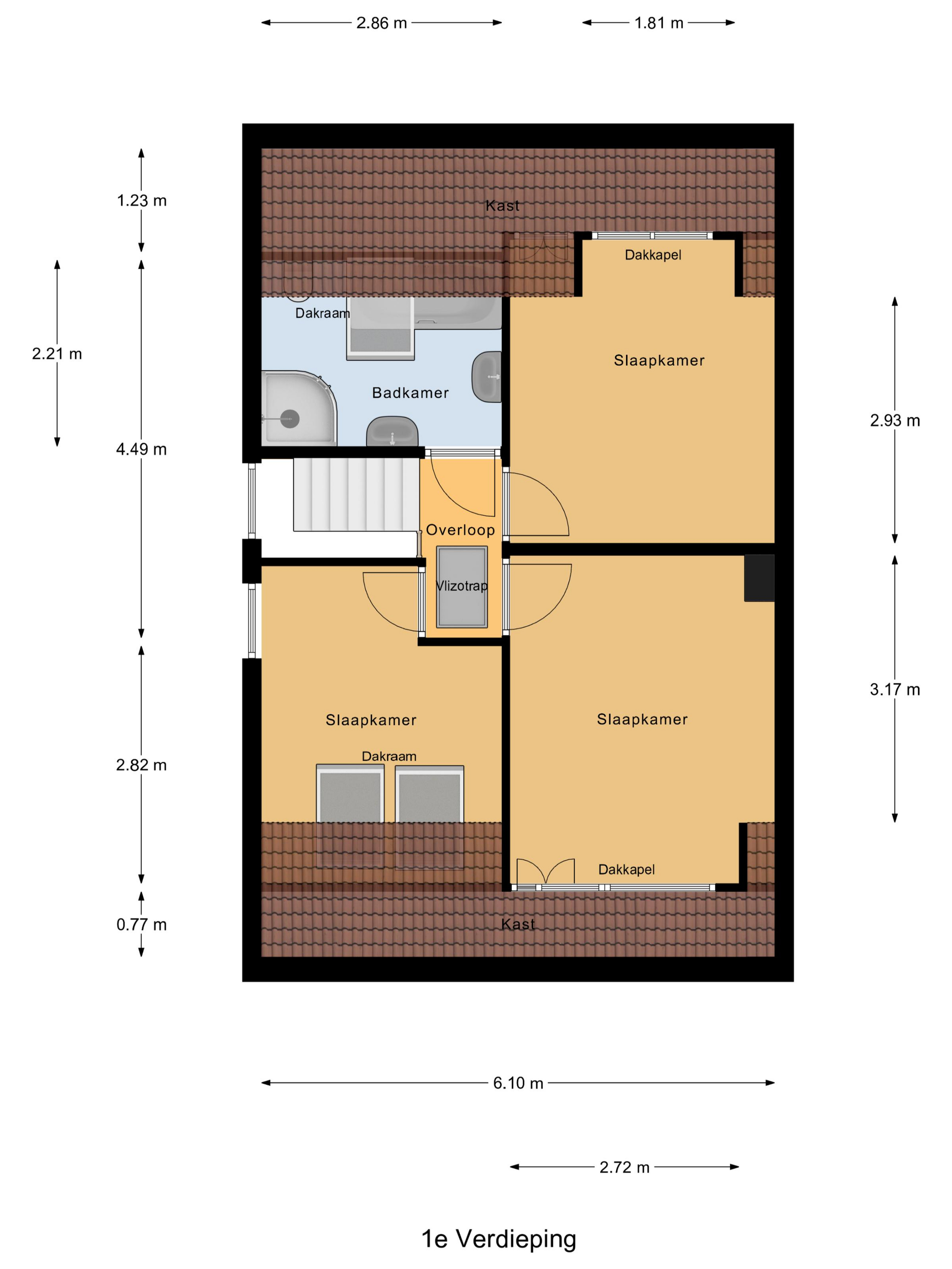 - Extra grote slaapkamers op de eerste verdieping d.m.v. twee dakkapellen;