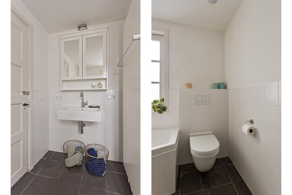 - Ligbad, toilet, wastafel en inloopdouche