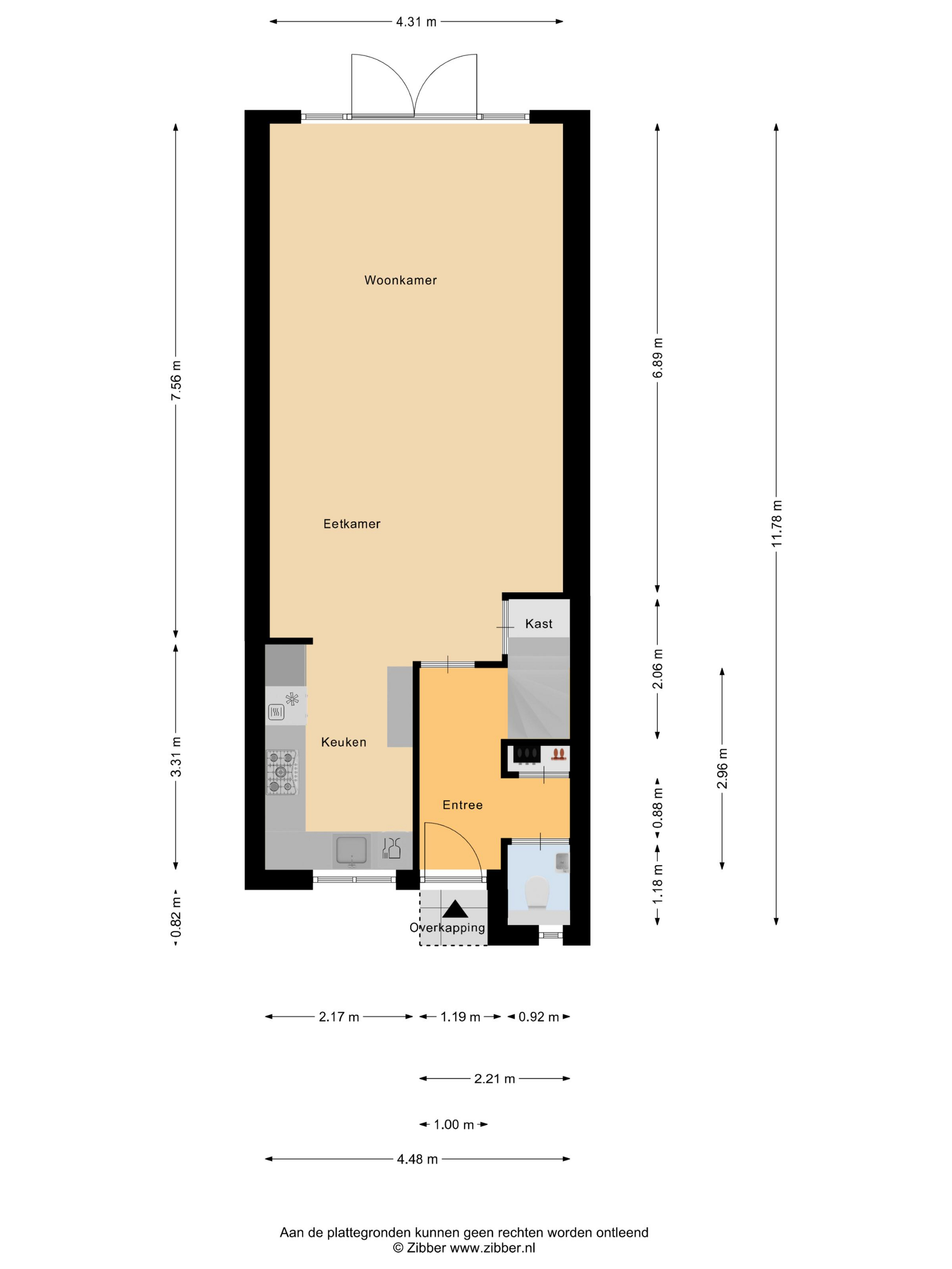 - 35 m² gelegen op het zuidoosten met achterom