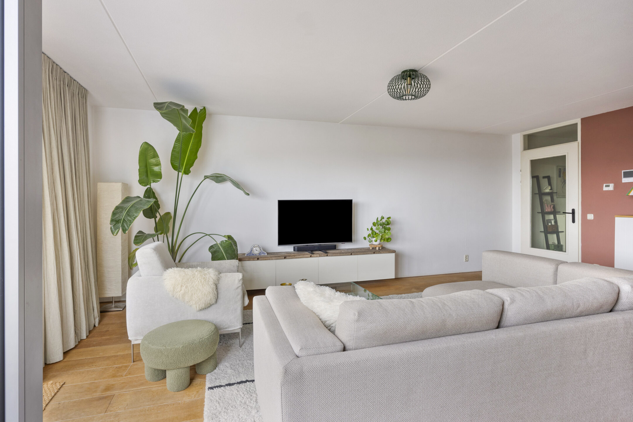 - De gehele living is voorzien van een sfeervolle houten vloer.