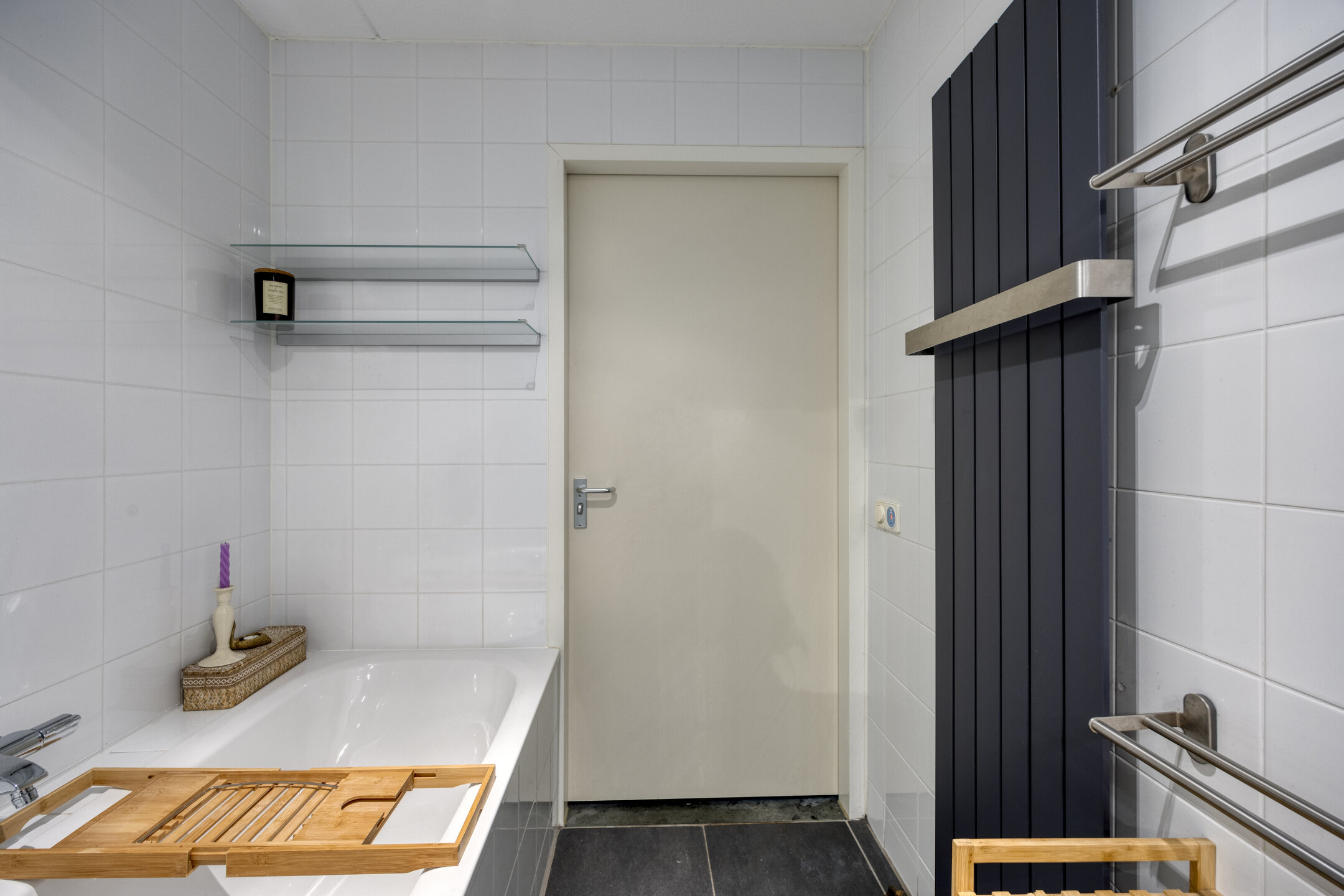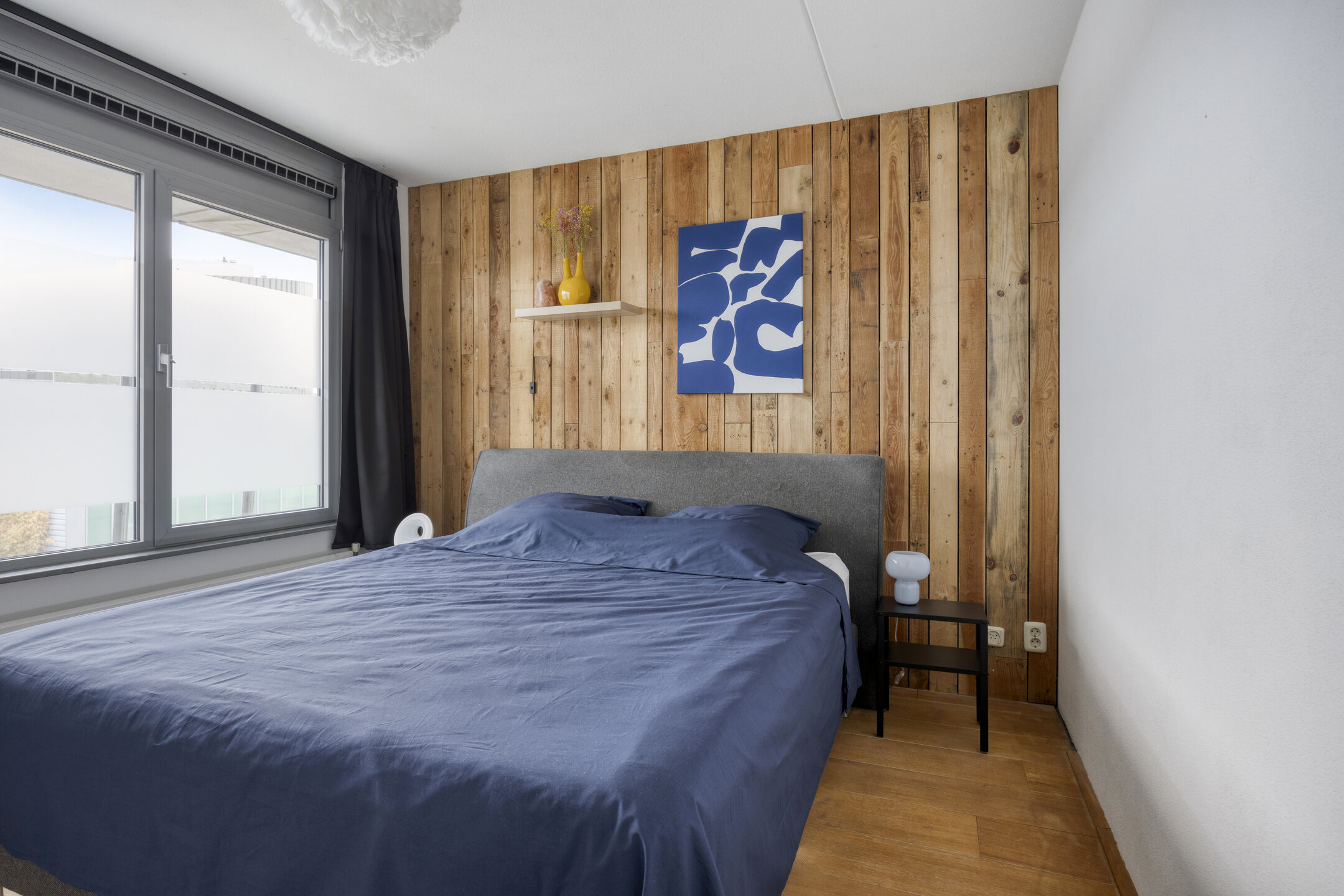 De ruime slaapkamer biedt voldoende ruimte en is gesitueerd aan de kant van binnentuin. De tweede slaapkamer wordt momenteel gebruikt als werk- en kastkamer, maar is gemakkelijk in te zetten als extra slaapkamer. De geheel betegelde badkamer is voorzien van een ligbad, separate douchecabine, wastafel en een radiator. Via de hal is de tweede berging met aansluitingen voor de cv-ketel, aansluitingen voor de wasapparatuur en de ventilatiesystemen bereikbaar.
