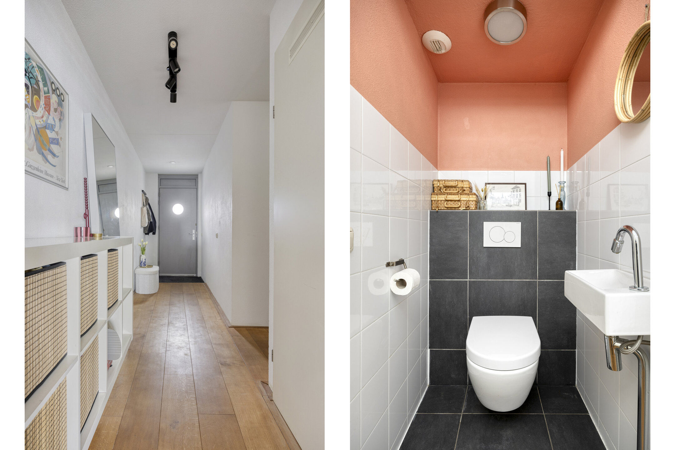 Gezamenlijke entree is voorzien van postbussen, bellentableau en een videofooninstallatie. De centrale hal/entree biedt toegang tot het trappenhuis, de liften, de parkeergarage en de inpandige bergingen. De verzorgde gemeenschappelijke entree biedt u toegang tot het trappenhuis en de lift. De entree van het appartement is gelegen op de 6e verdieping.