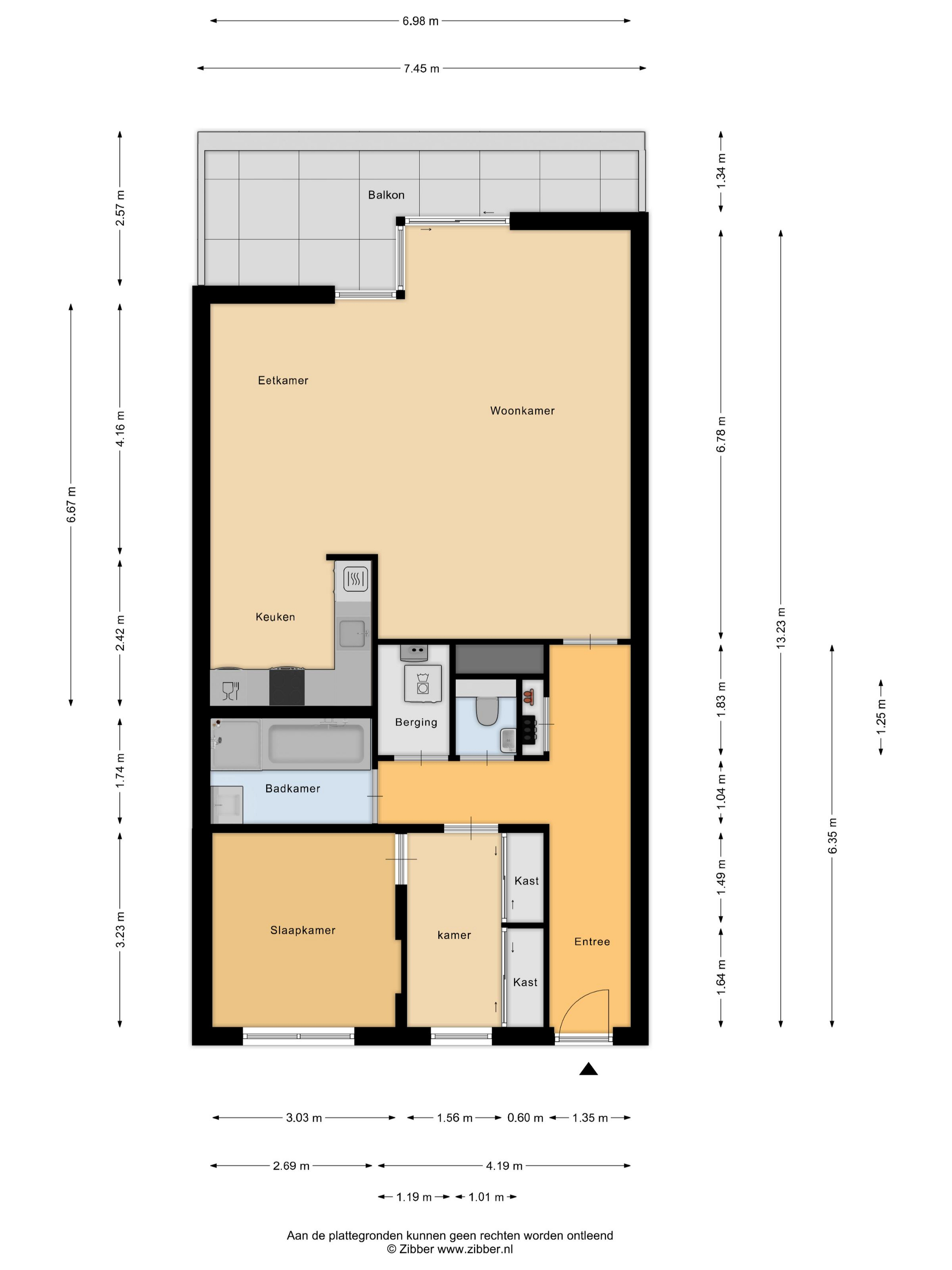 Hal/entree met toegang tot de slaapkamer, de woonkamer, badkamer, toiletruimte en technische ruimte. Vanuit de ruime en lichte woonkamer is middels een schuifpui het zonnige balkon te bereiken. Het balkon biedt, mede vanwege de ligging op de zesde verdieping, een fantastisch uitzicht en een ideale plek om lekker tot rust te komen en te genieten van de zon.