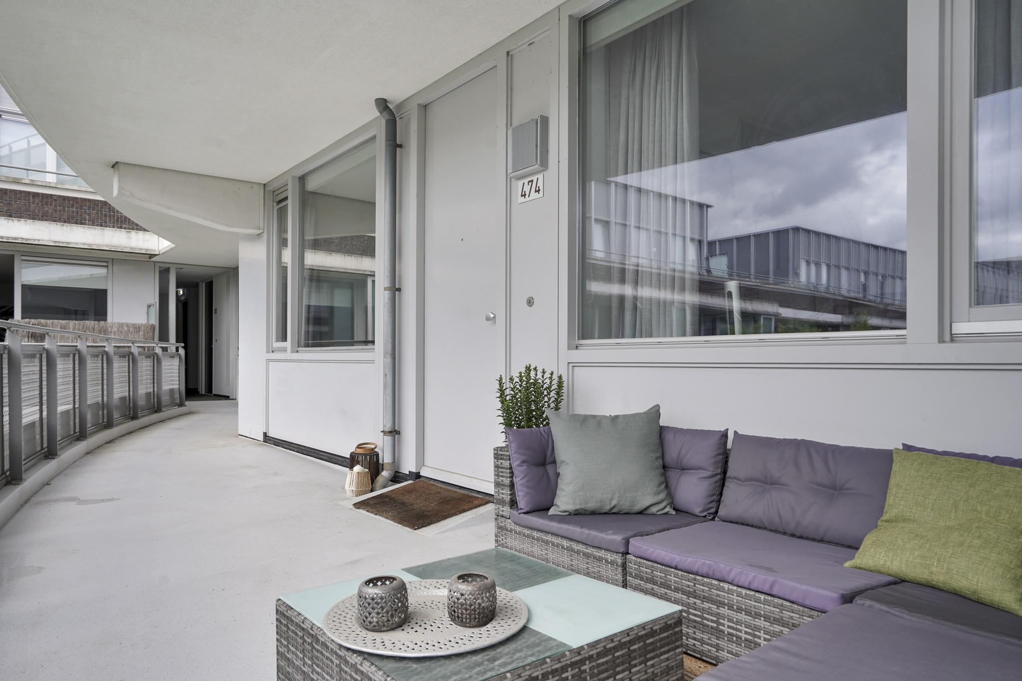 Het appartement aan de Onderwijsboulevard 474 kent een moderne uitstraling en is met recht instapklaar te noemen. U heeft de beschikking over twee buitenruimten: de galerij aan de gemeenschappelijke binnentuin van 13 m². Deze biedt een heerlijke plaats in de ochtendzon en een privacy biedend balkon van 7 m². Dit balkon ligt aan de voorzijde op het westen, waardoor u tot laat in de avond kunt genieten van de zon. Het appartement beschikt over twee ruime slaapkamers, een grote badkamer, half open keuken en een royale woon- en eetkamer, welke voldoende indelingsvrijheid biedt. In het souterrain, vlakbij de toegangsdeur, bevindt zich uw eigen parkeerplaats en de erachter gelegen berging.
