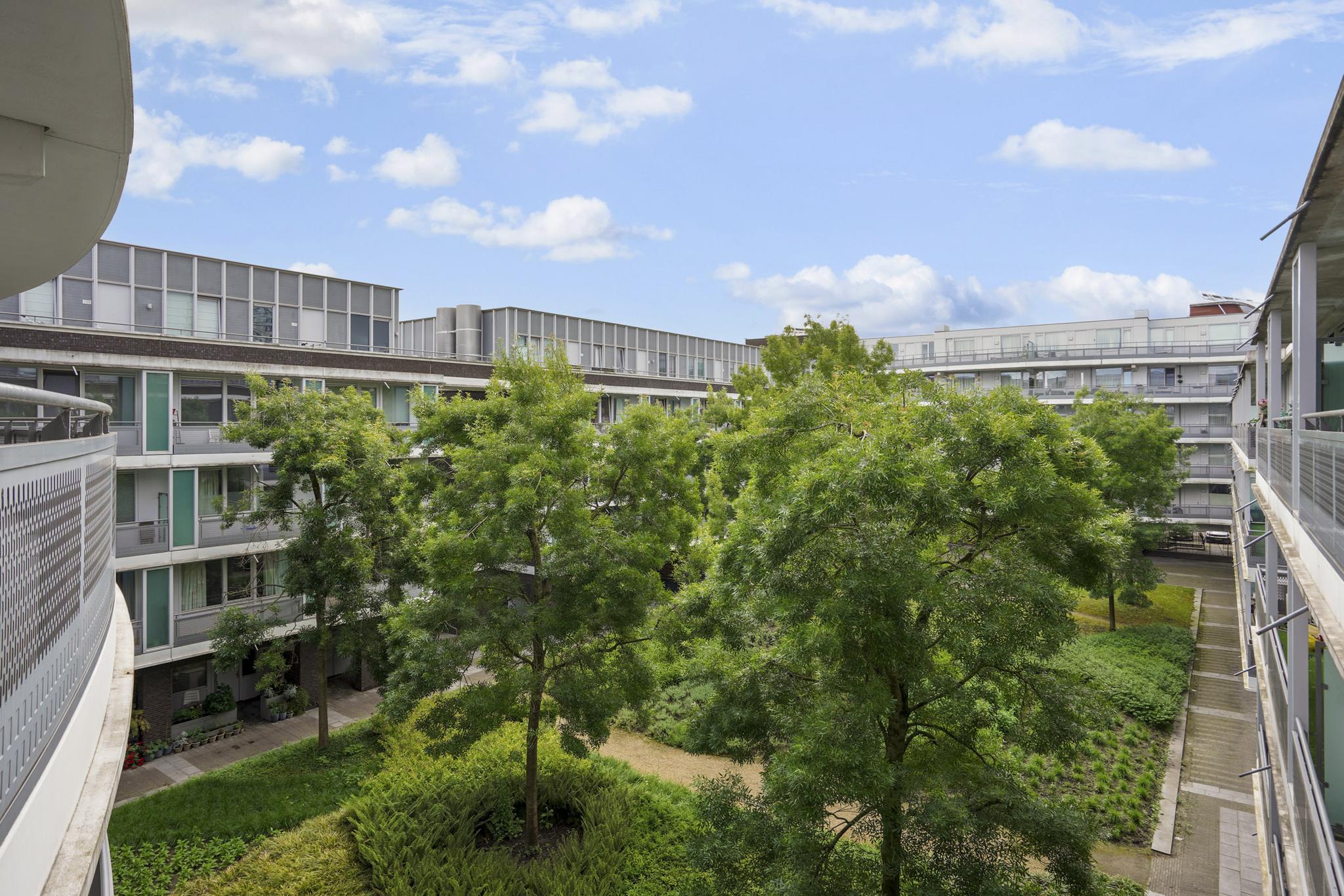 Het appartementencomplex de Markiezenhof beschikt over een fraai aangelegde gemeenschappelijke binnentuin. De eigenaren van Markiezenhof kunnen hier heerlijk vertoeven. Vanaf de galerij geniet u van het uitzicht over de binnentuin.